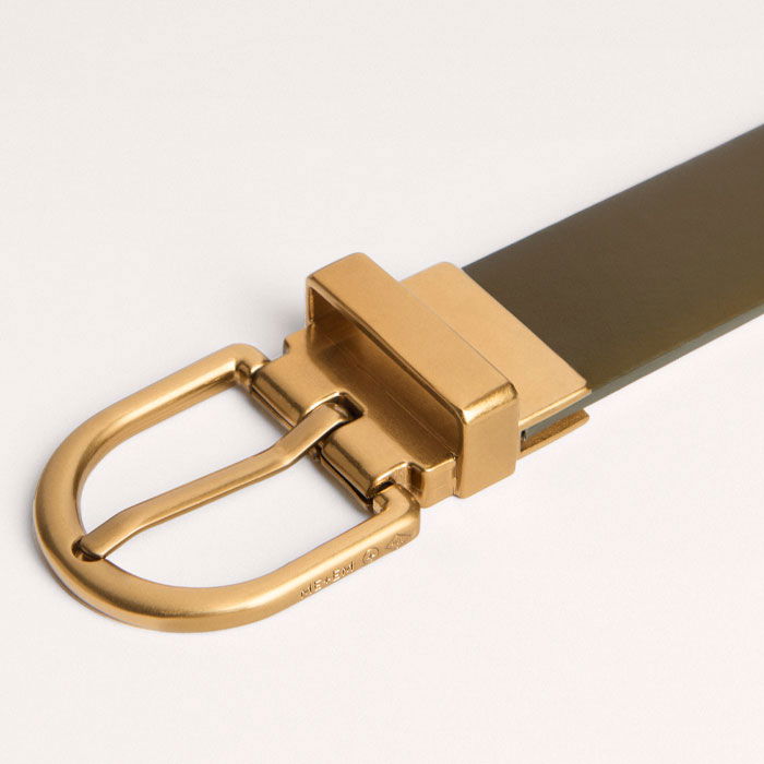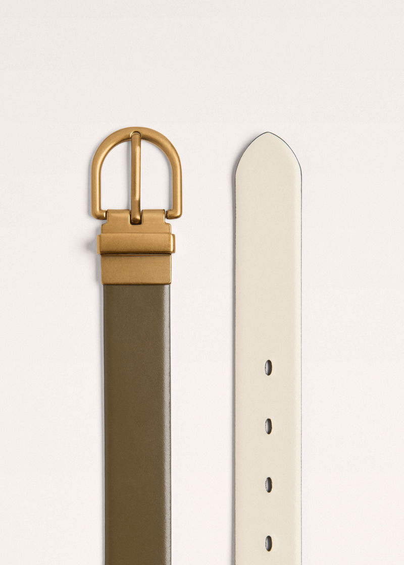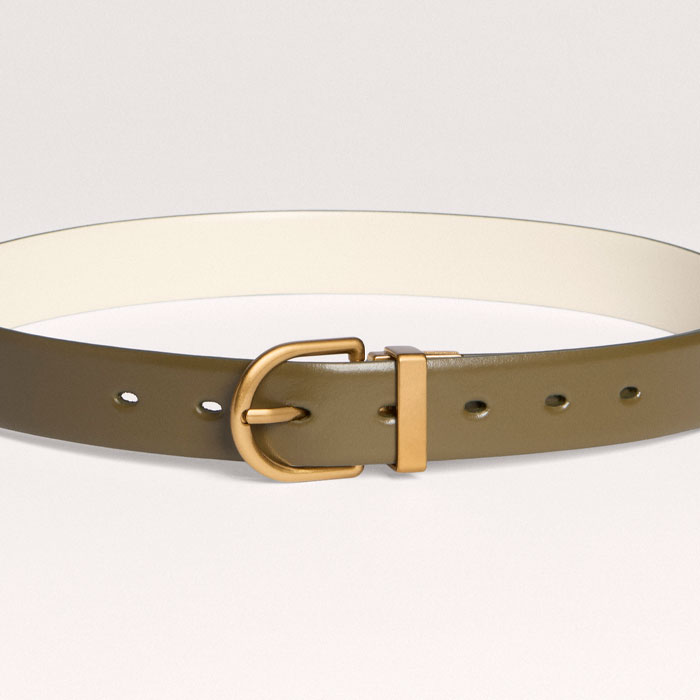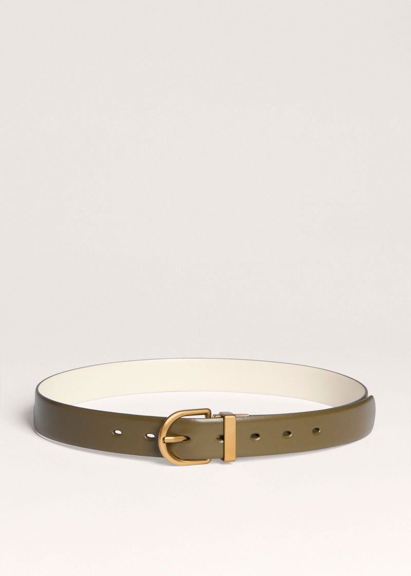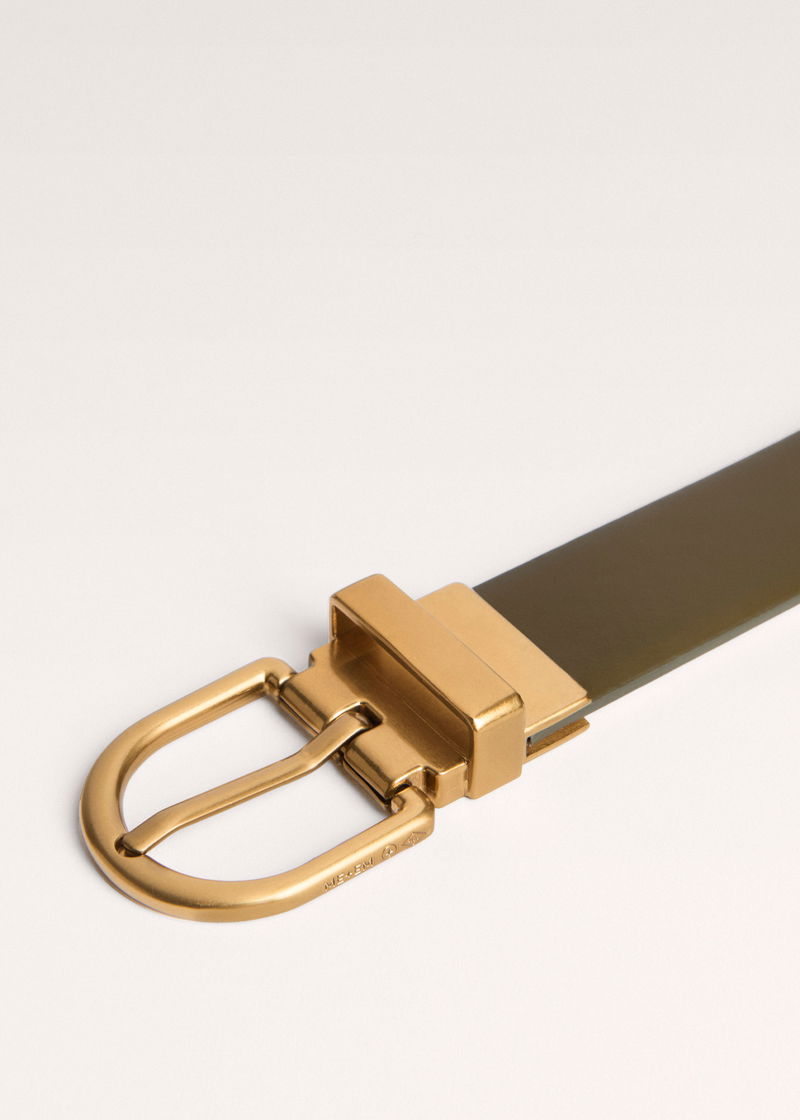 Round Buckle Reversible Belt Olive/Vanila