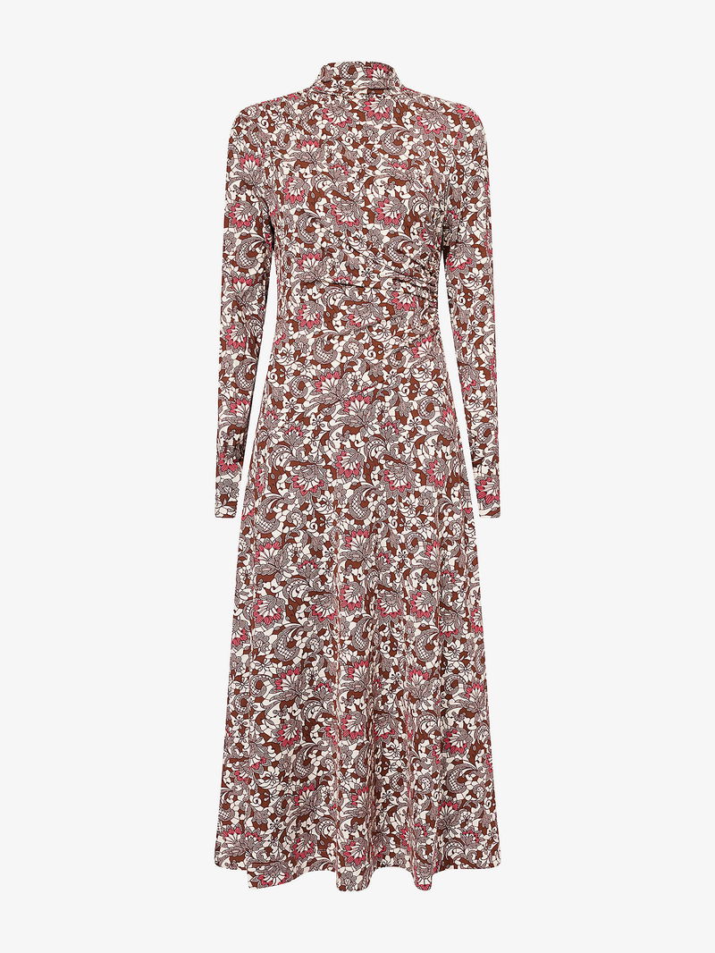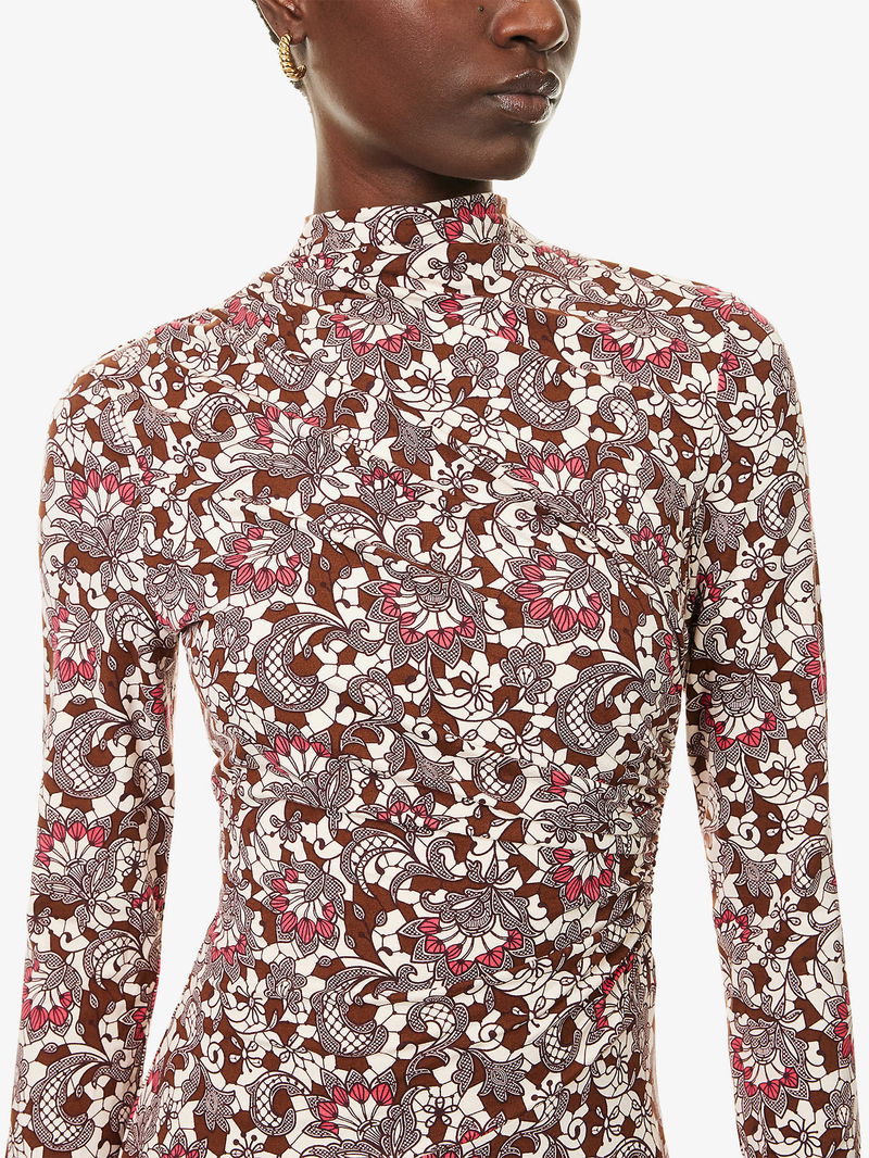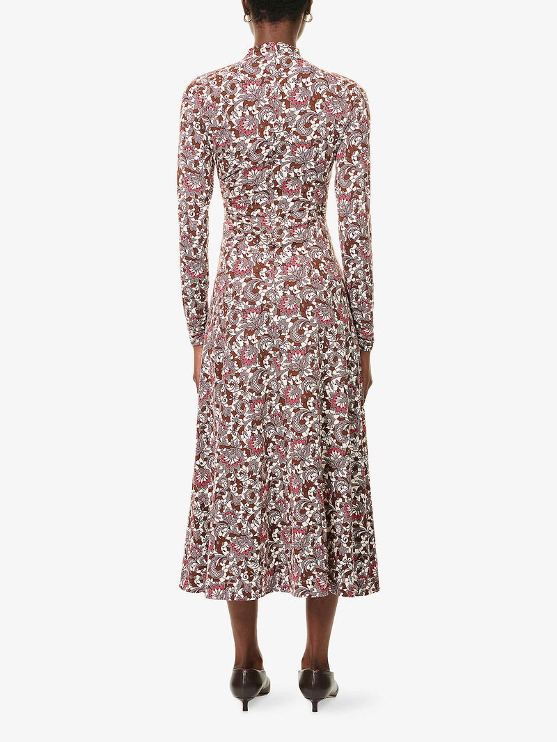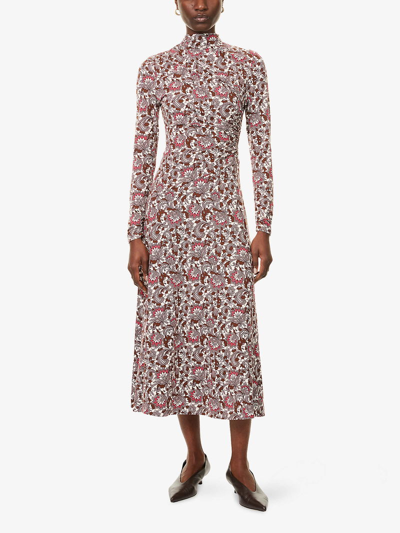 Ruched Graphic-Pattern Stretch-Jersey Midi Dress