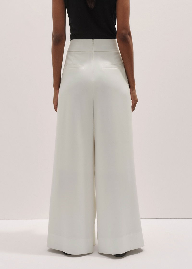 ME+EM's Ivory Satin Back Crepe Wide-Leg Trouser is elevated with expertly placed pleats and a wide-leg silhouette.