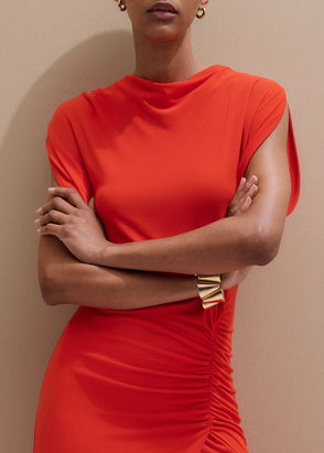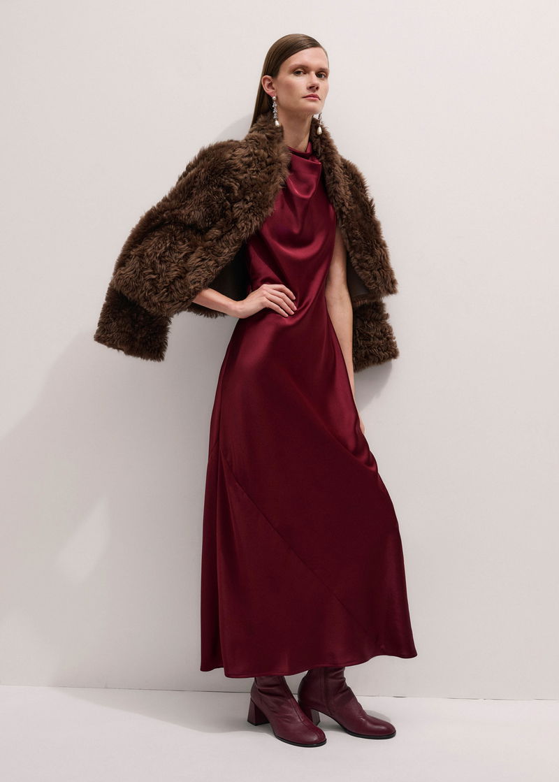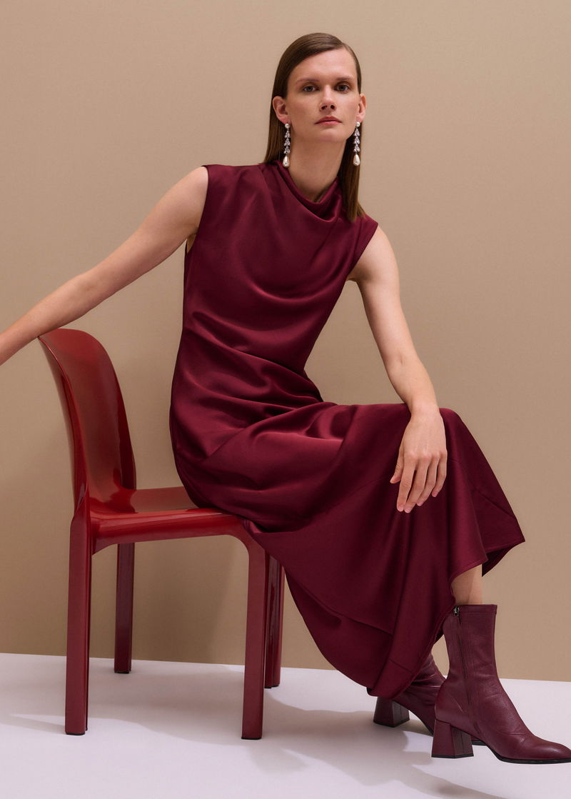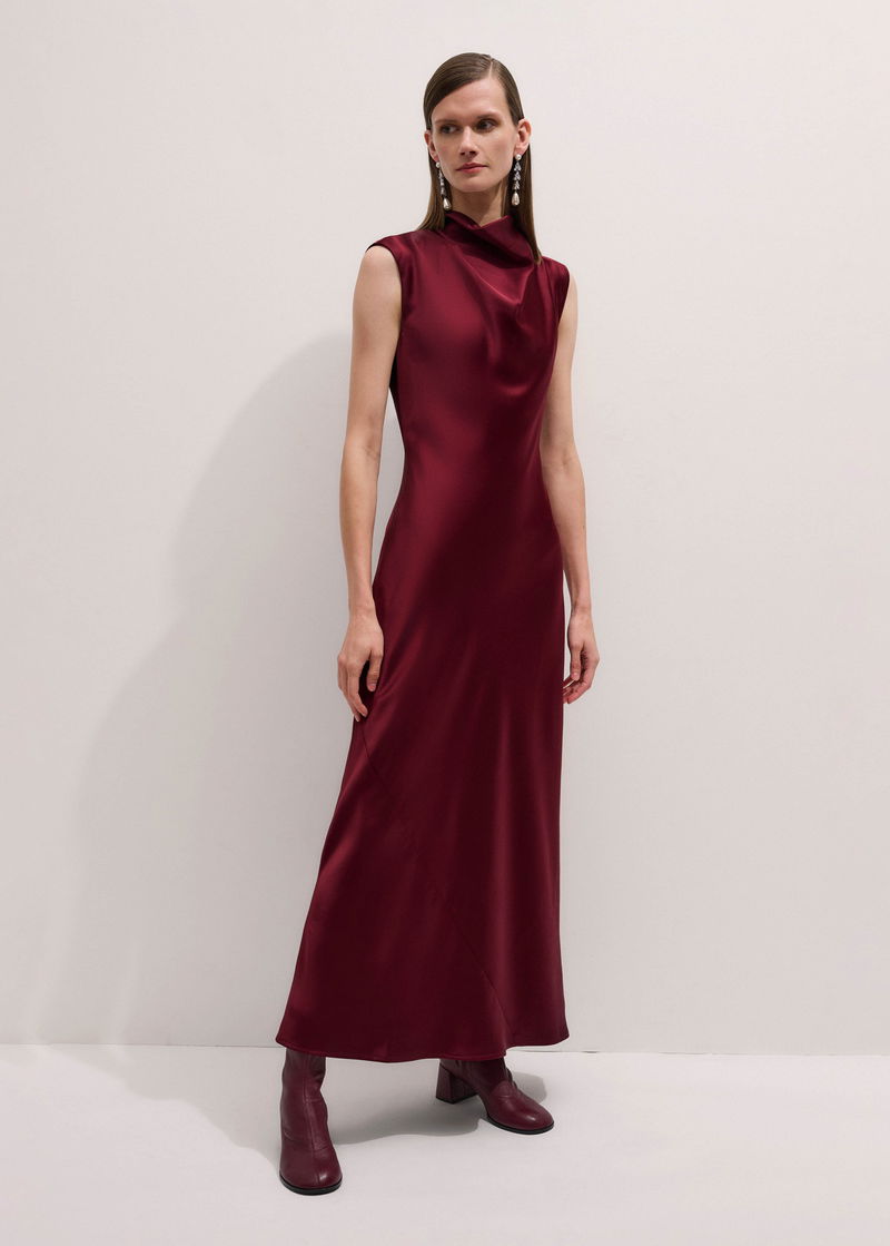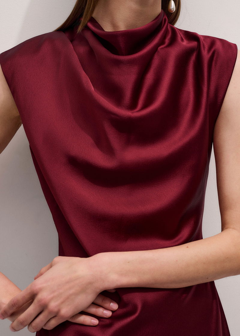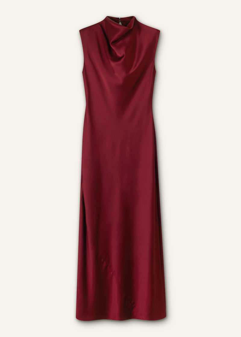 Satin Drape Neckline Maxi Dress Deep Ruby Red