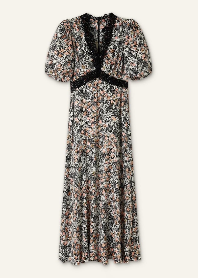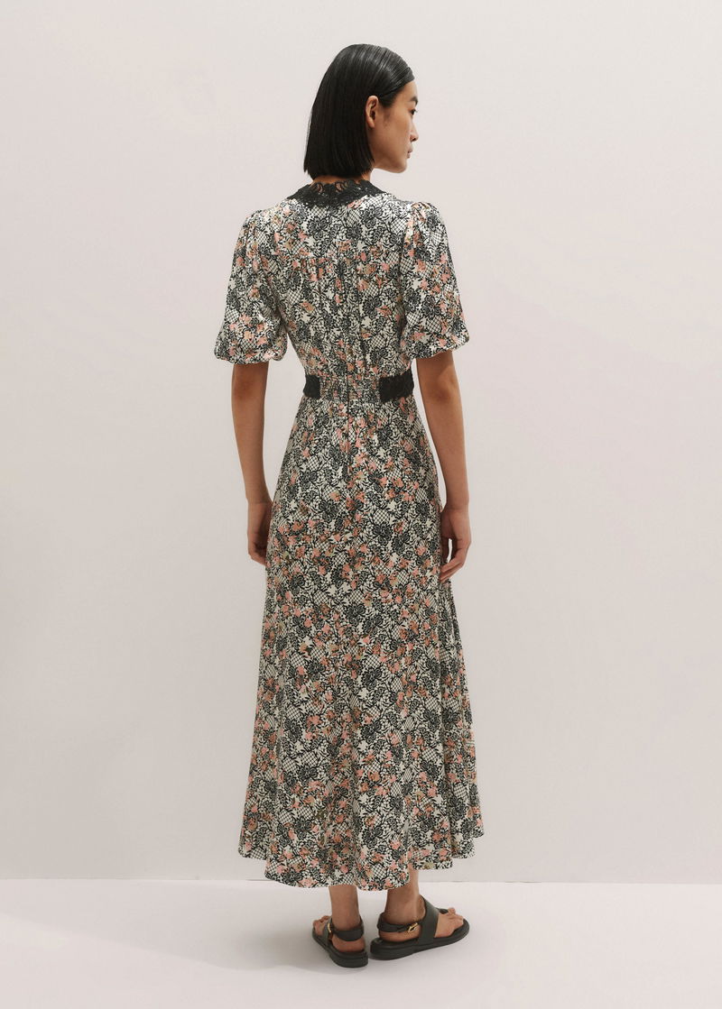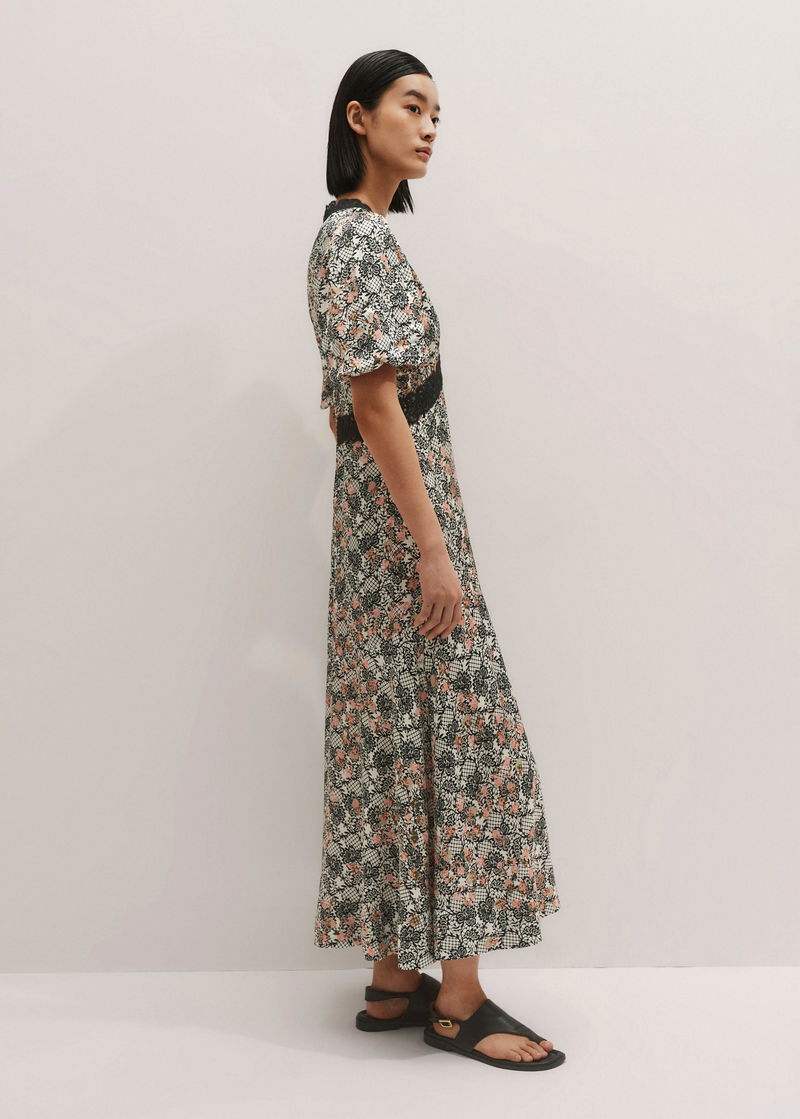 Satin Lace Detail Maxi Dress Light Cream/Multi