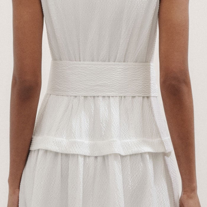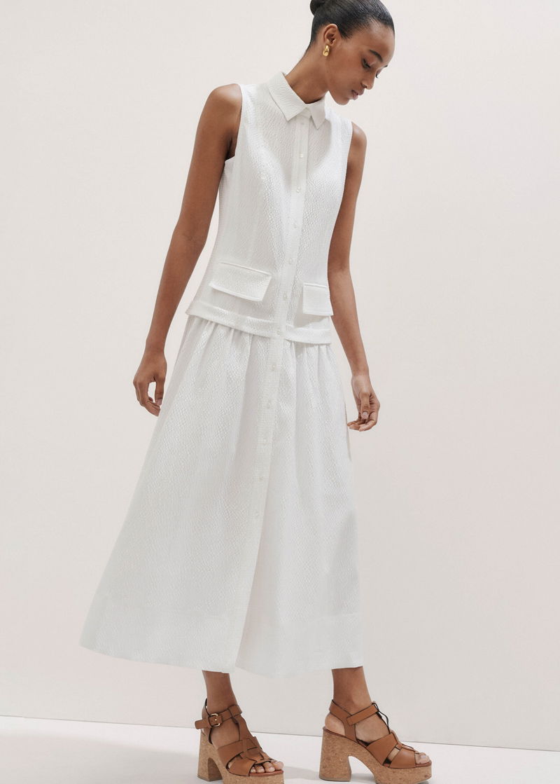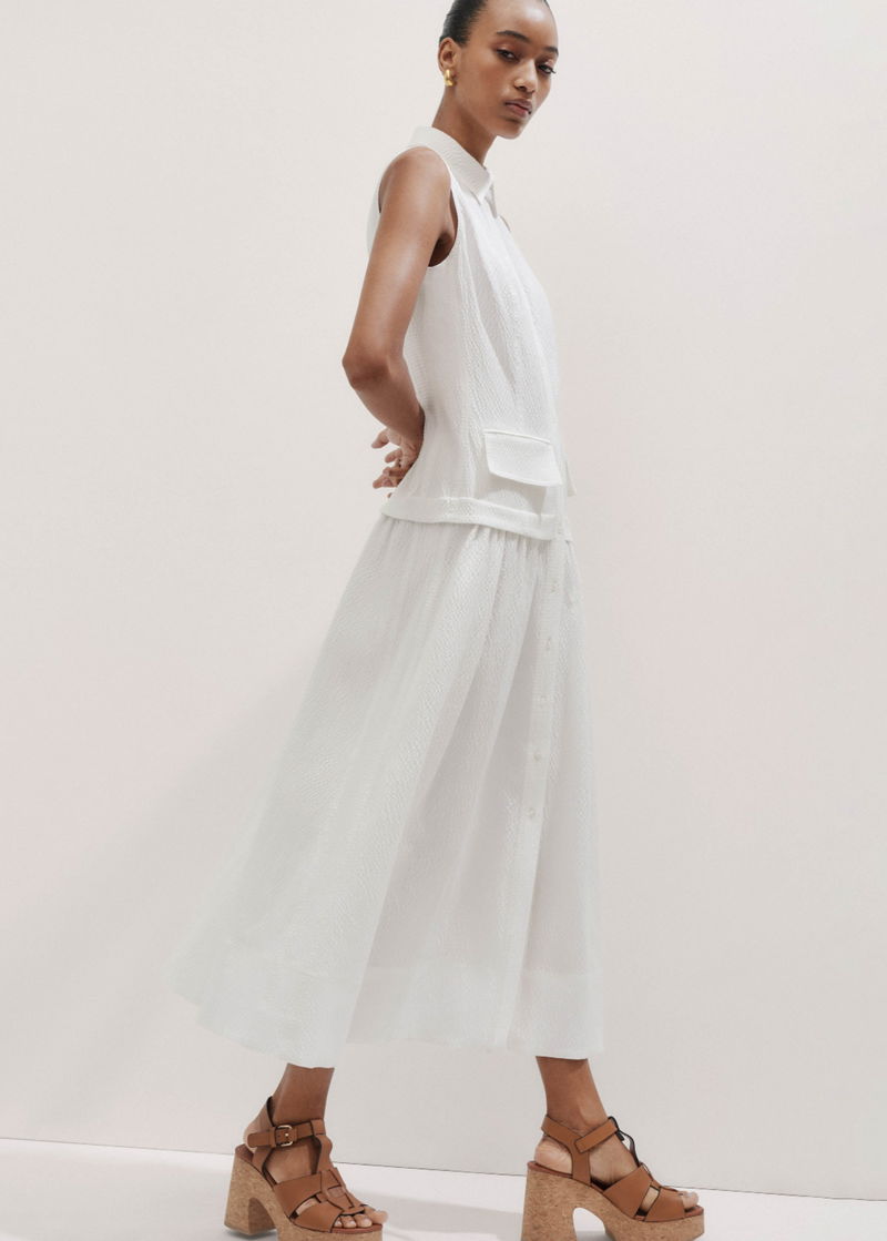 Seersucker Maxi Shirt Dress + Belt White
