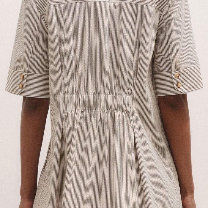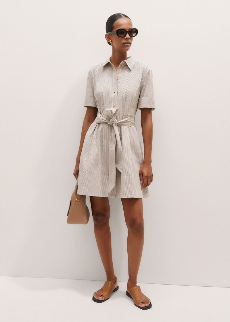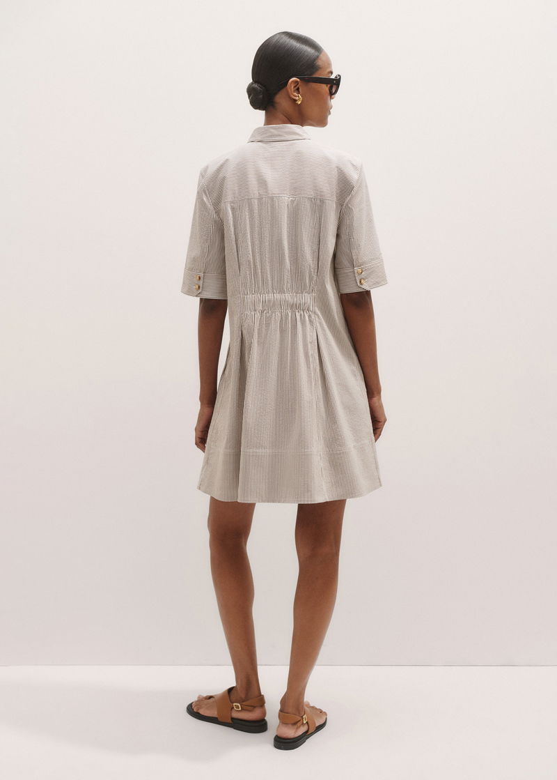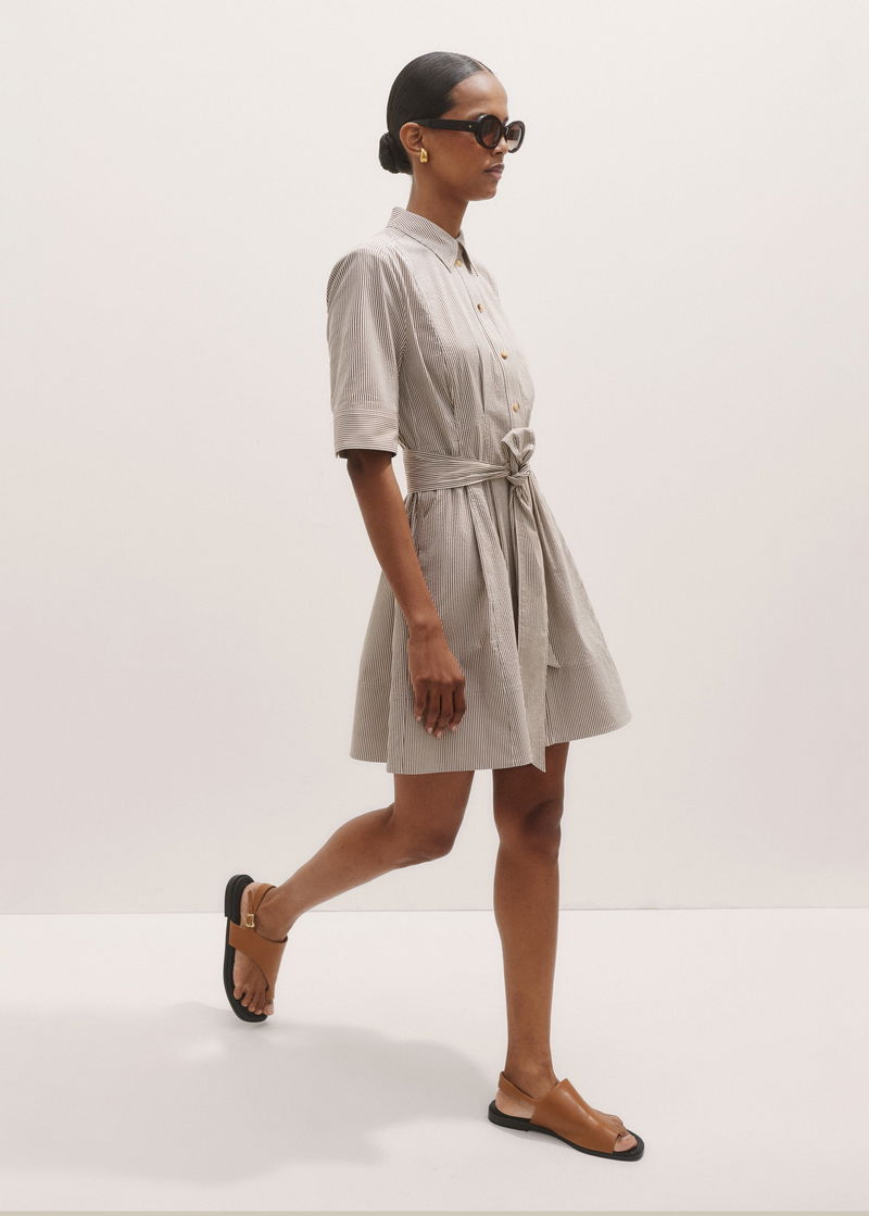 Seersucker Stripe Mini Shirt Dress + Belt Chocolate/White