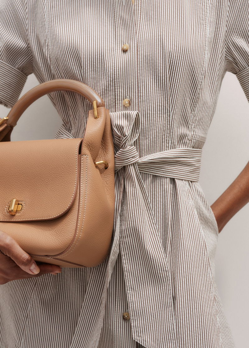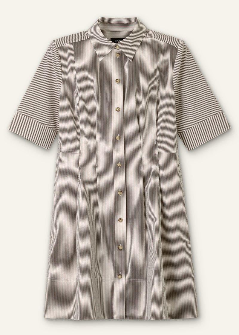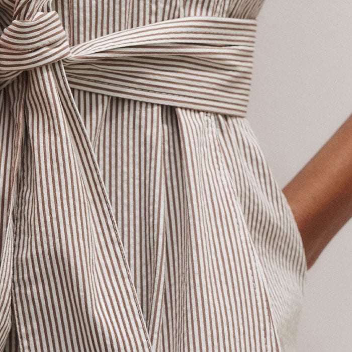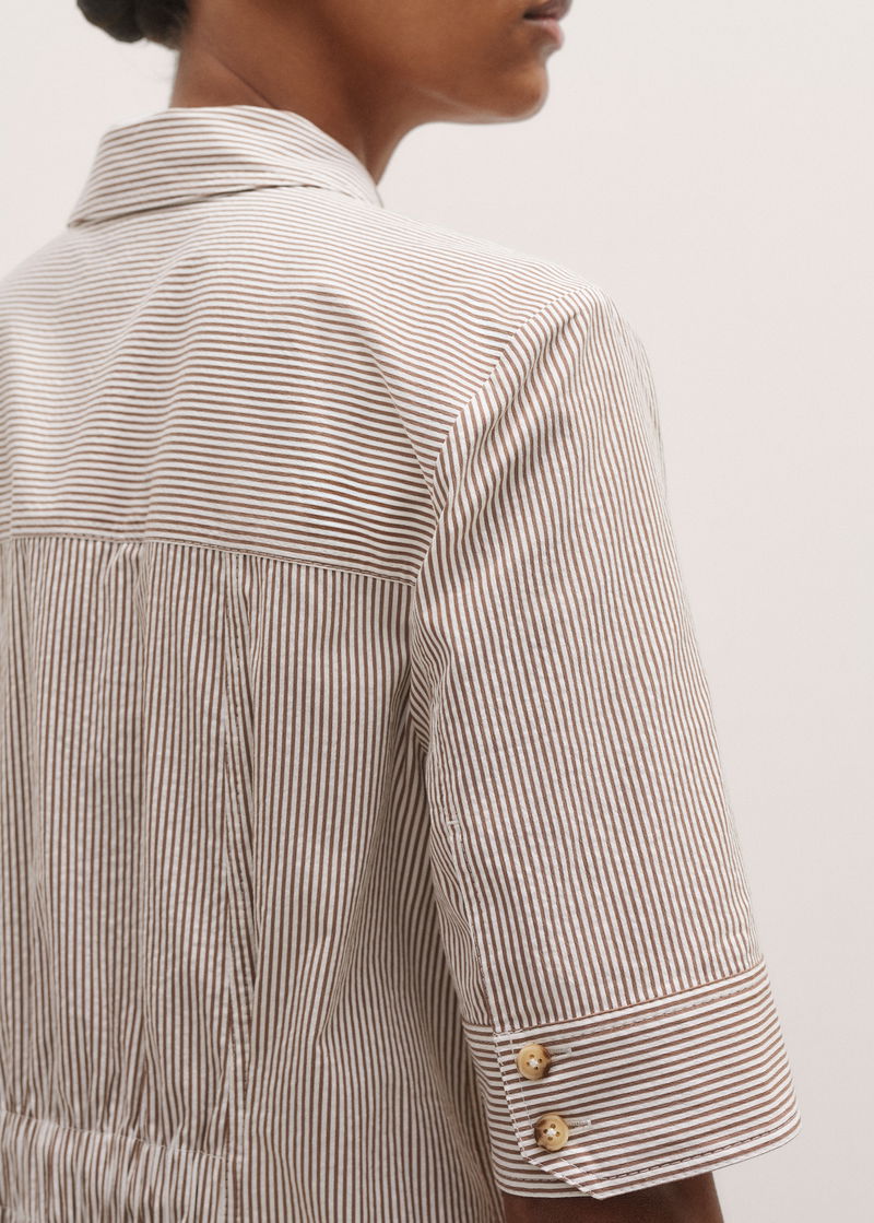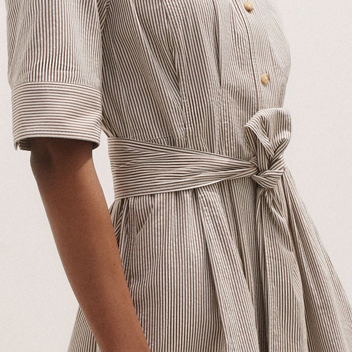 Seersucker Stripe Mini Shirt Dress + Belt Chocolate/White