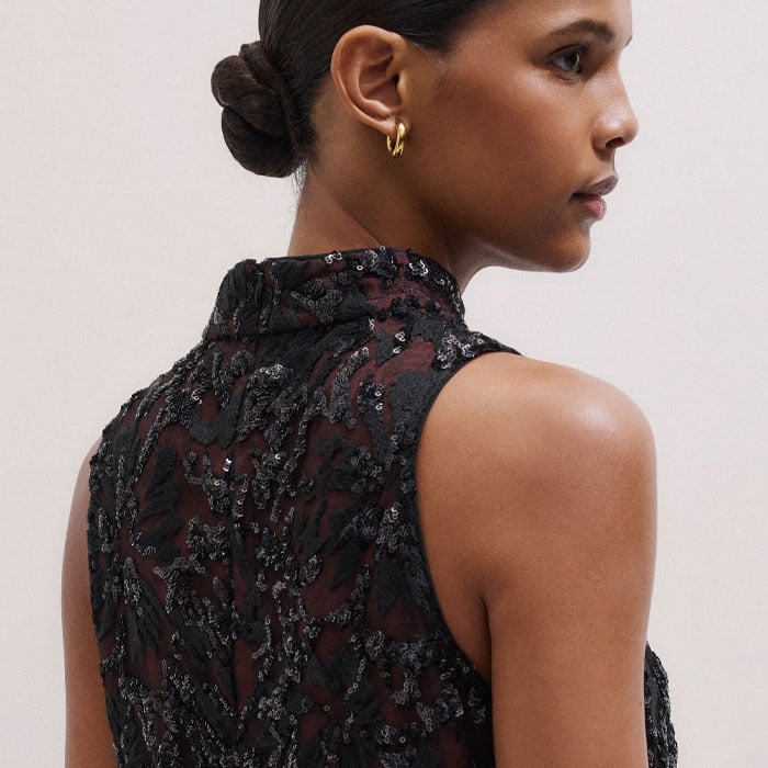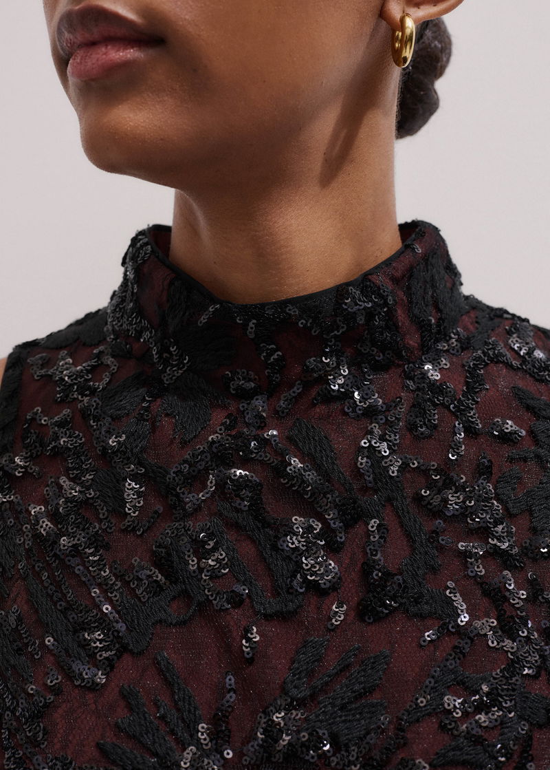 Sequin Embellished Shell Top Black