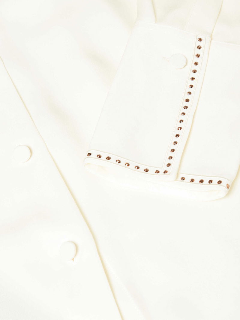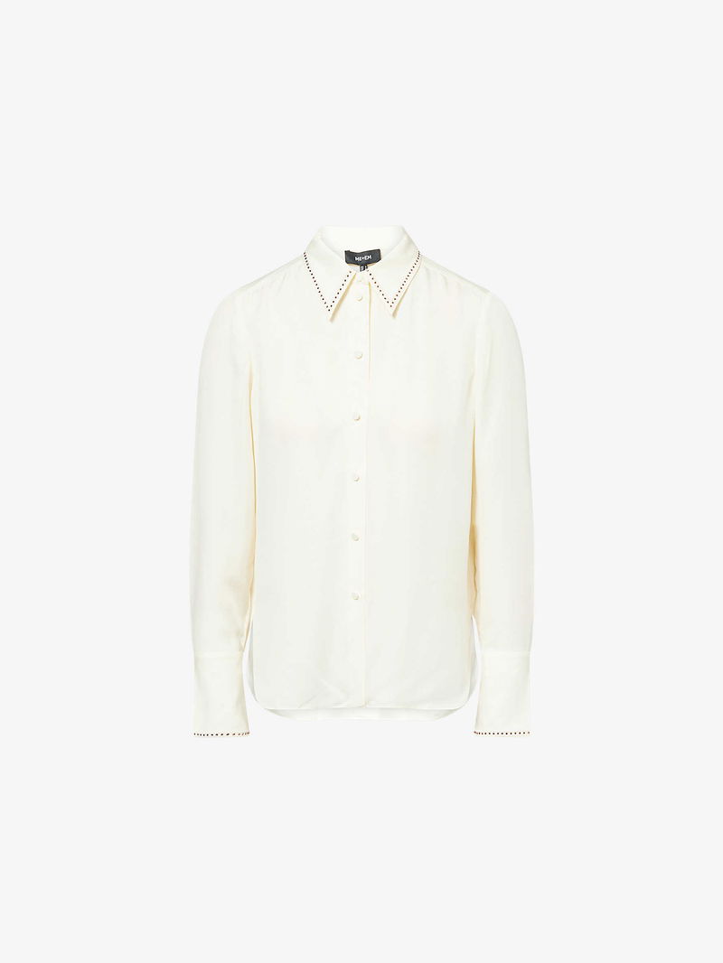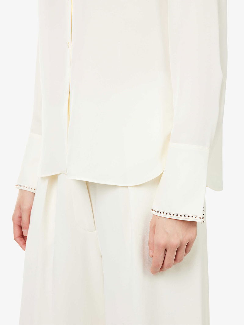 Sequin-Embellished Tuxedo Silk Shirt