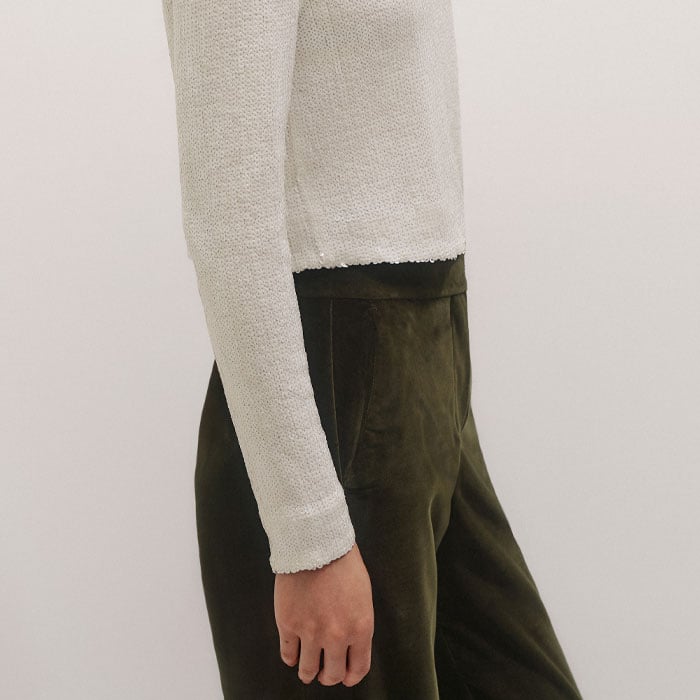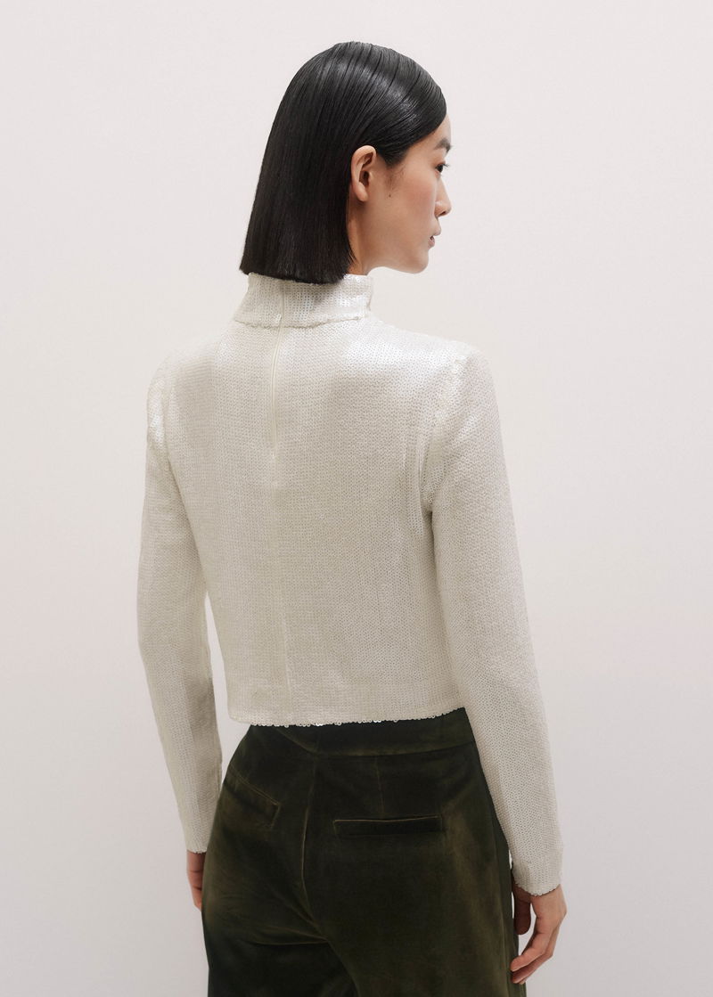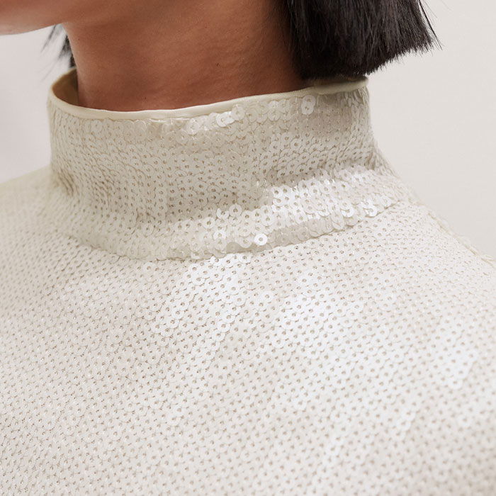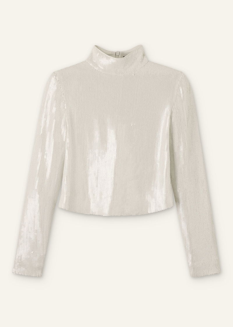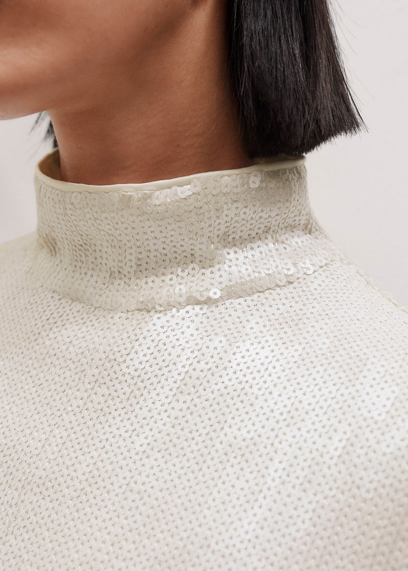 Sequin High Neck Top Cream