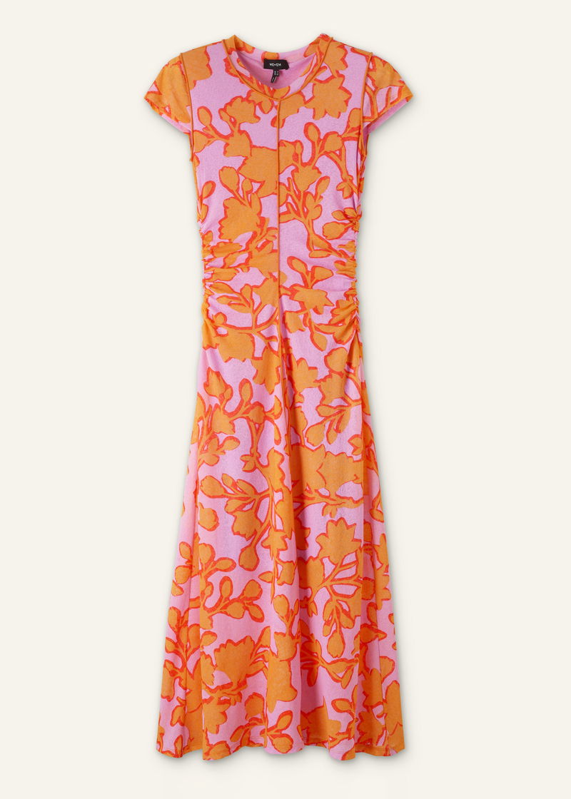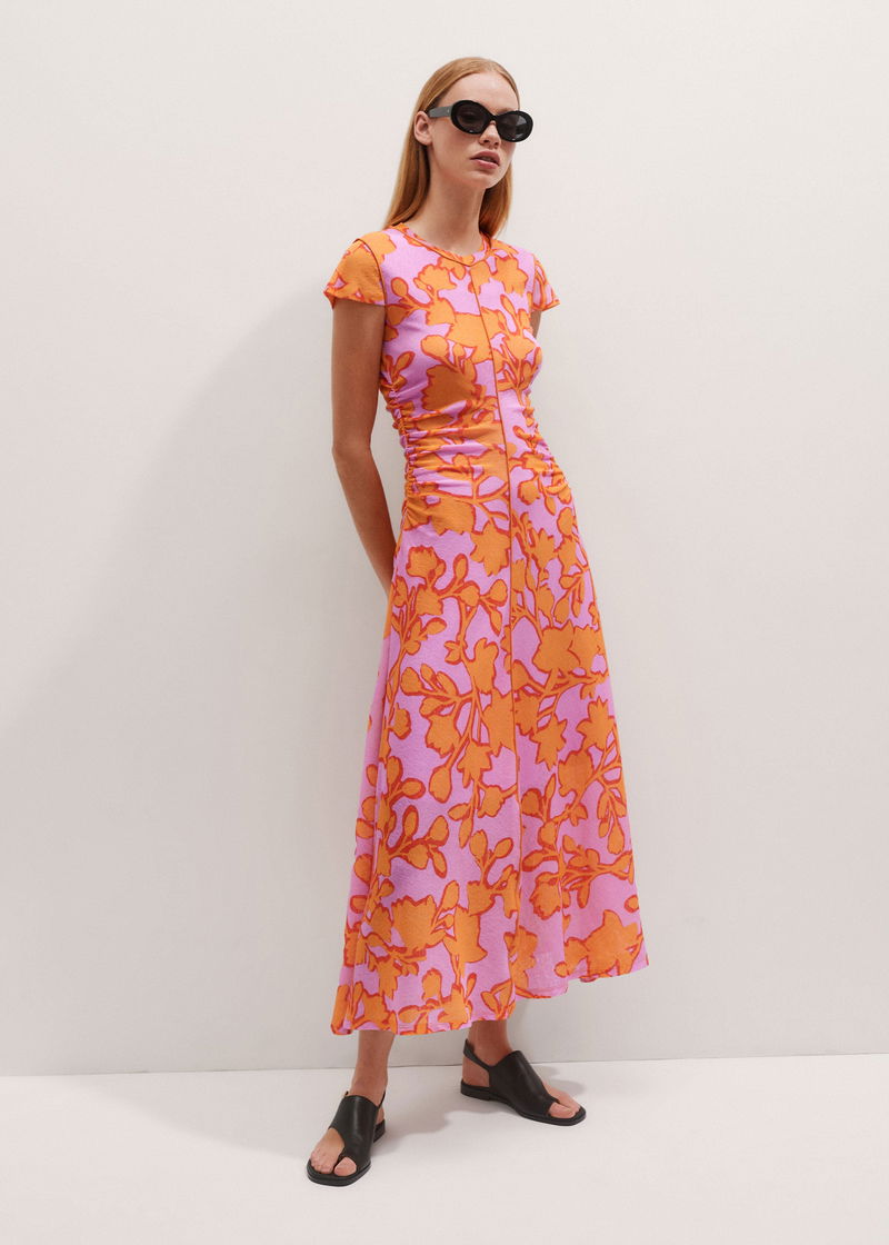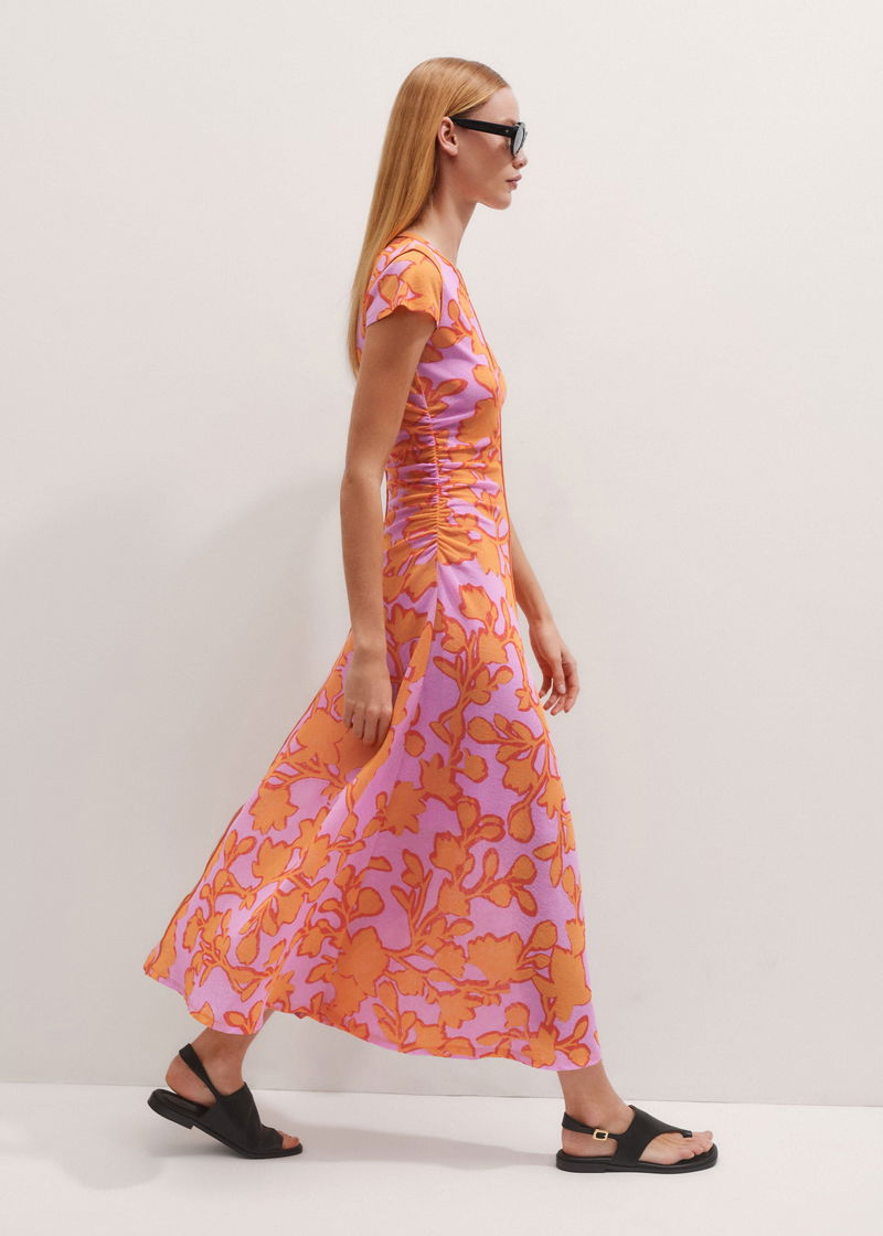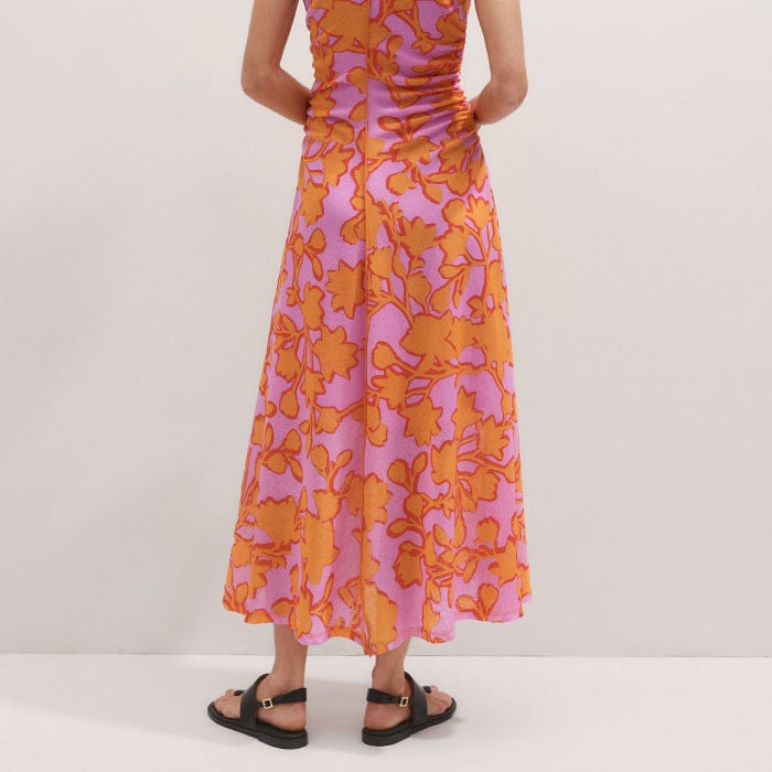 Shadow Paradise Print Ruched Maxi Dress Orange Multi