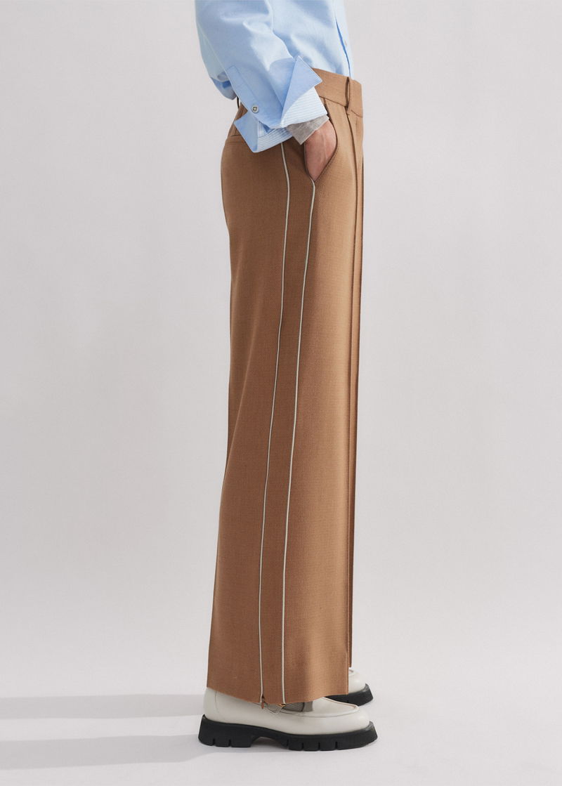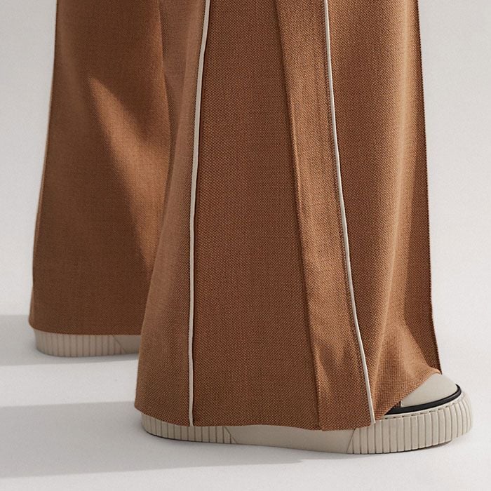 ME+EM's Brown Short-Length Convertible Pant features a zip detail which can be undone to change the shape of the trouser from a straight leg to a wide-leg silhouette.