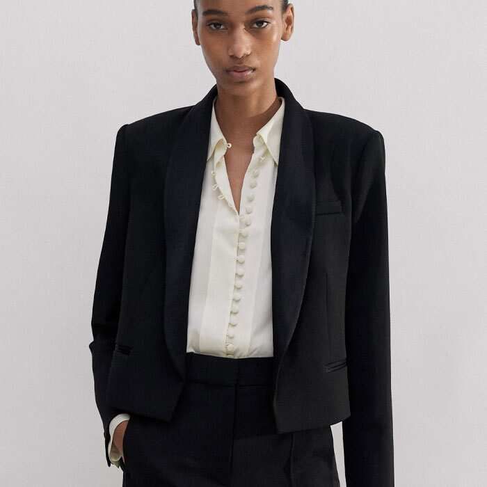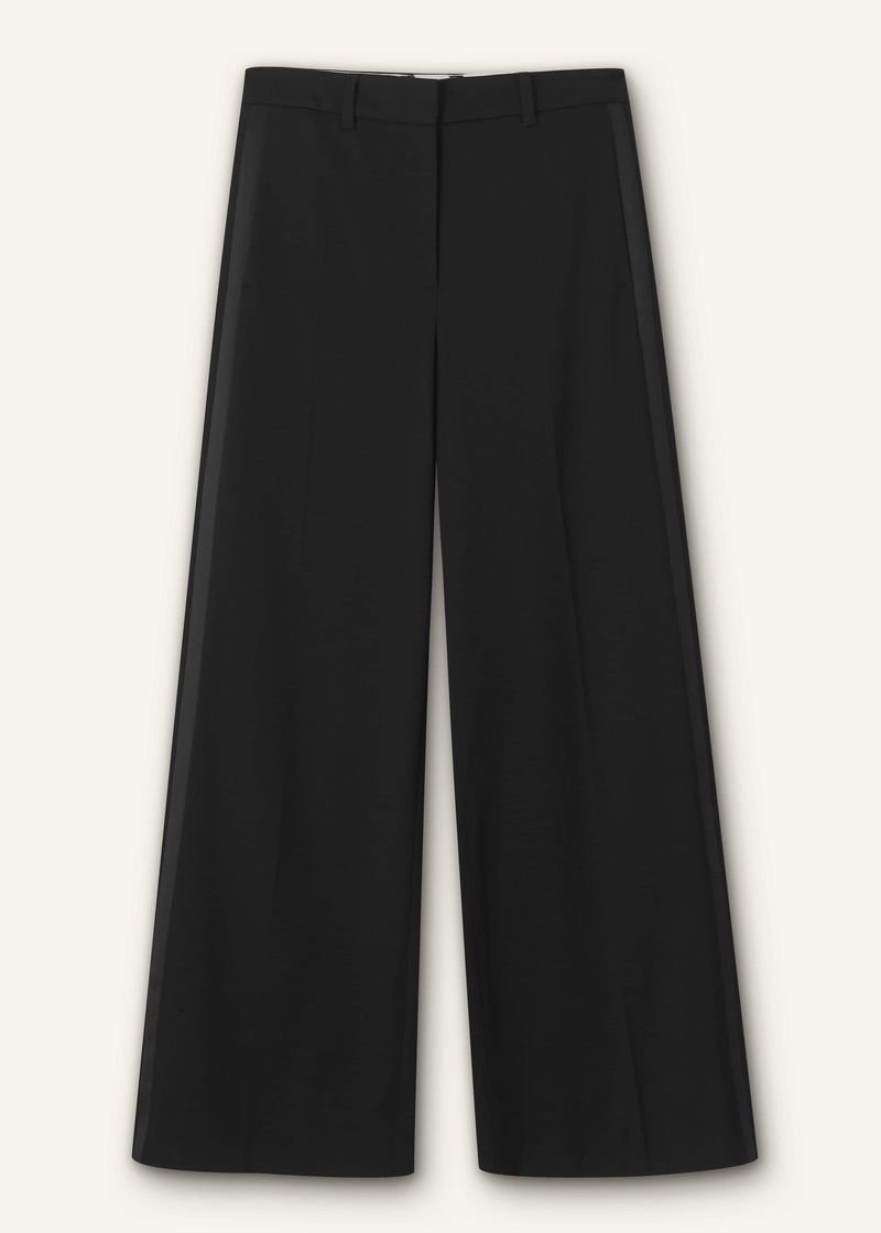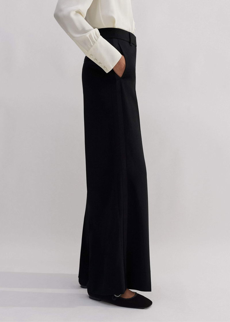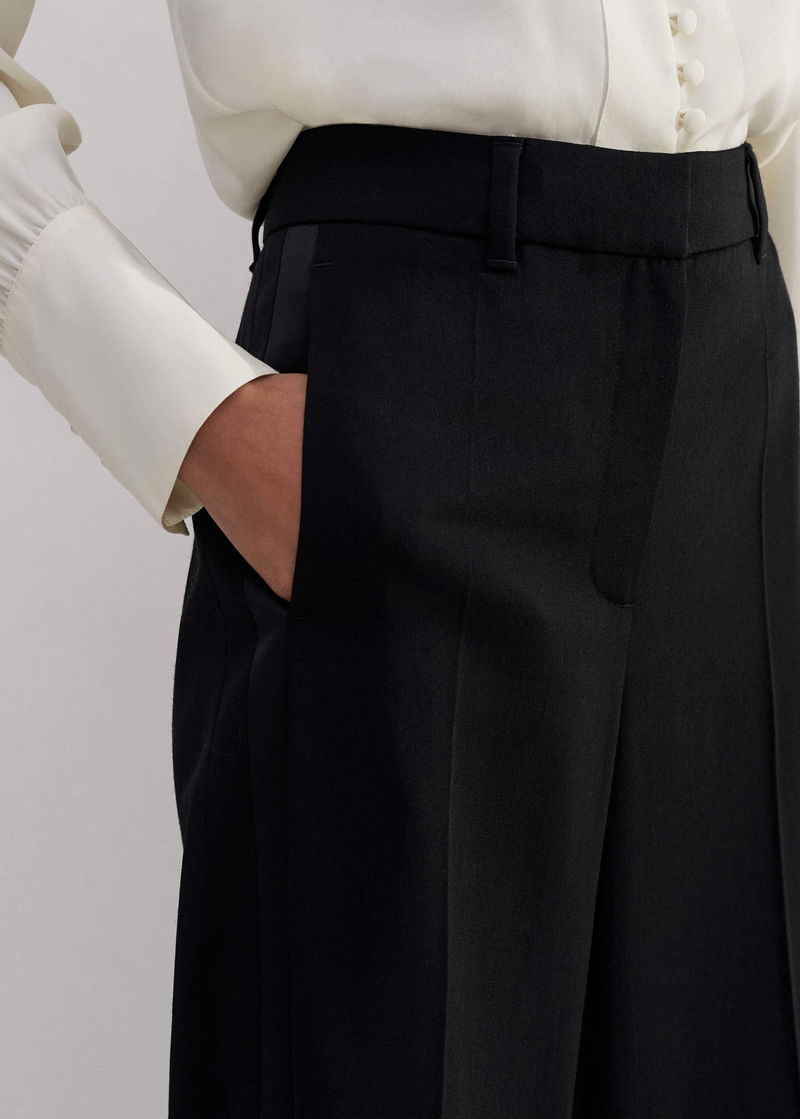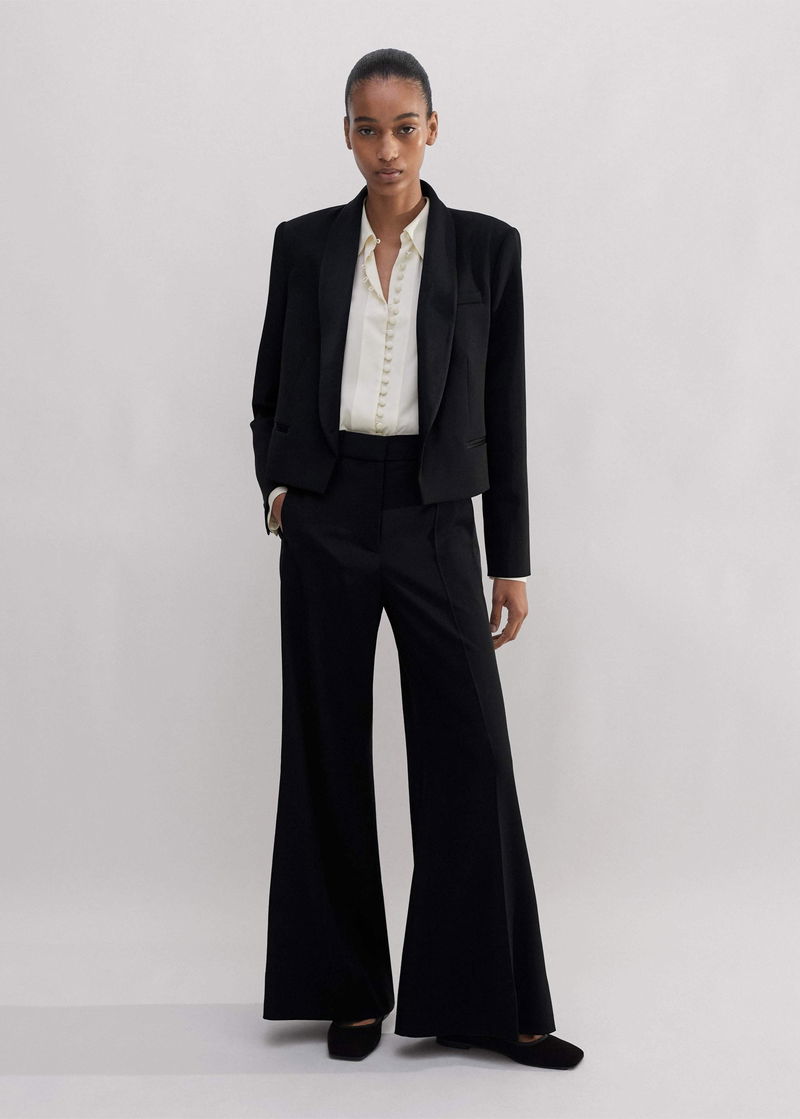Engineered to highlight the narrowest point of your ankle whilst also having the potential to work as a full-length trouser on petite heights, ME+EM's Black Short-Length Ultra-Wide Tux Pant falls to a cropped length.