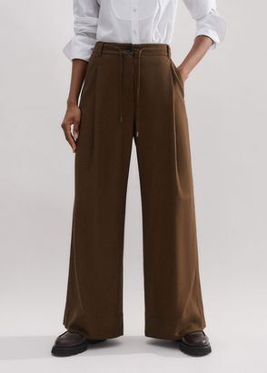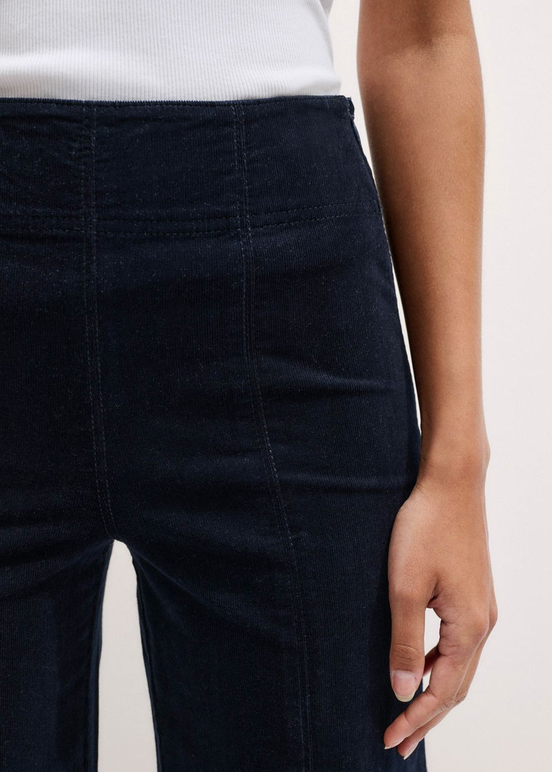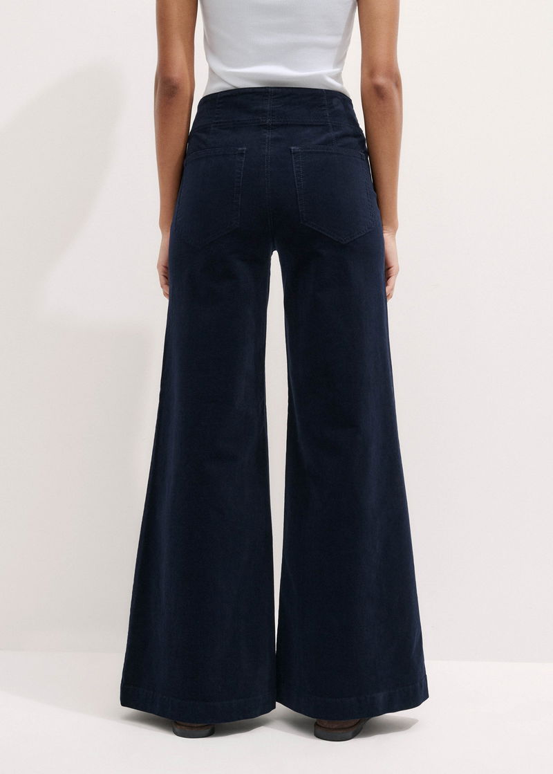 ME+EM's Navy Short-Length Velvet Cord Travel Palazzo Pant is crafted from a tactile Italian cotton cord.