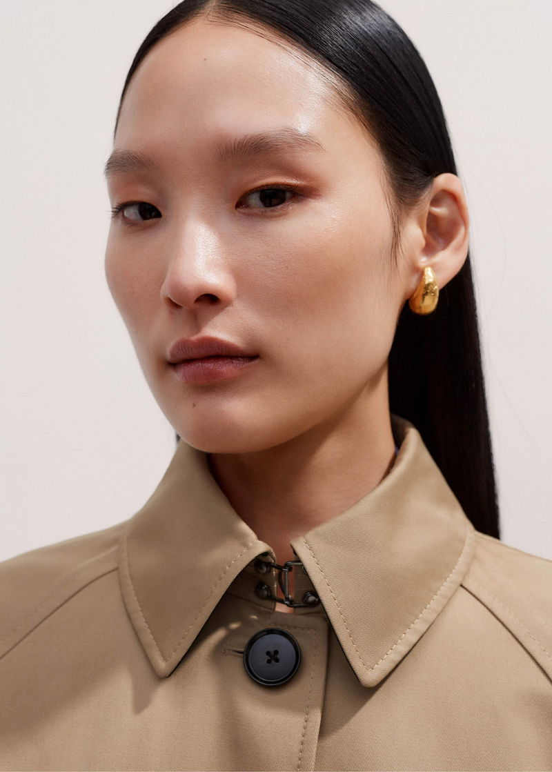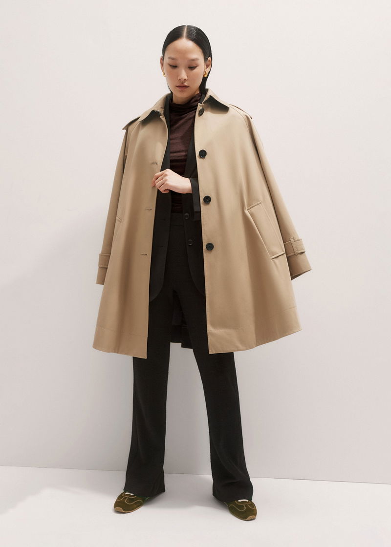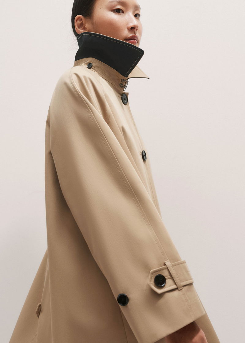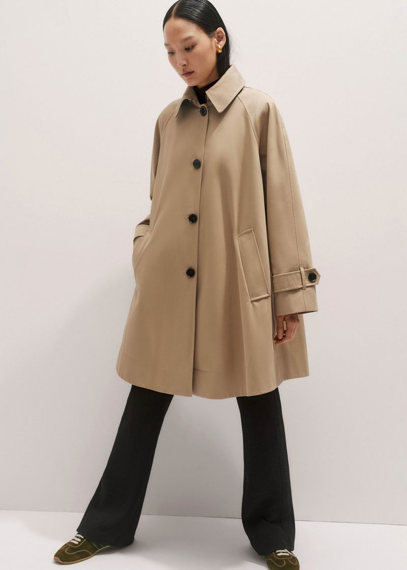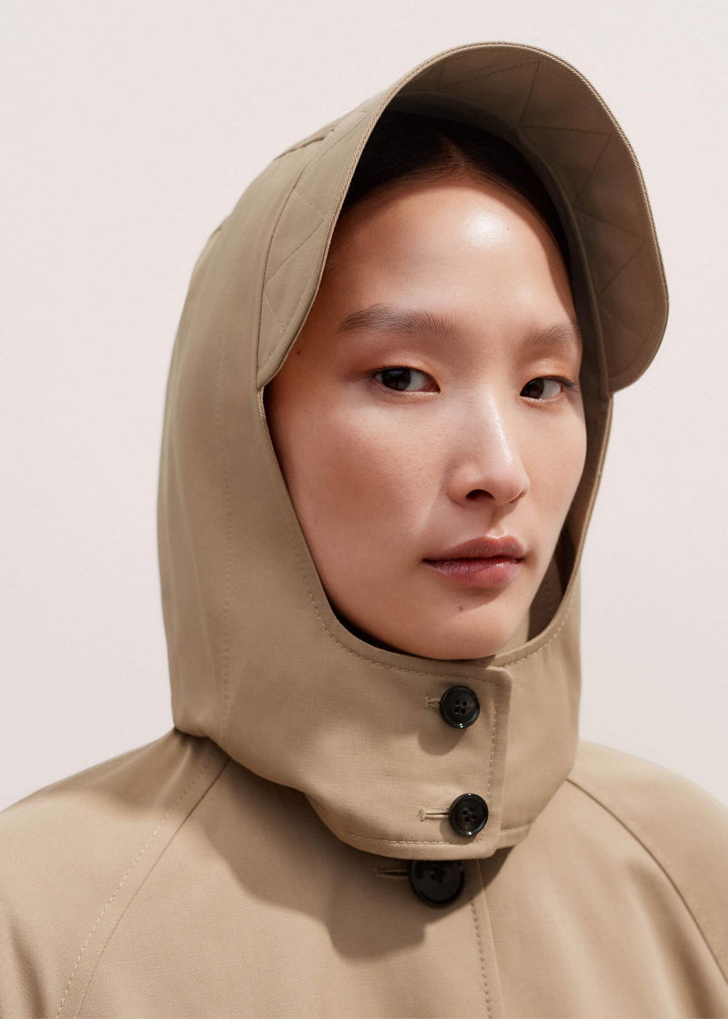 ME+EM's Beige Shower-Proof Swing Mac is made from water-resistant cotton gabardine with a detachable hood and cut to a swing silhouette for a flattering finish.