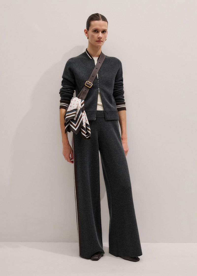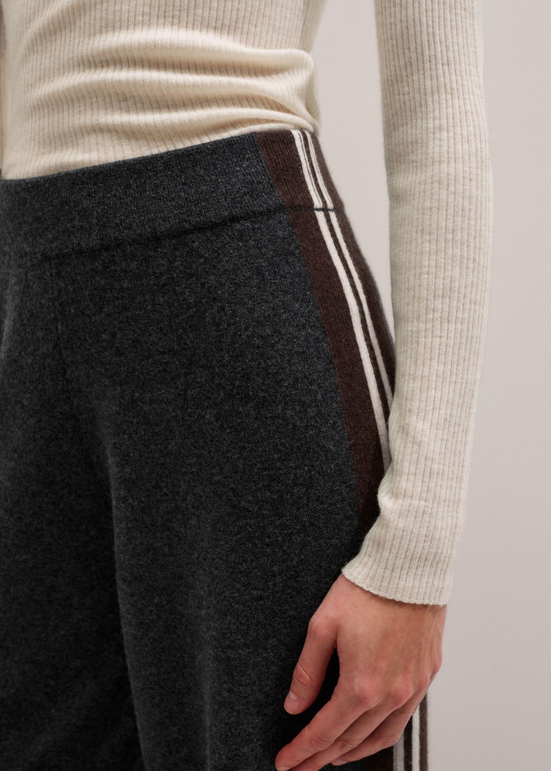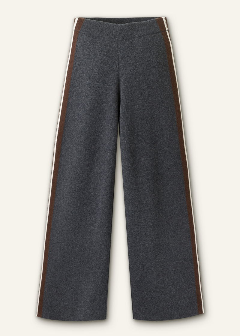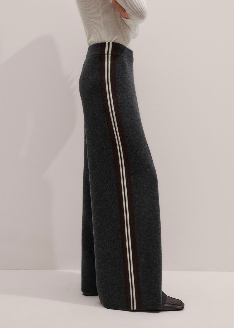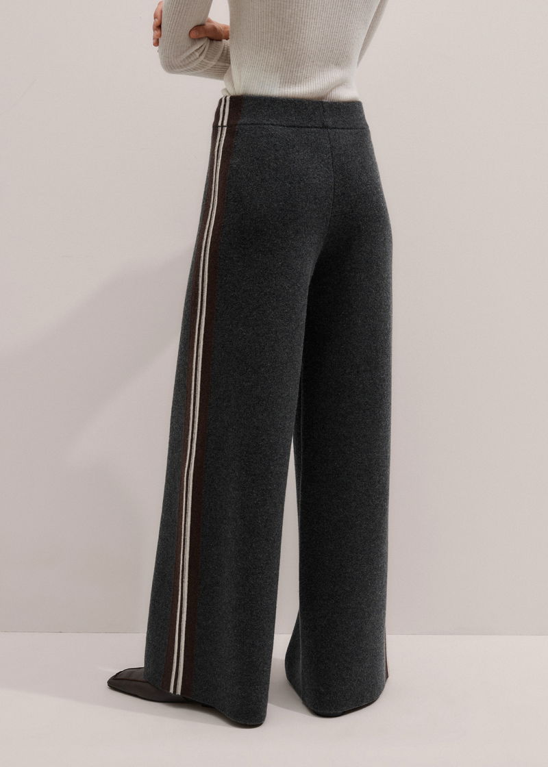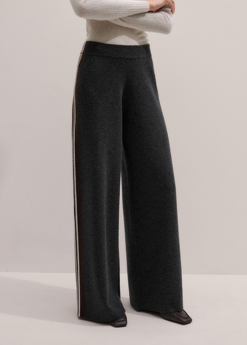 ME+EM's Grey Side Stripe Milano Knit Wide Leg Trouser is made from merino wool and cashmere with a breathable, luxuriously soft handfeel.