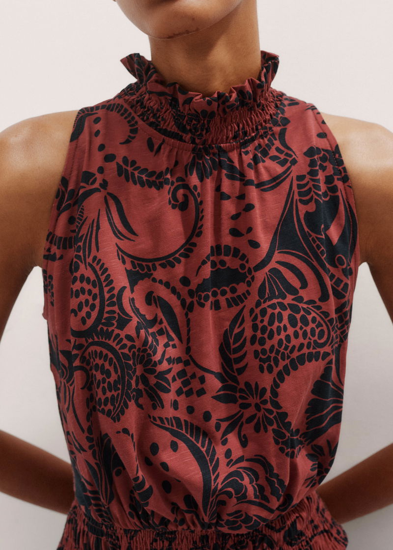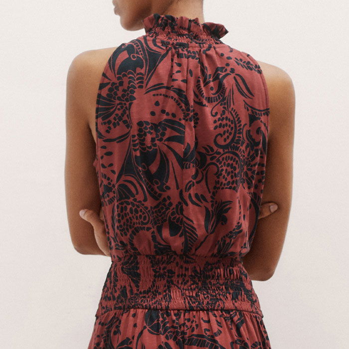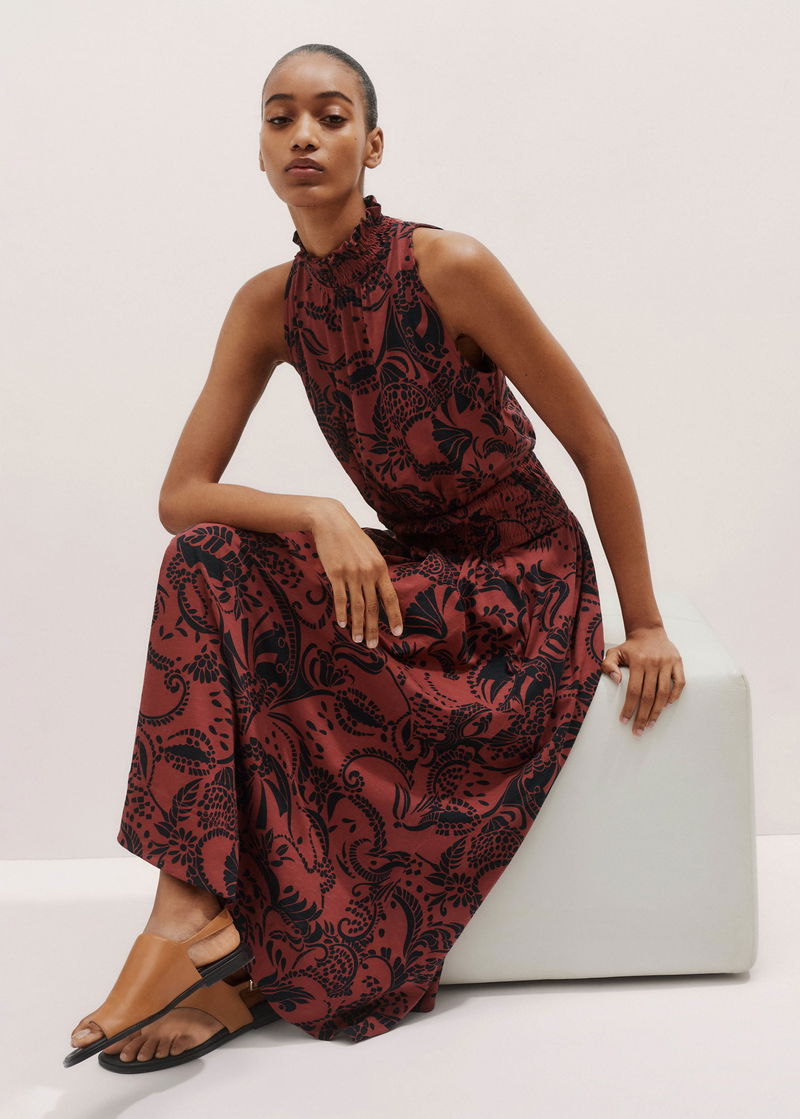 Silhouette Print Maxi Dress Brick Pink/Midnight Navy