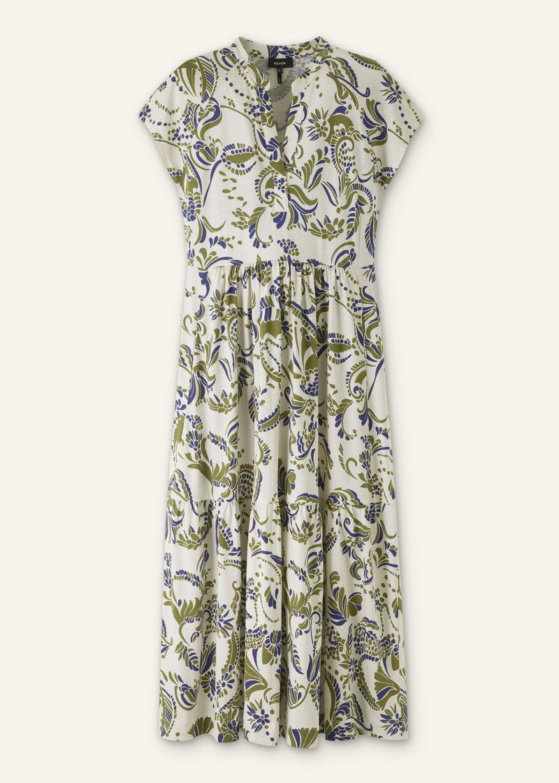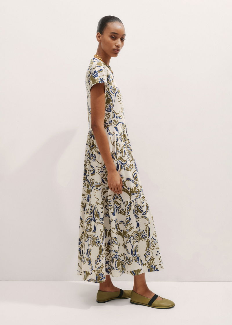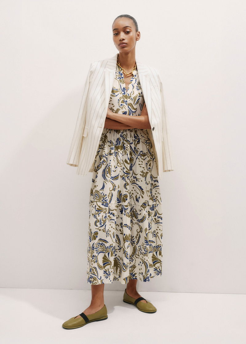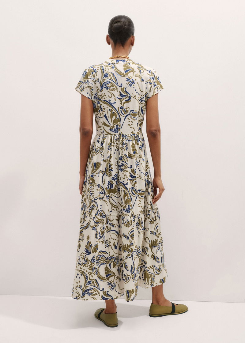 Silhouette Print Tiered Maxi Dress Light Cream/Golden Olive/True Blue