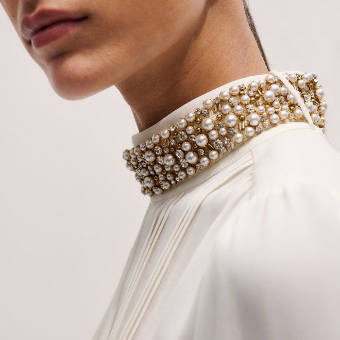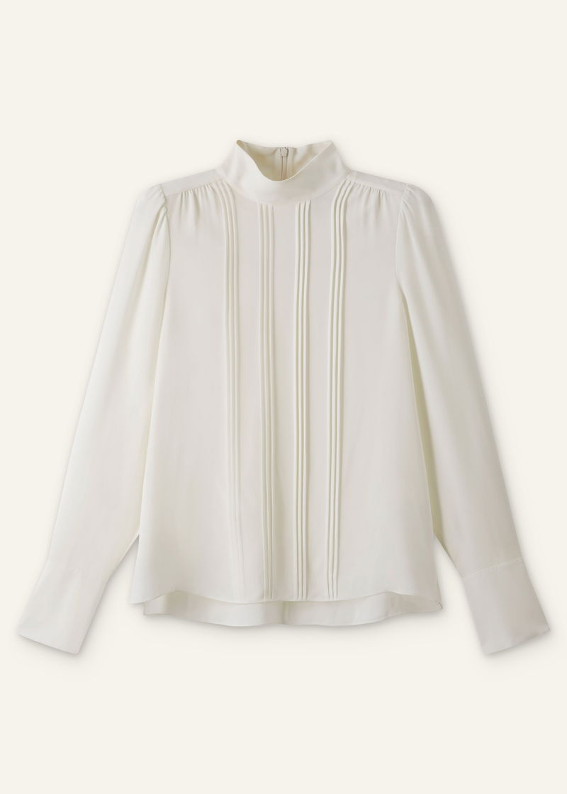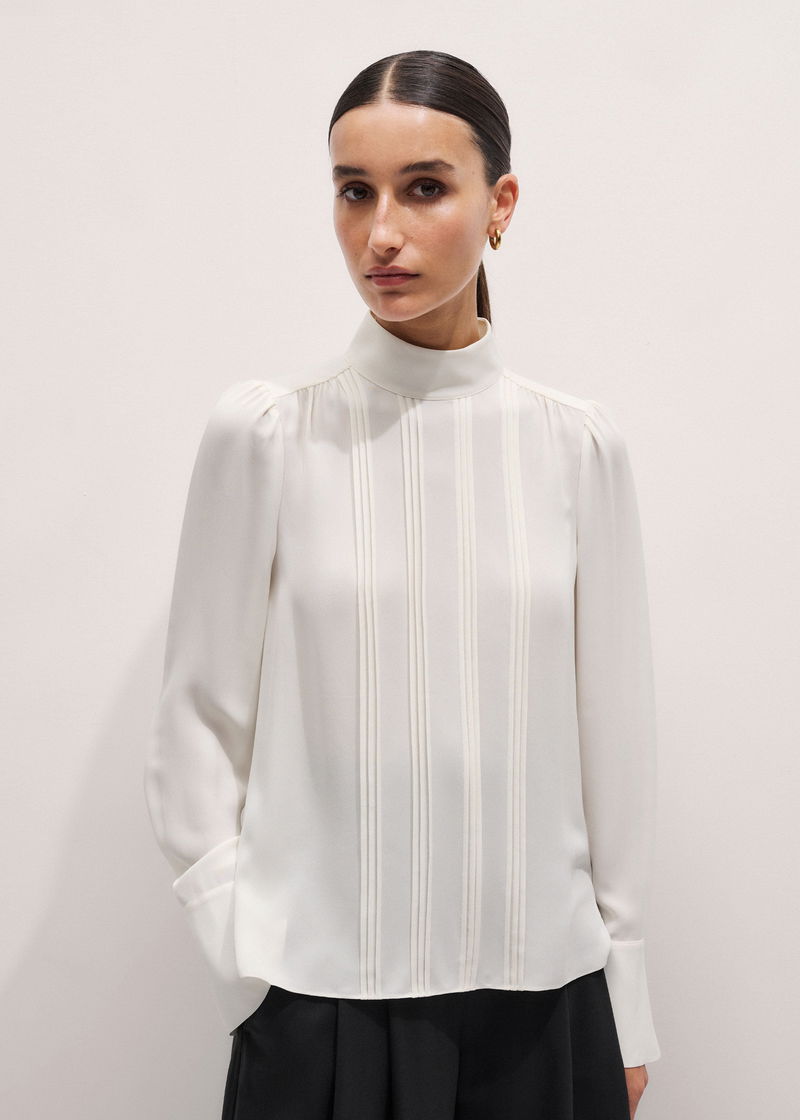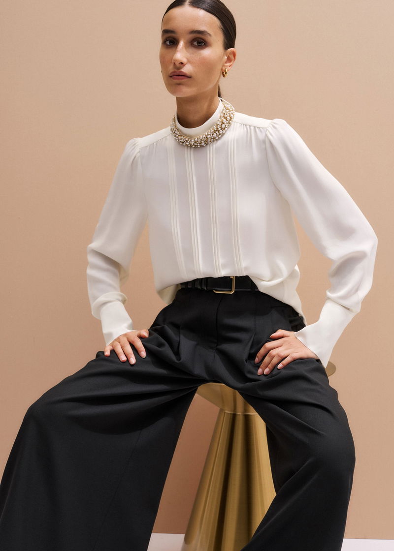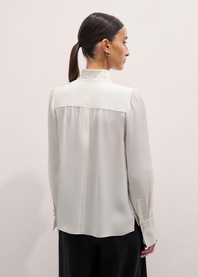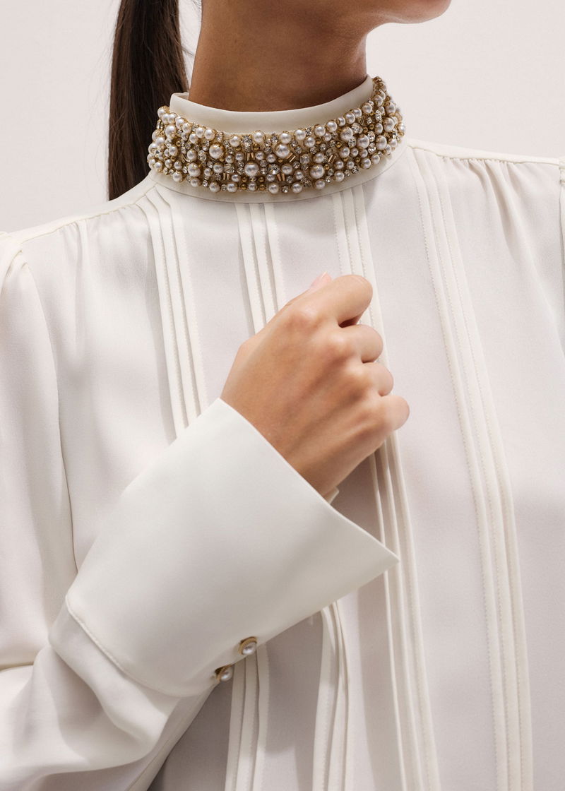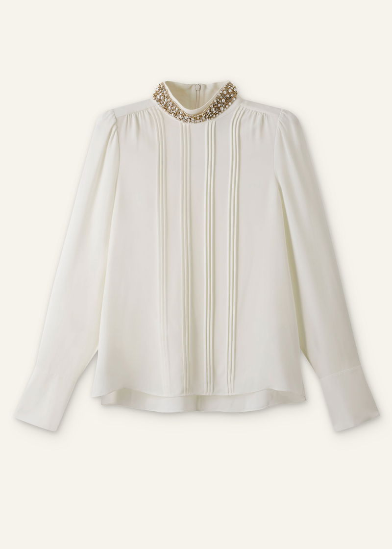 Silk Am-Pm High Neck Top + Embellished Collar Light Cream