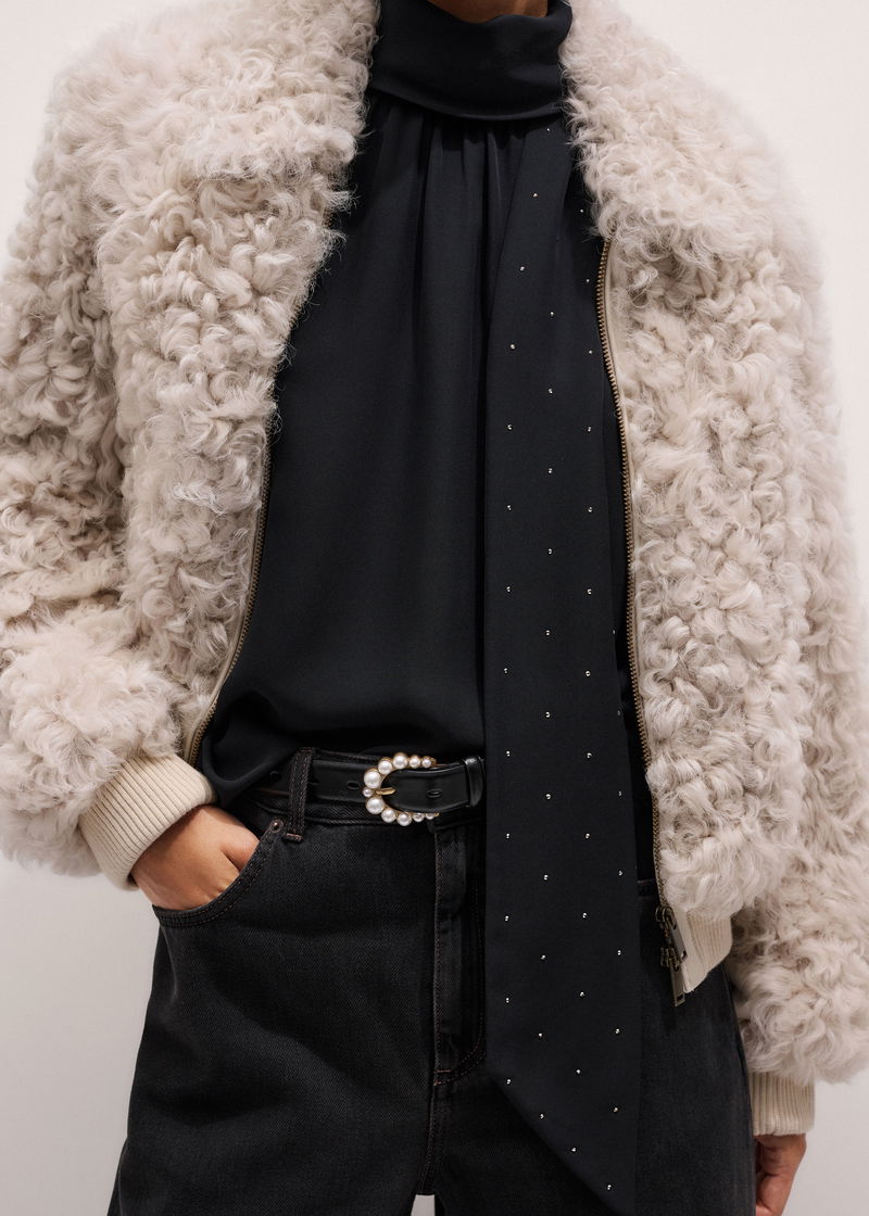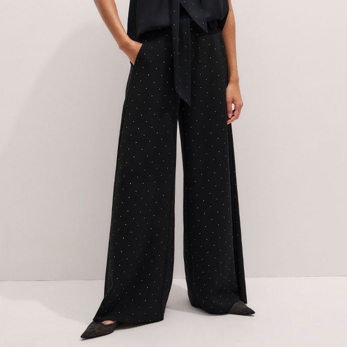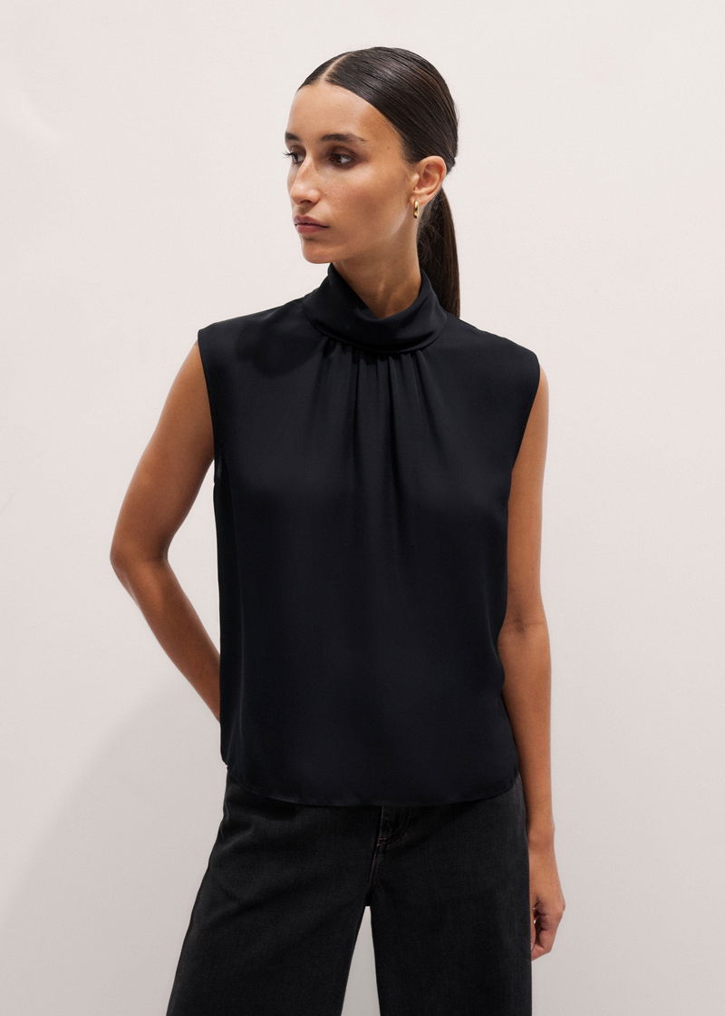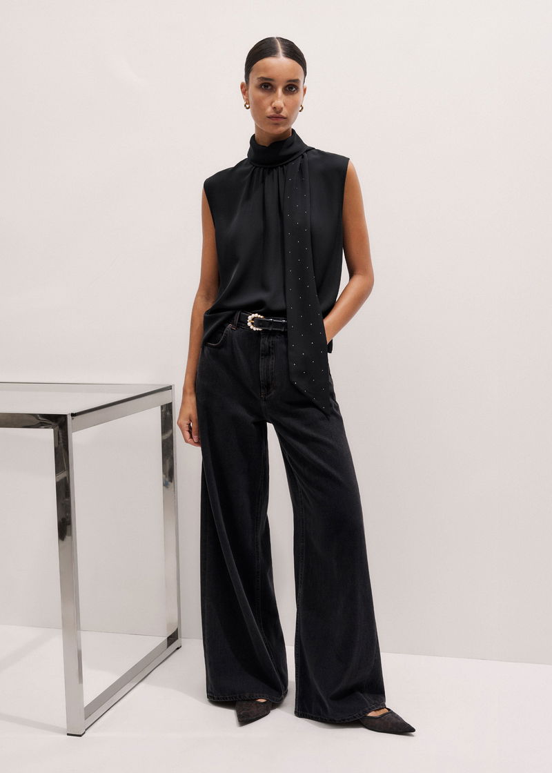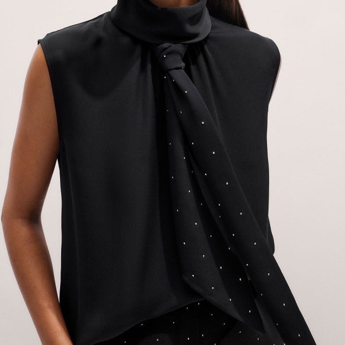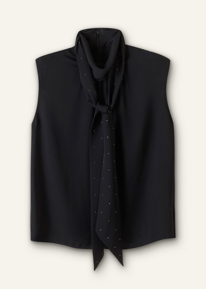 Silk Am-Pm Sleeveless Top + Crystal Embellished Scarf Black
