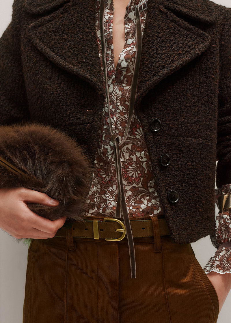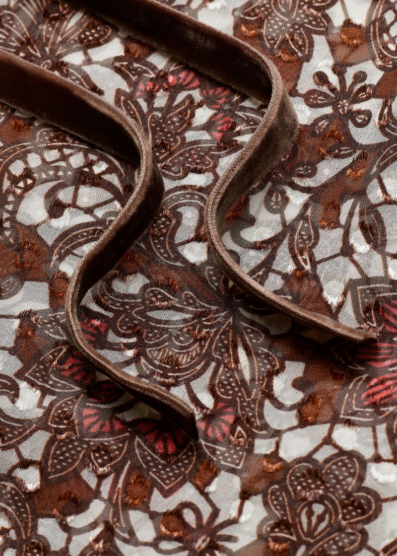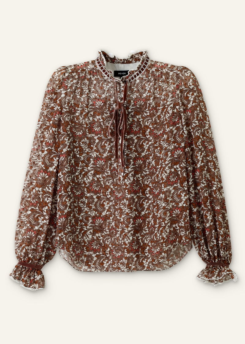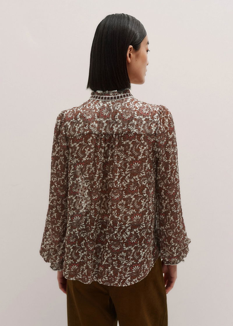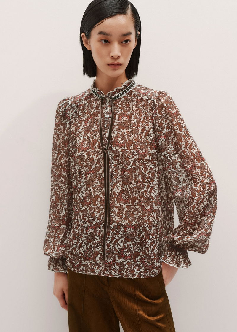Silk Blend Graphic Lace Print Blouse Brown Multi