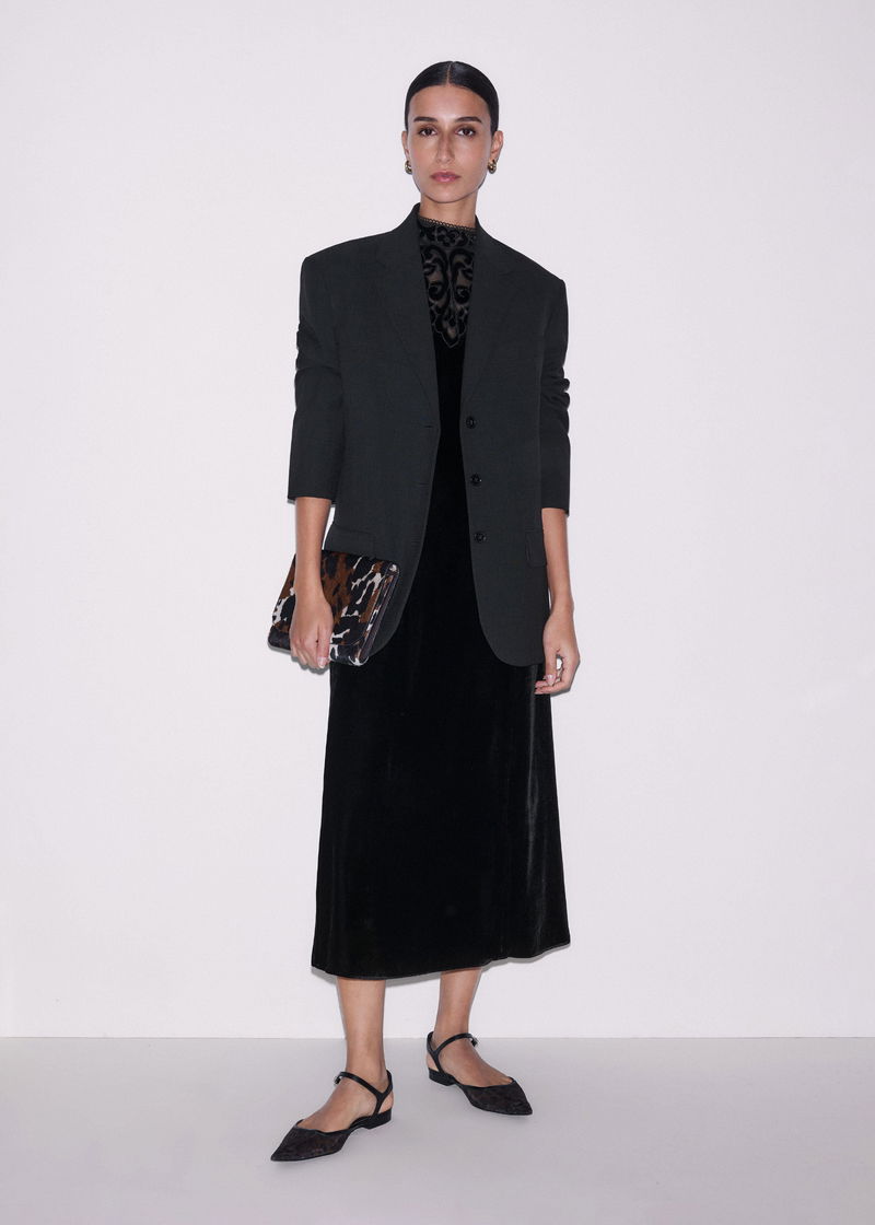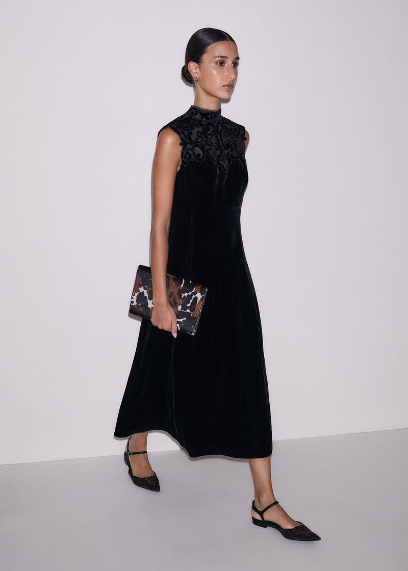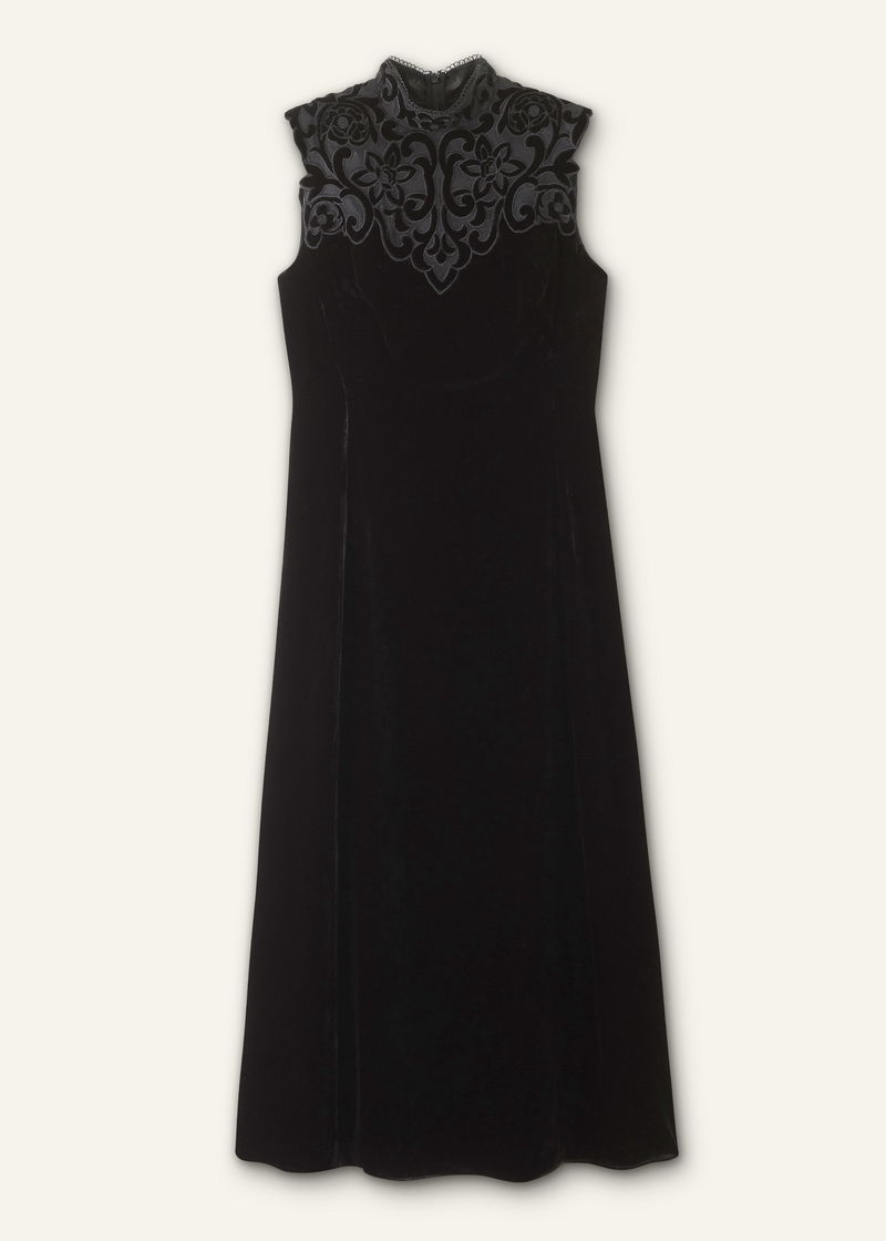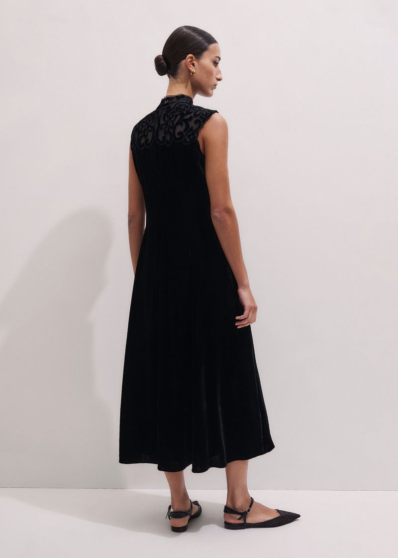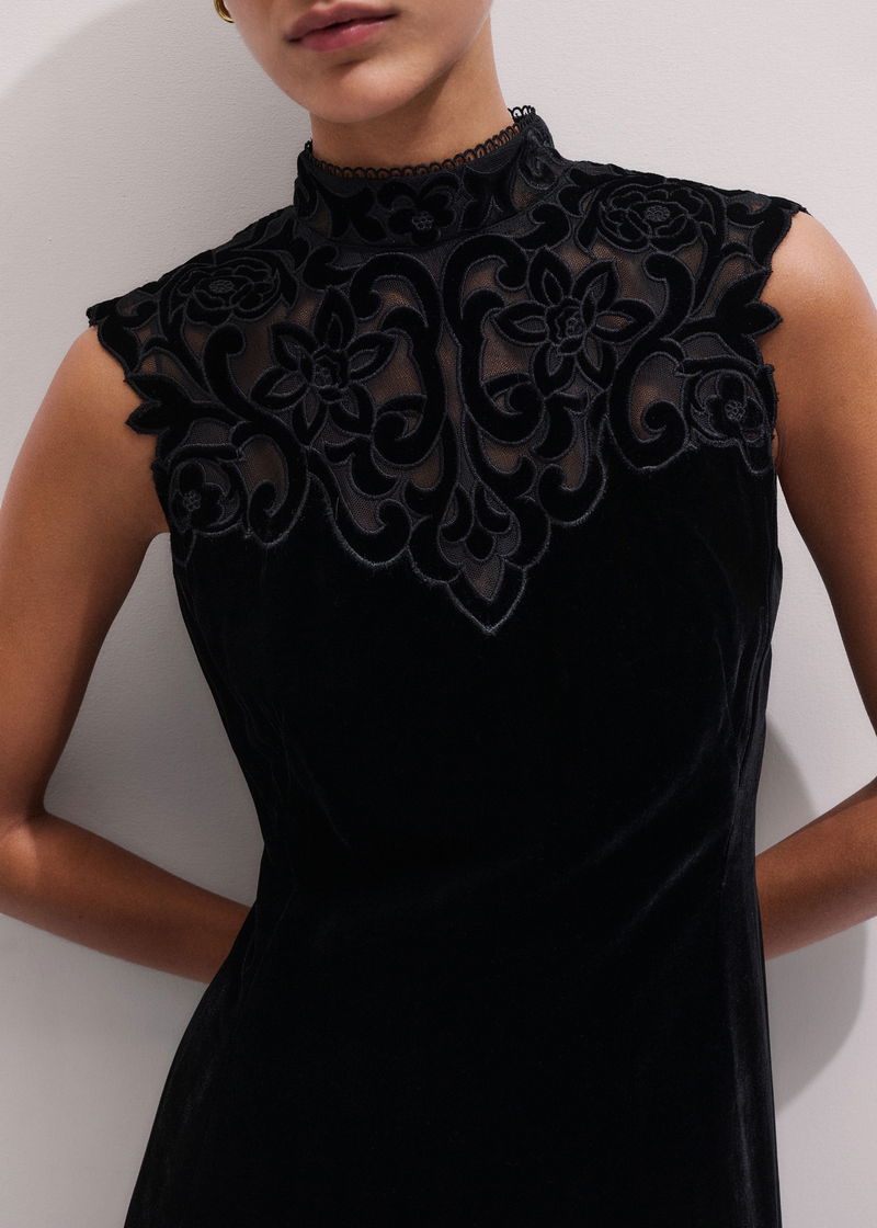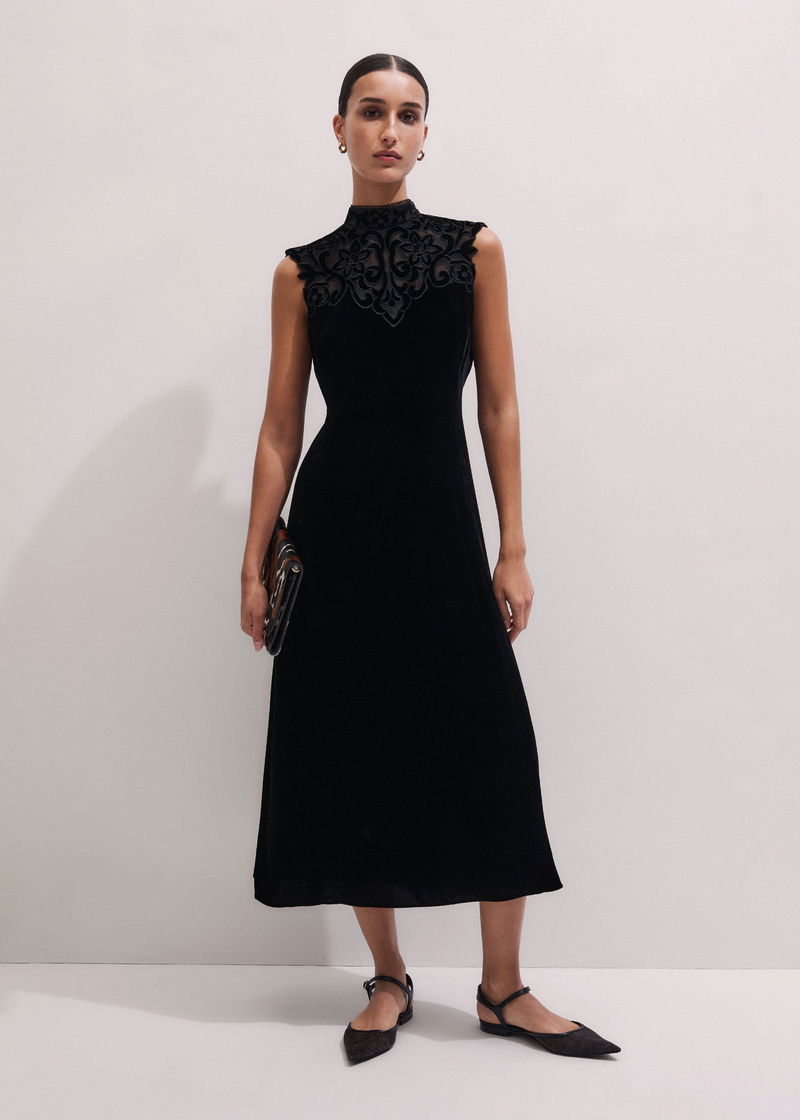 Silk Blend Velvet Embroidered Midi Dress Black