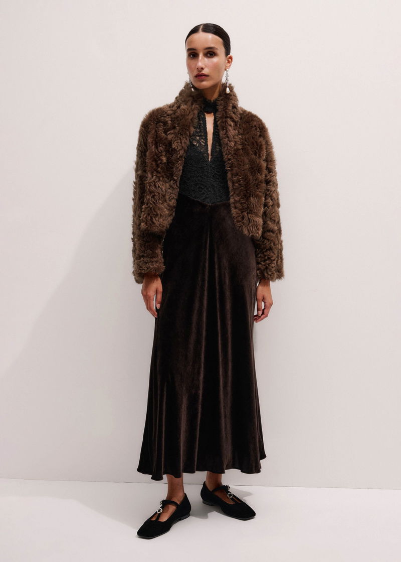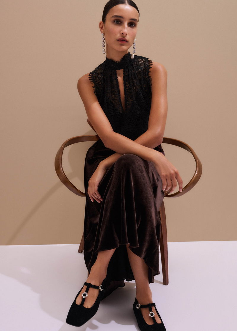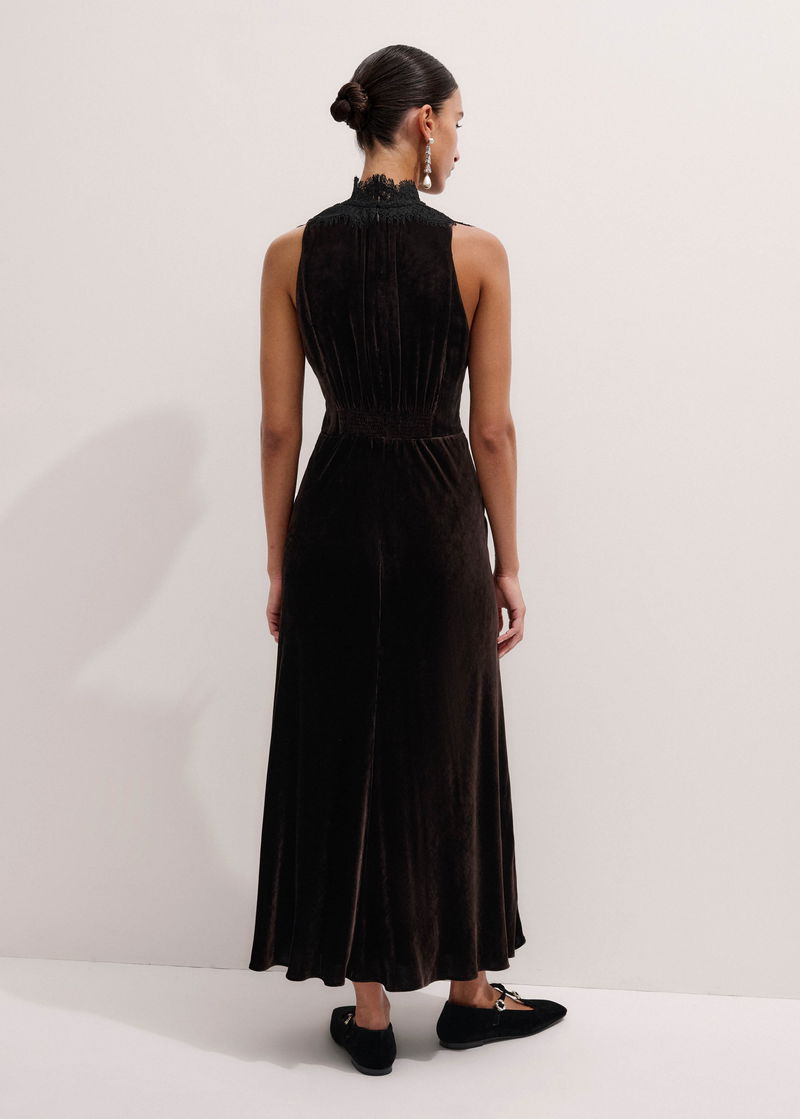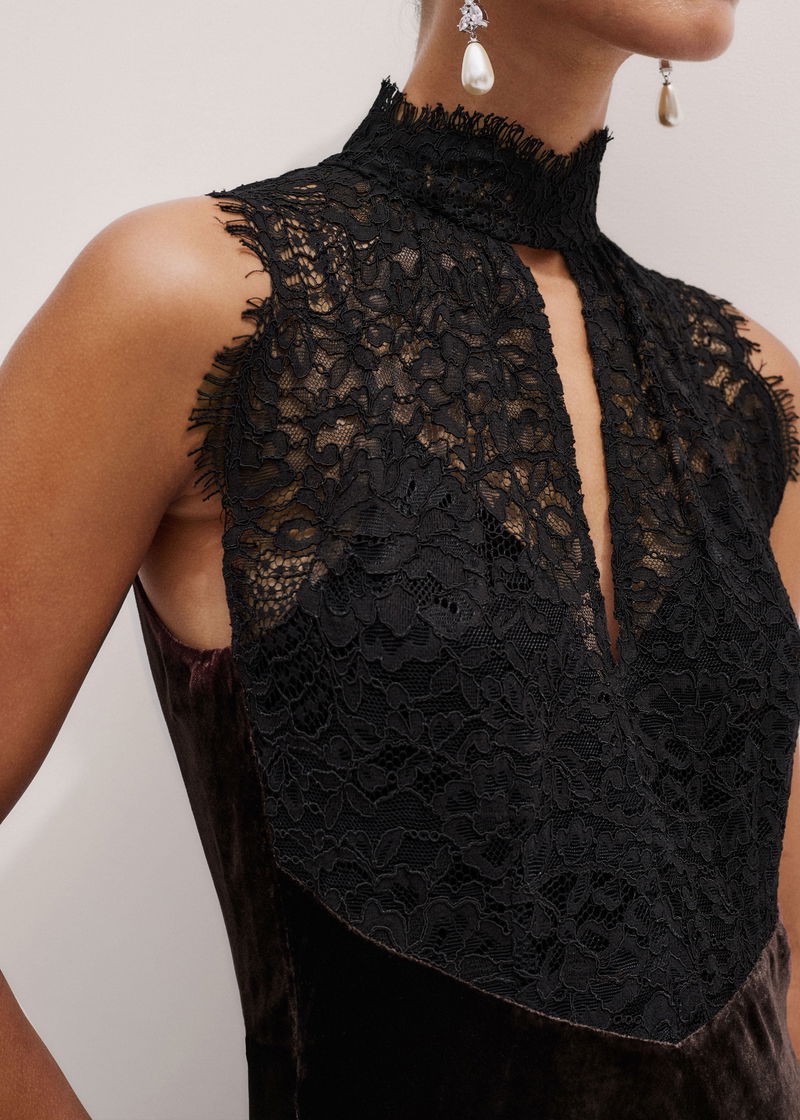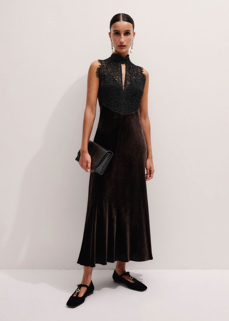 Silk Blend Velvet Lace Panel Maxi Dress Double Espresso