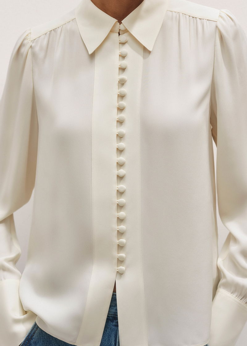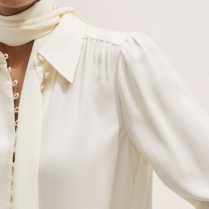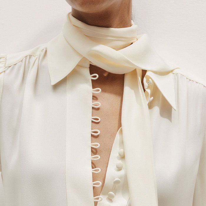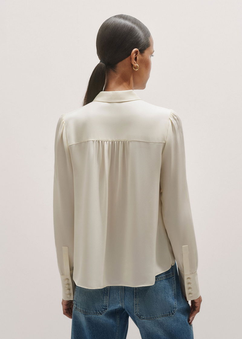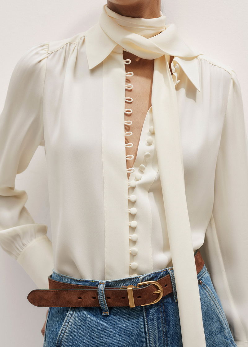Silk Button Layering Shirt + Tie Light Cream