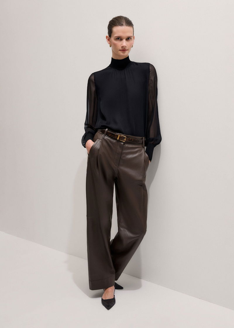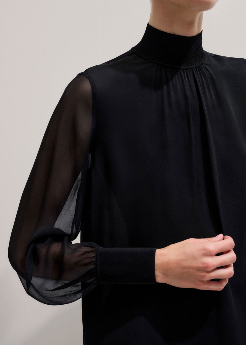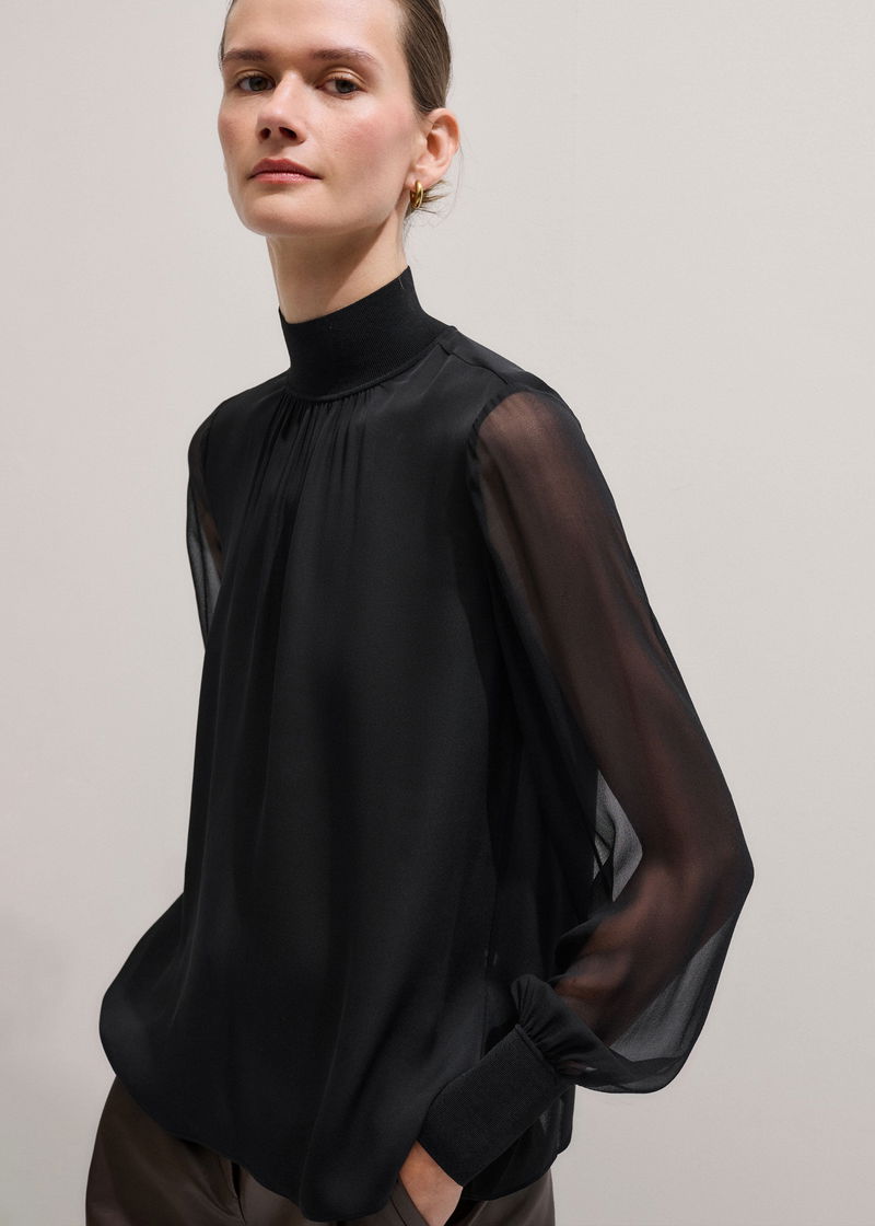 Silk Chic Rib Straight Blouse Black