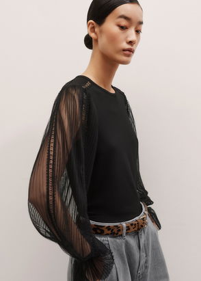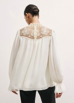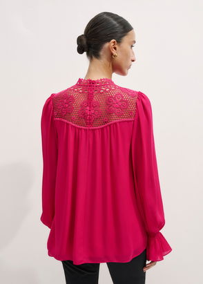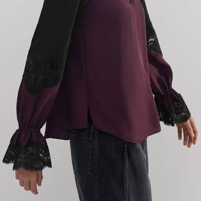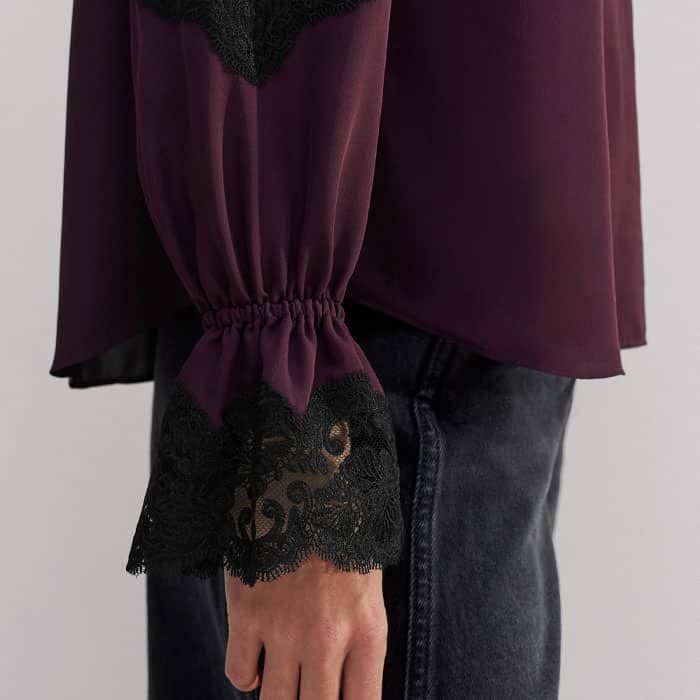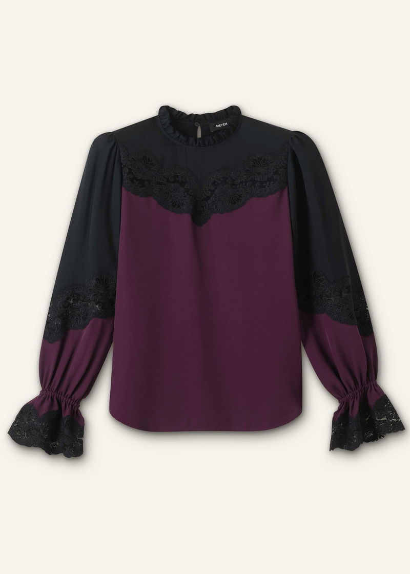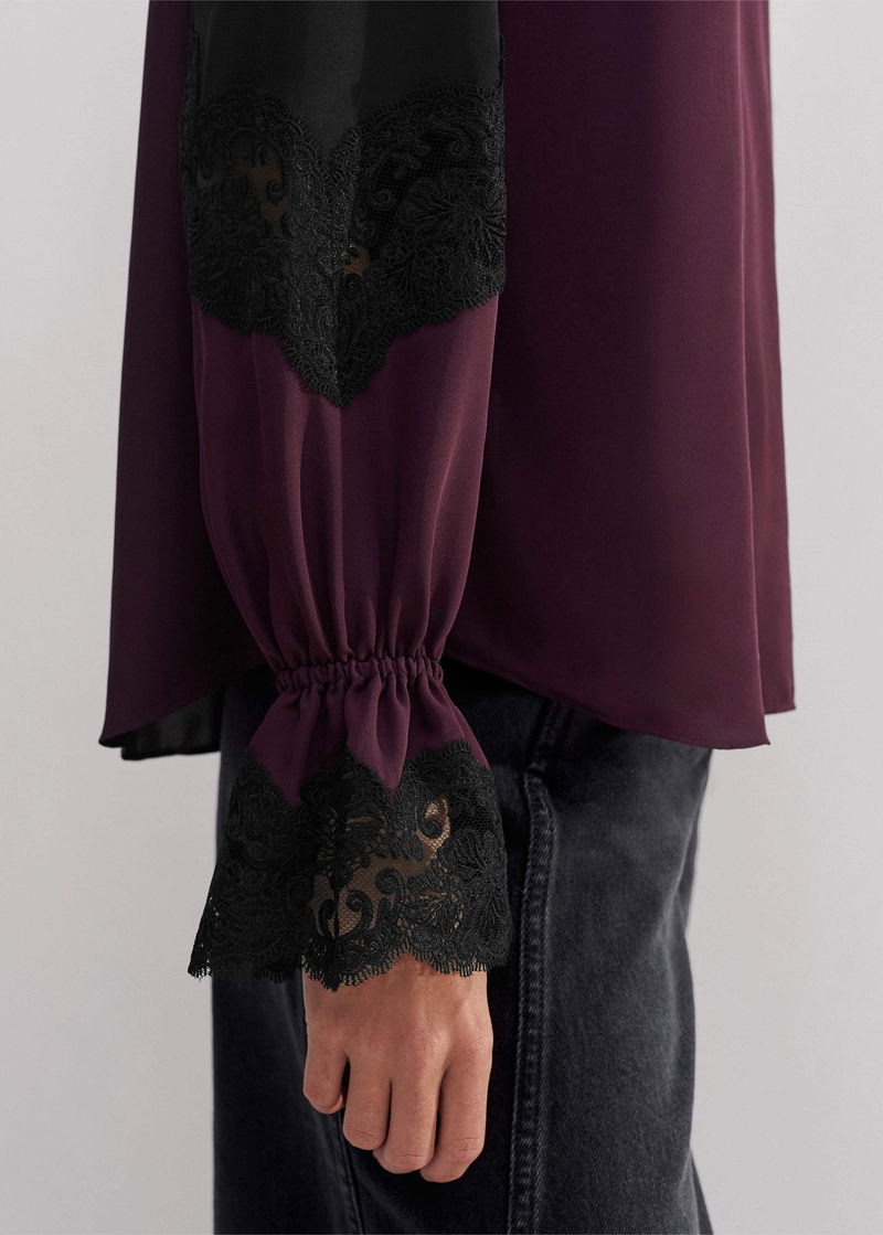 Silk Colour Block Lace Trim Blouse Black/Deep Merlot