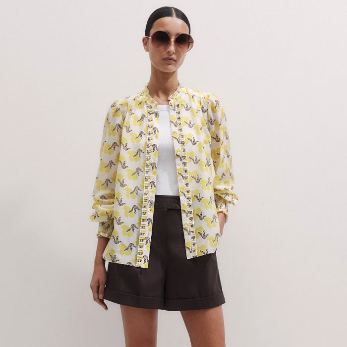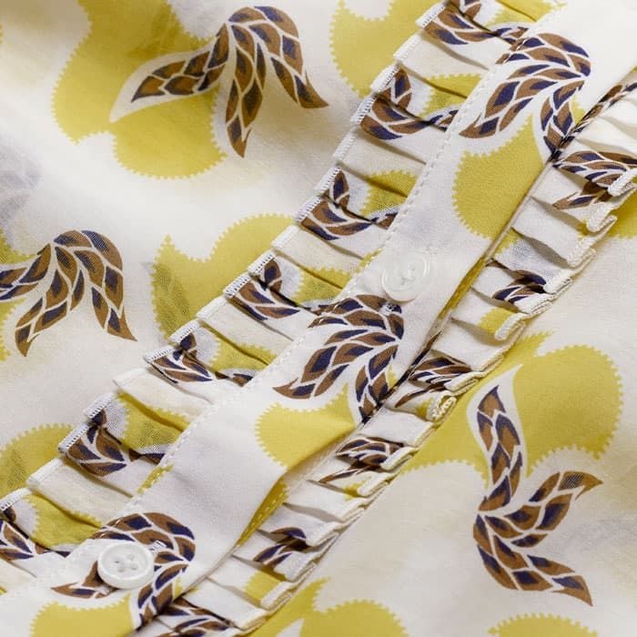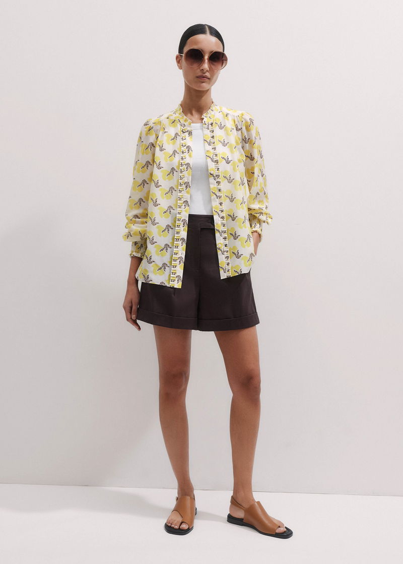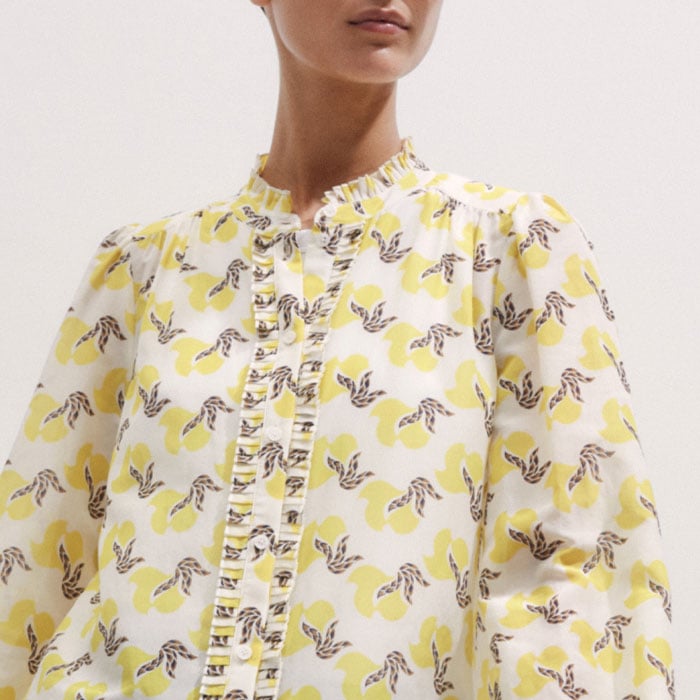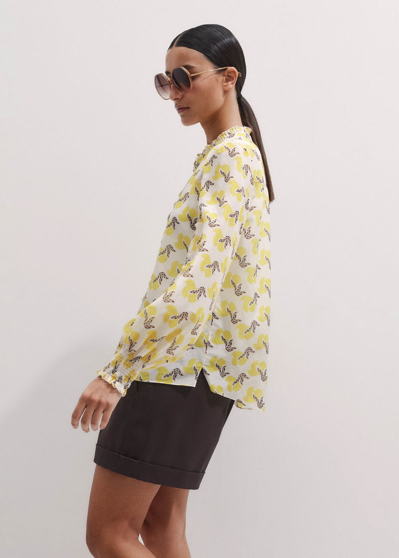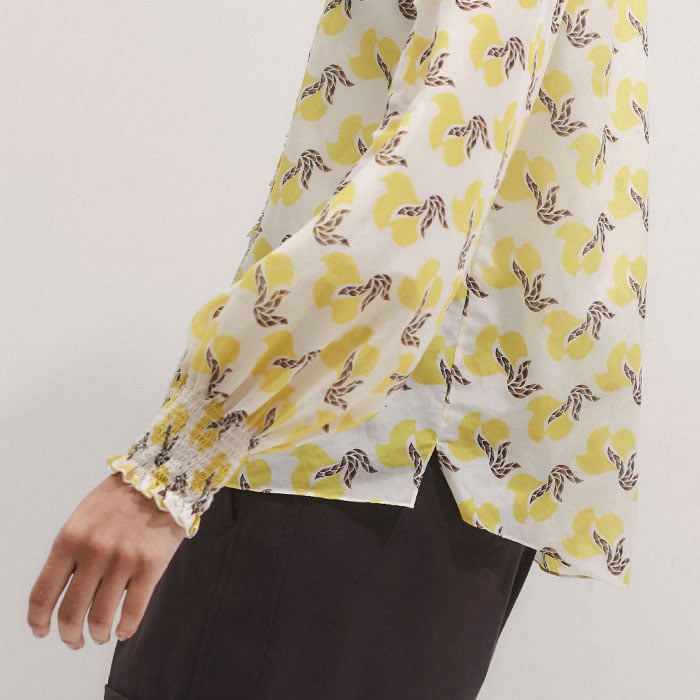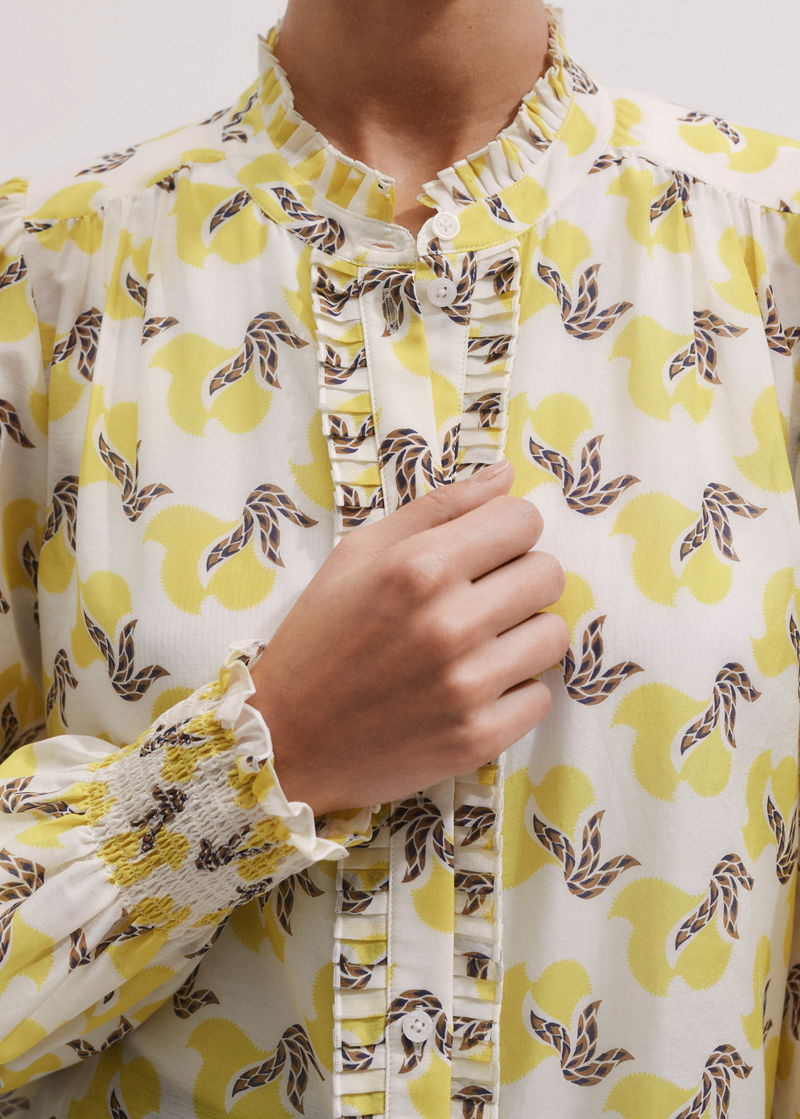 Silk Cotton Bird Of Paradise Print Blouse Sunlight Yellow/Light Cream