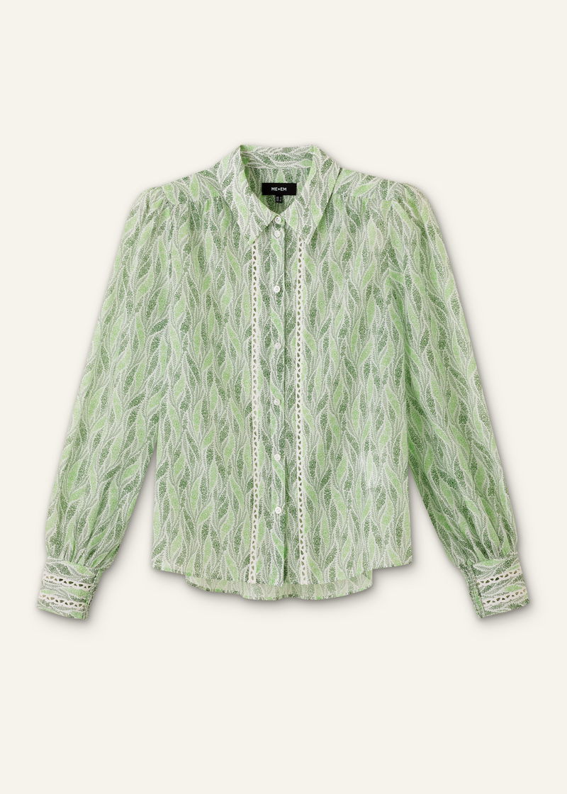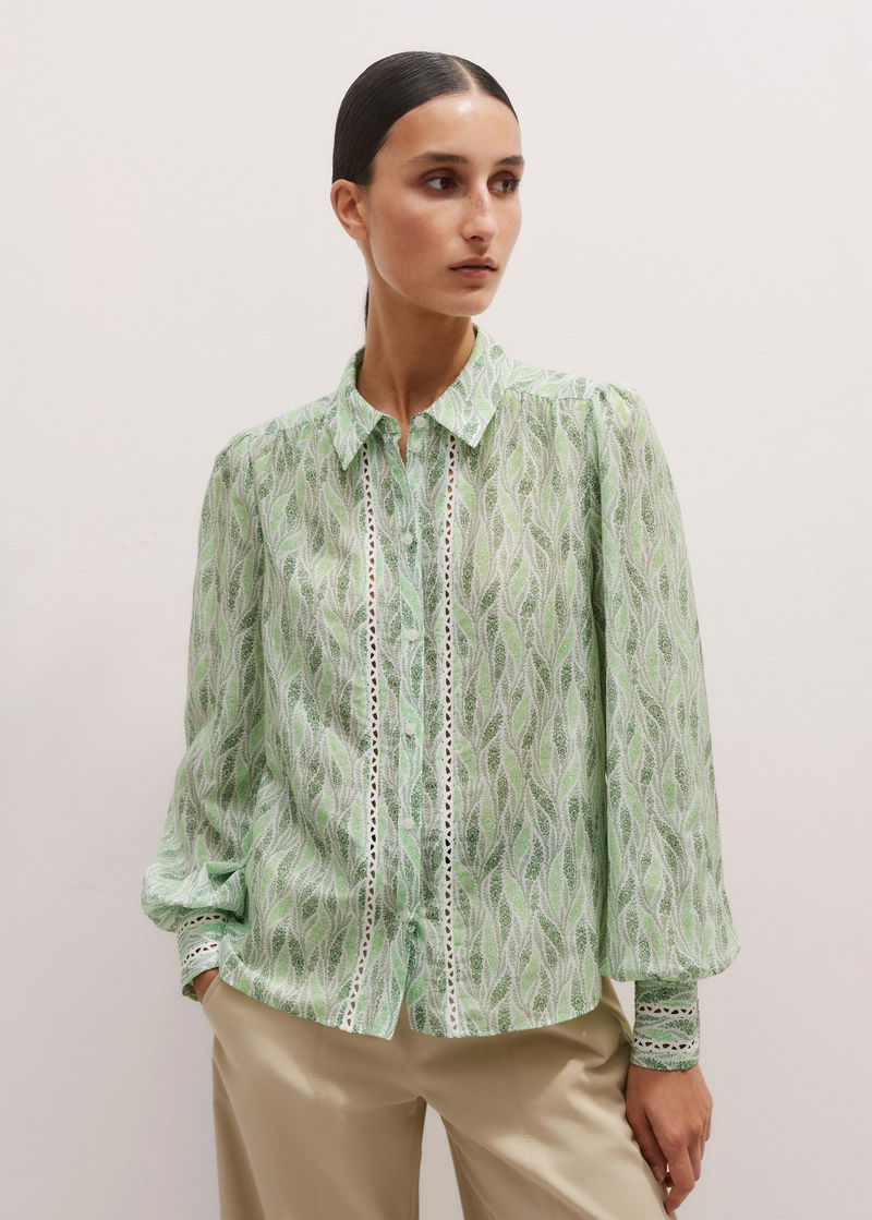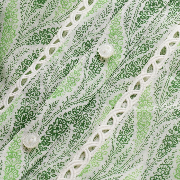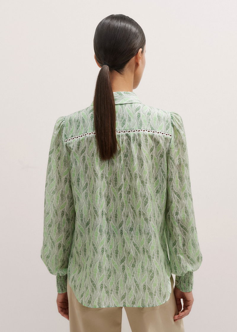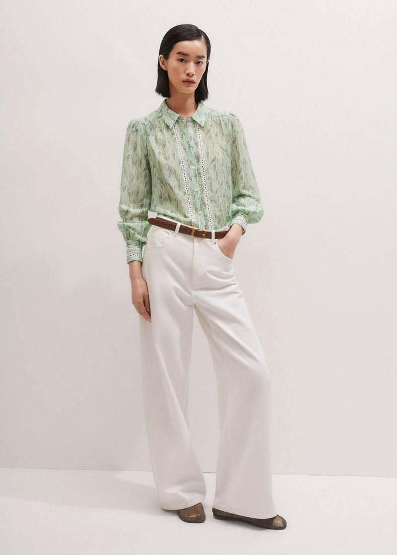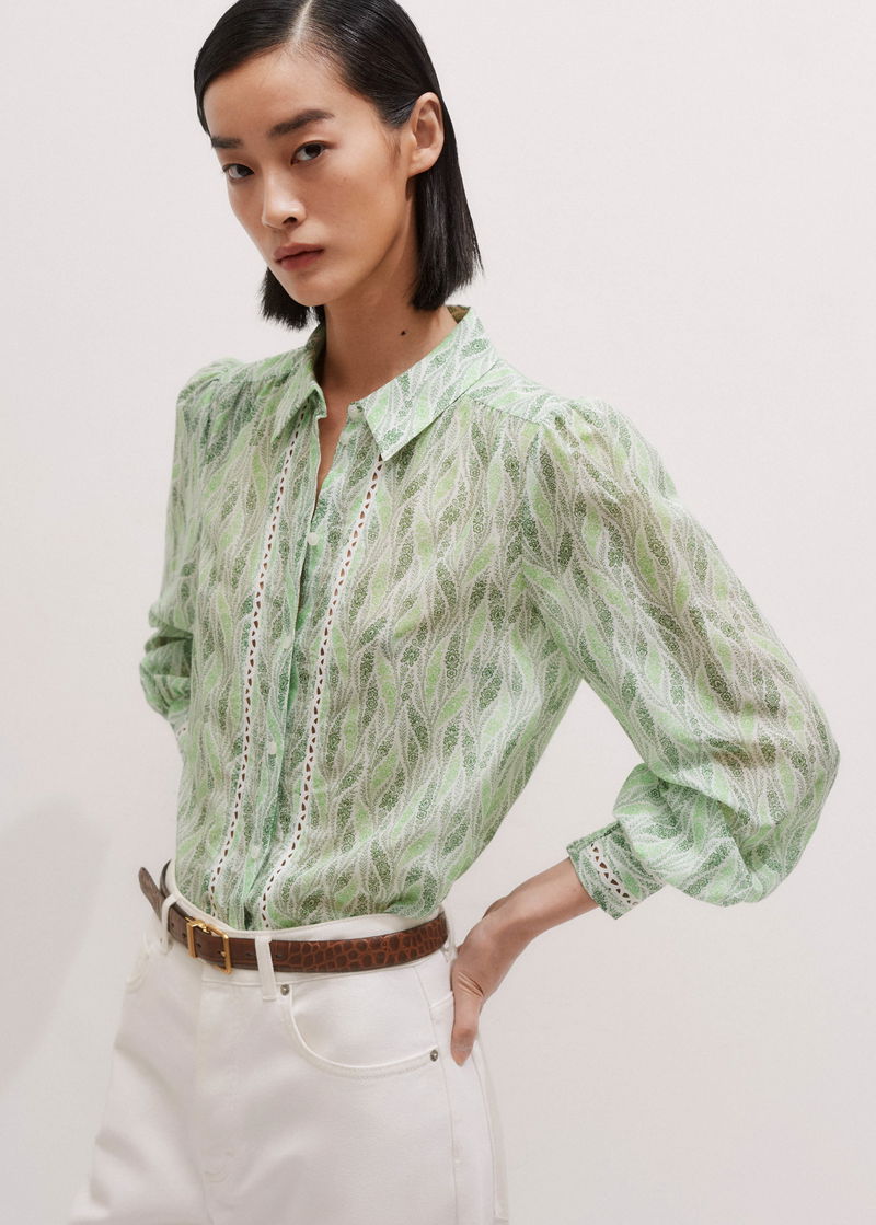 Silk Cotton Climbing Feather Print Blouse Light Cream/Green/Multi