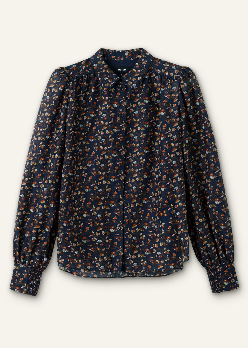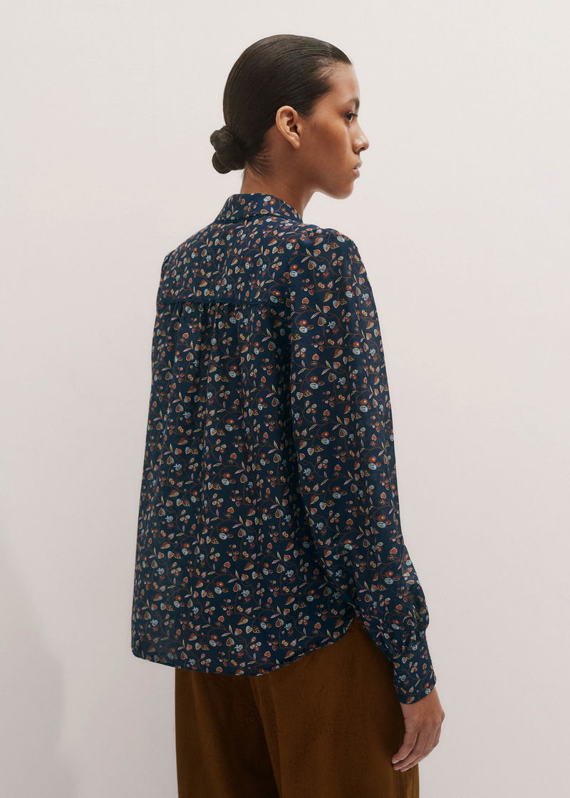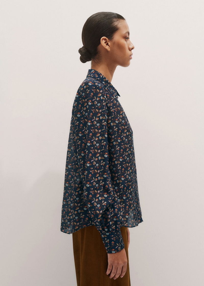 Silk Cotton Cottage Garden Print Blouse Navy Multi