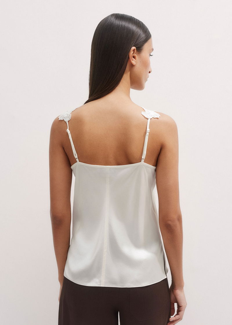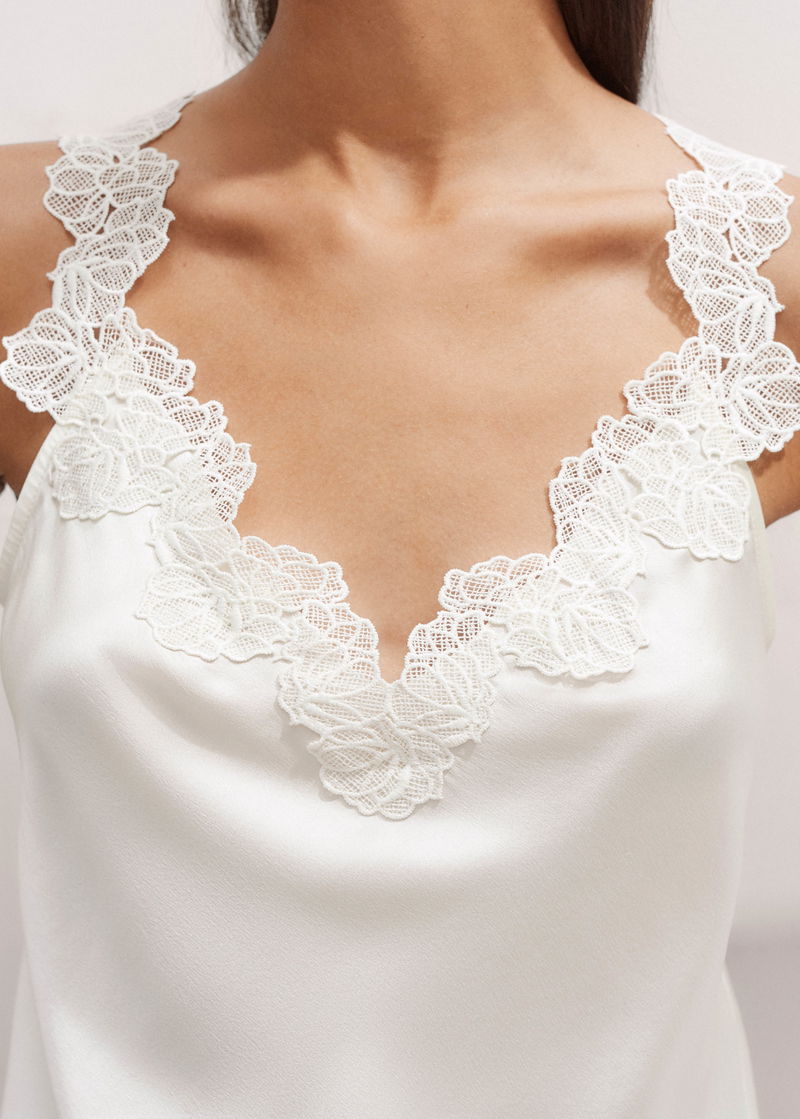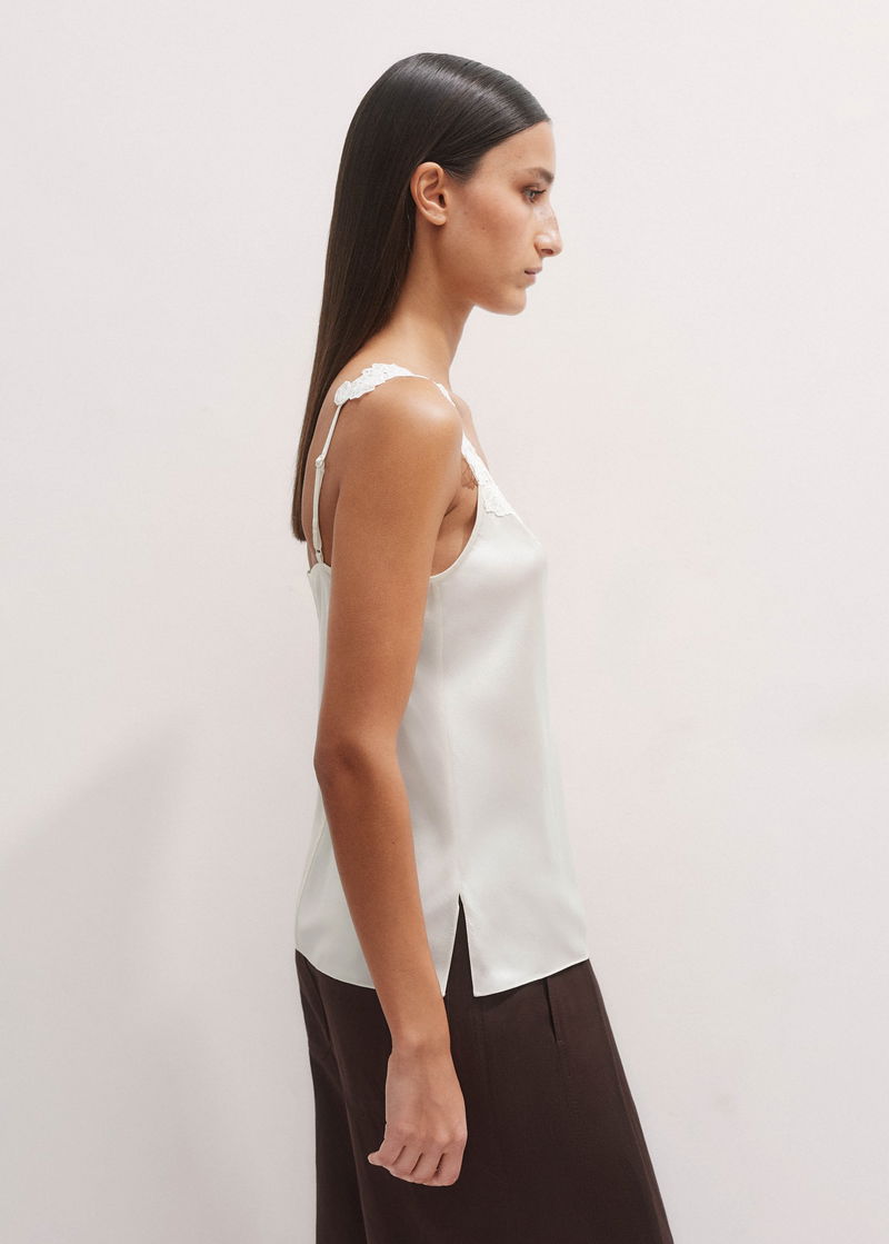 Silk+Lace Camisole Top Light Cream