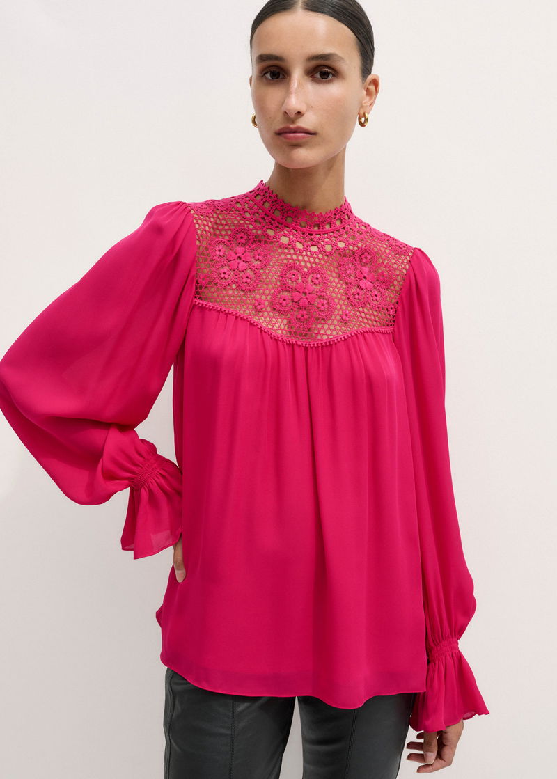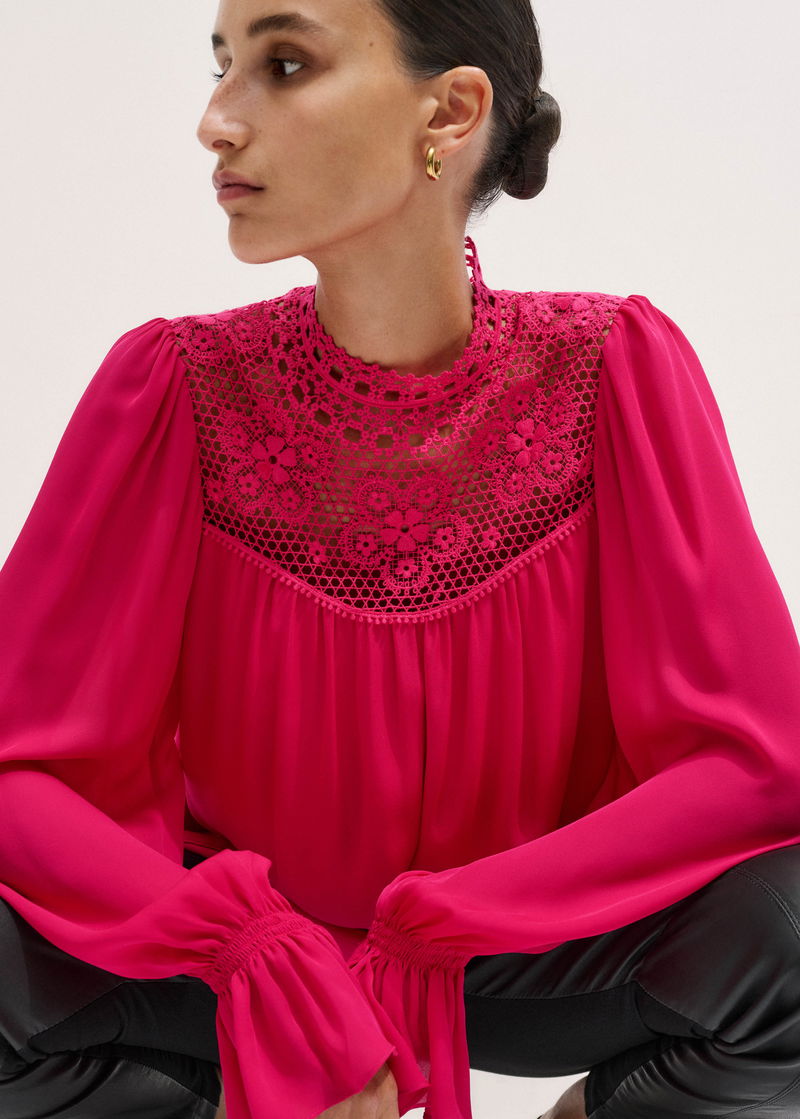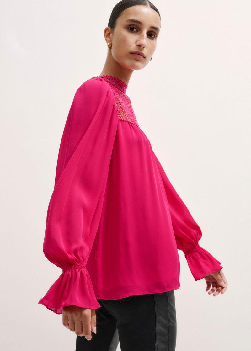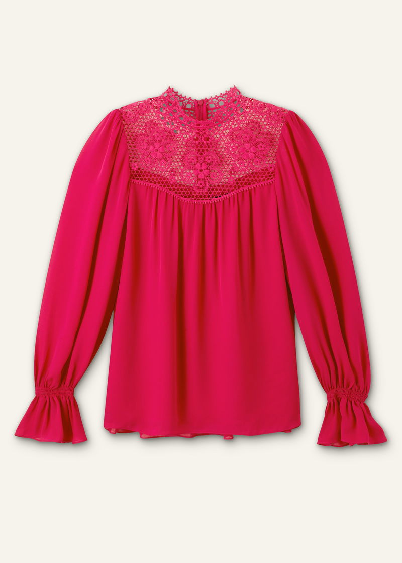Silk + Lace Long Sleeve Blouse Hibiscus Pink
