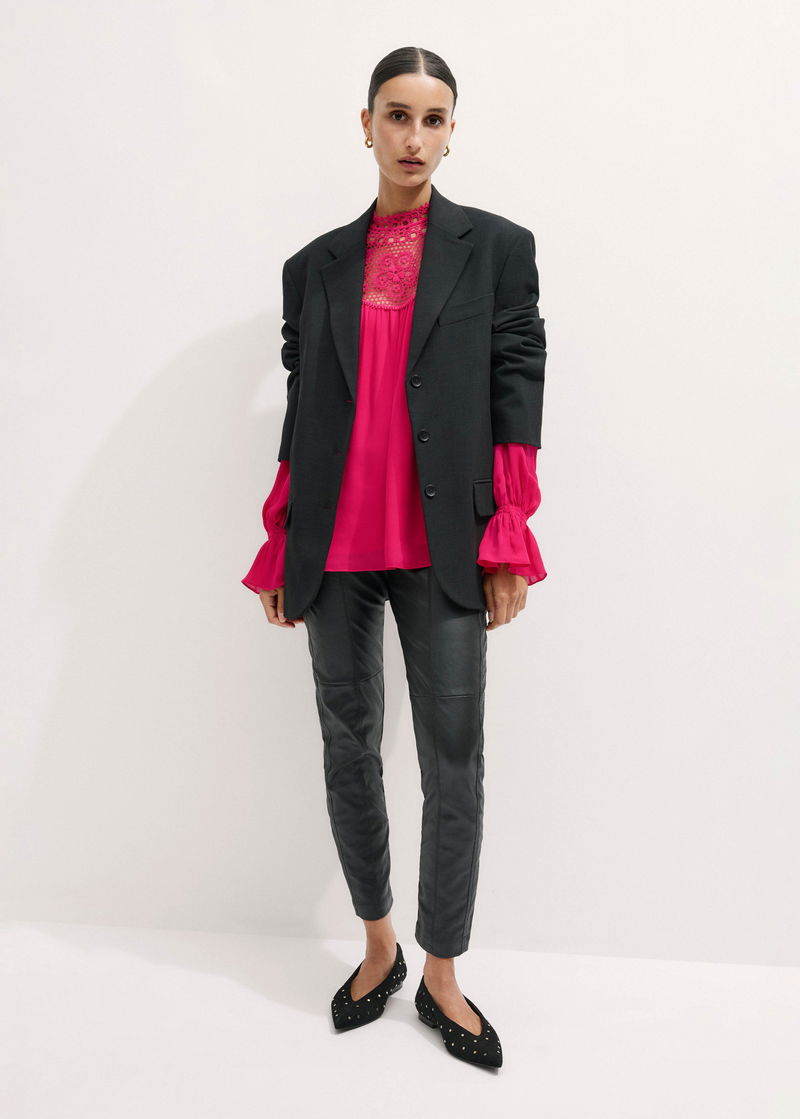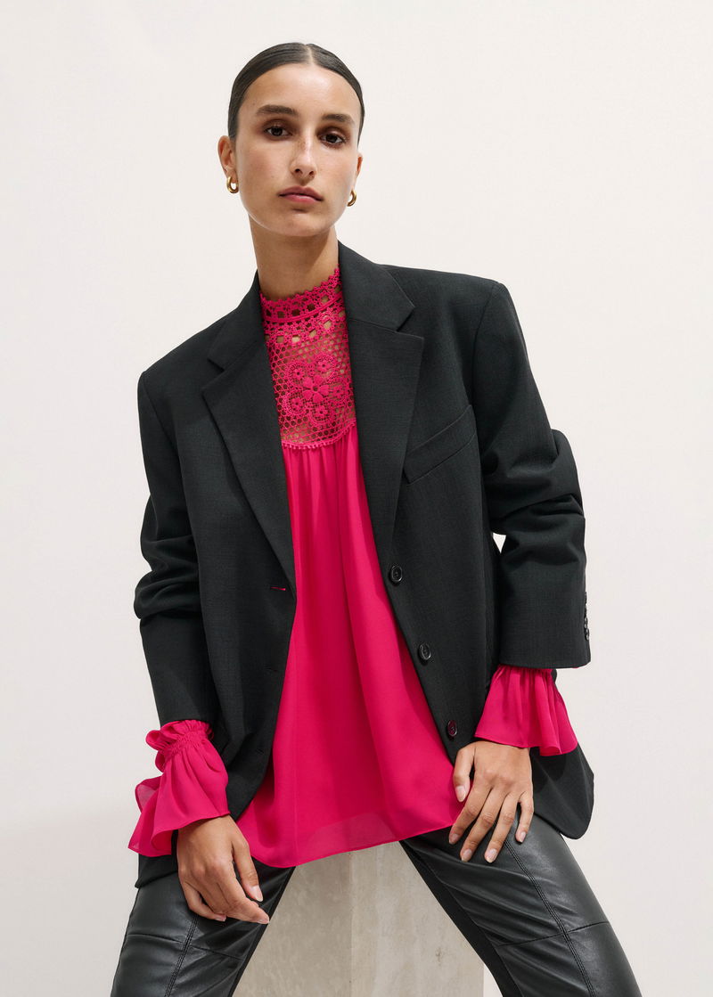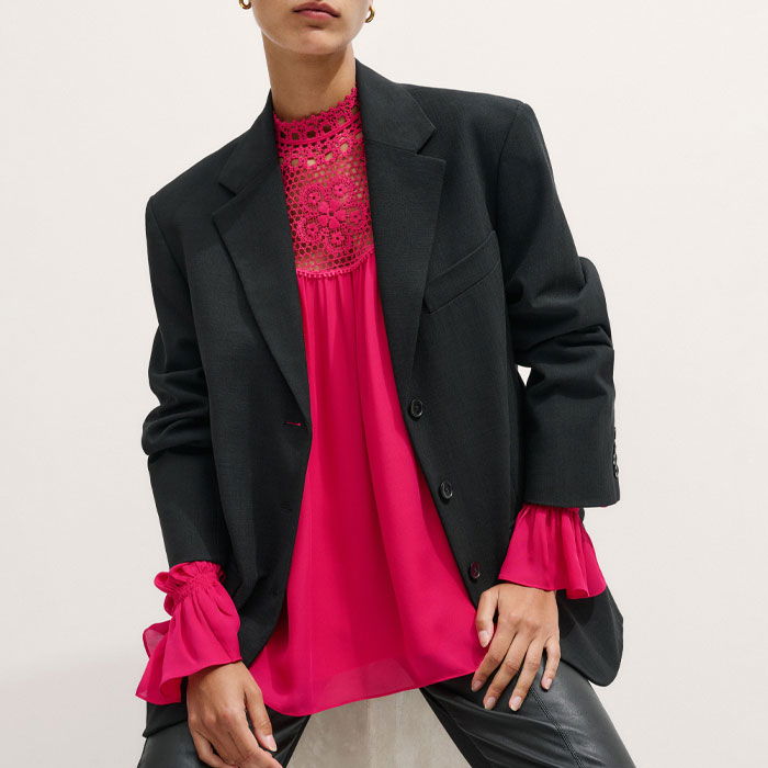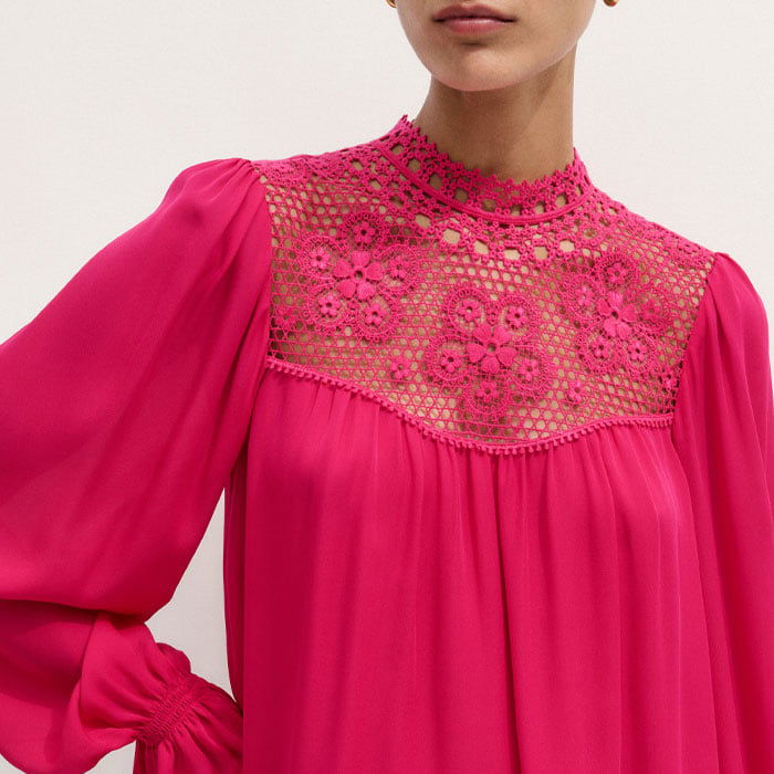 Silk + Lace Long Sleeve Blouse Hibiscus Pink