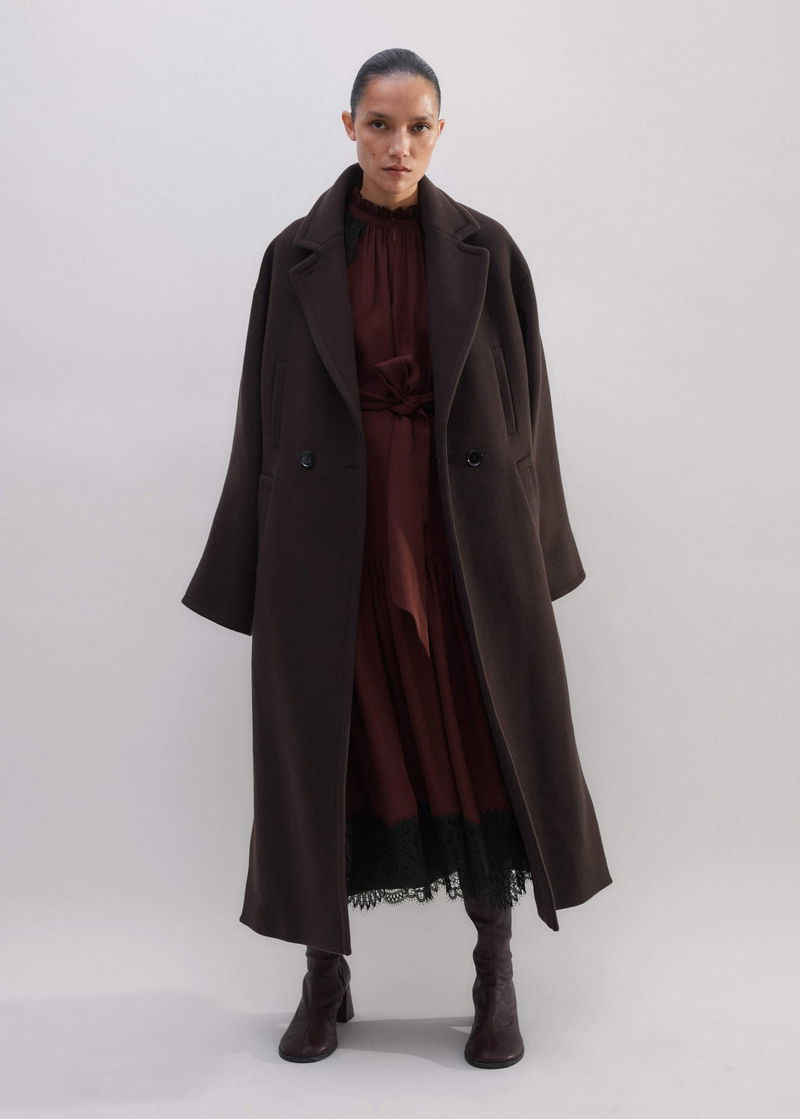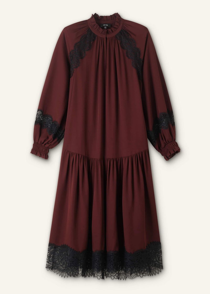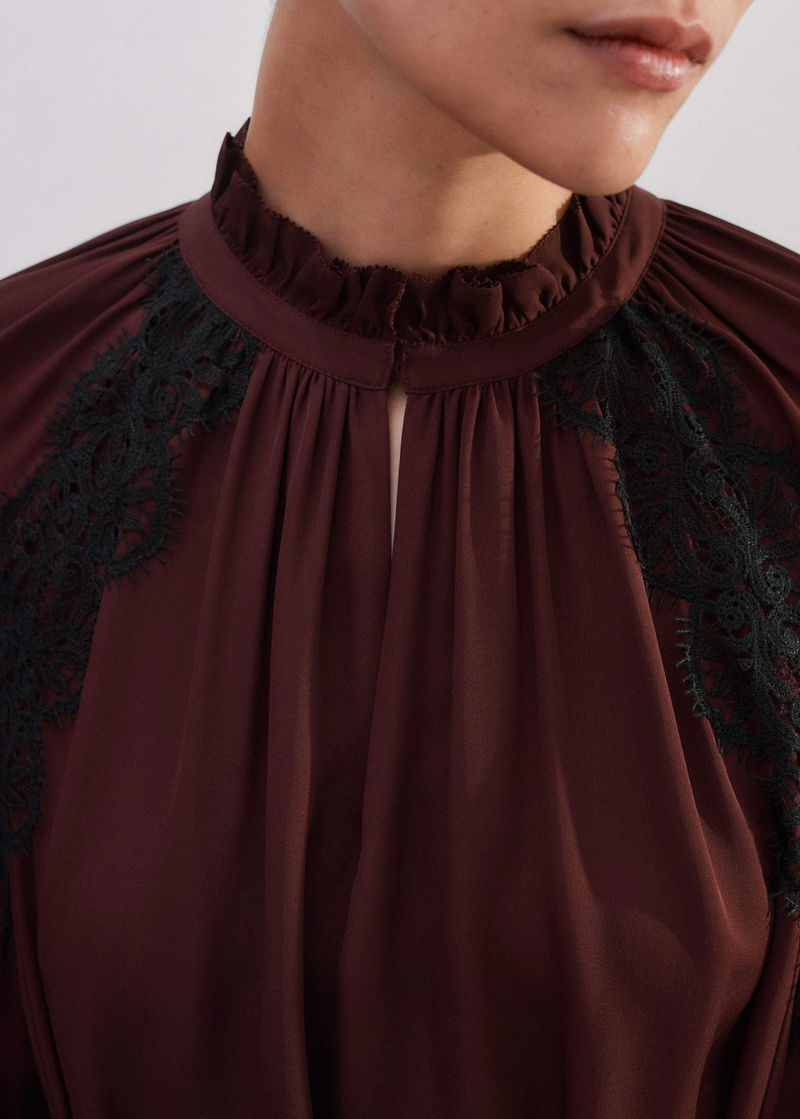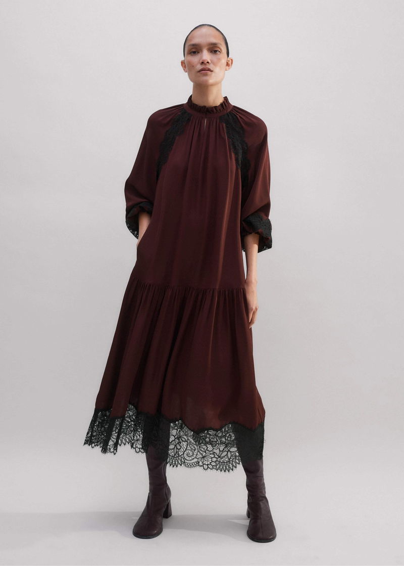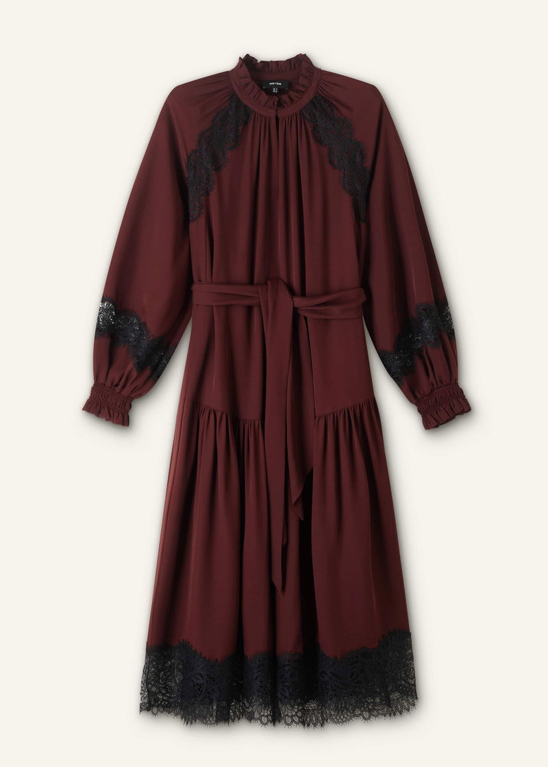 Silk Lace Midi Dress + Belt Rum Raisin/Black