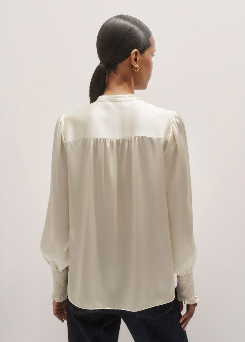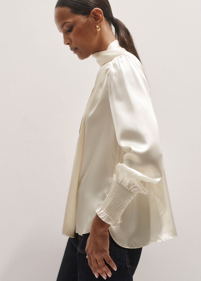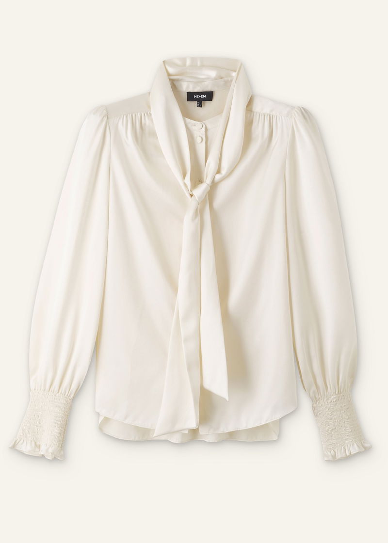 Silk Satin Blouse + Tie Light Cream