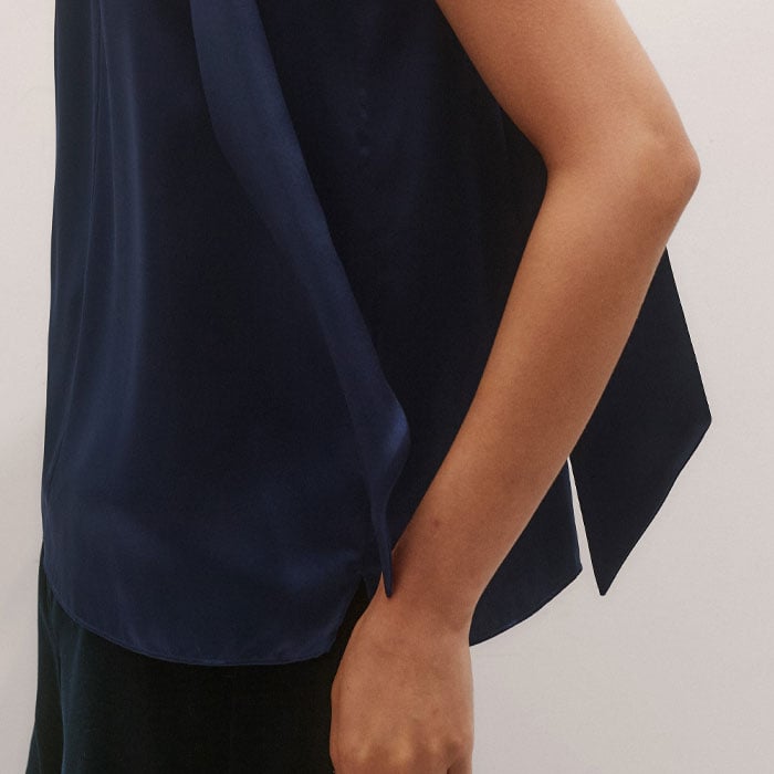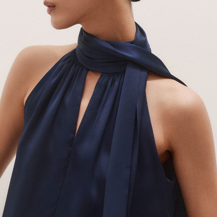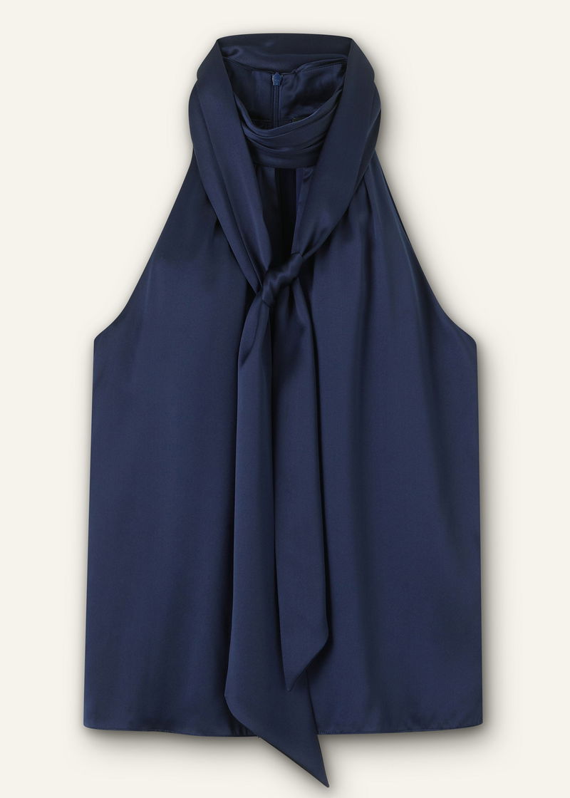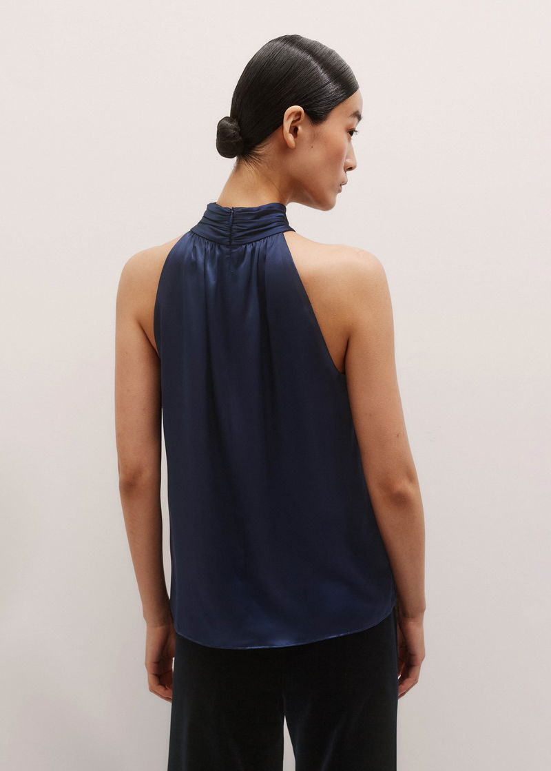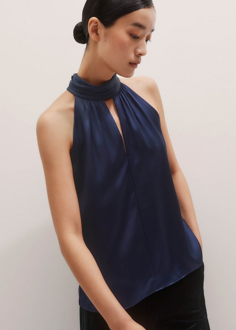 Silk Satin Halterneck Top + Tie Intense Evening Blue