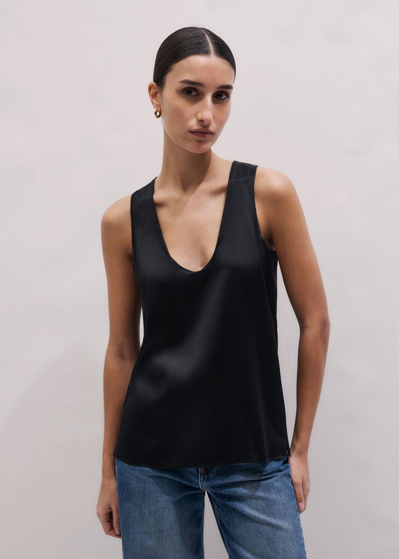 ME+EM's Black Silk Satin Evening Tank Top is made from lustrous silk satin with a fluid, soft hand feel.