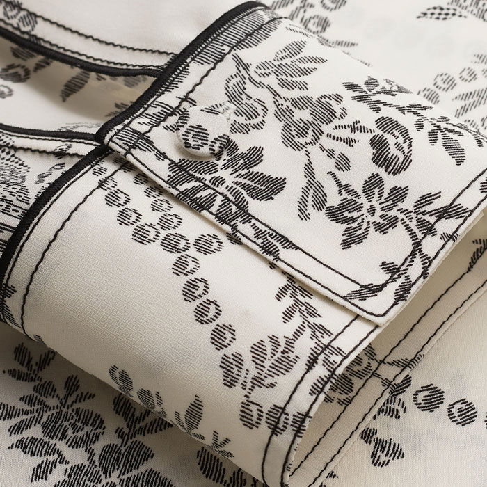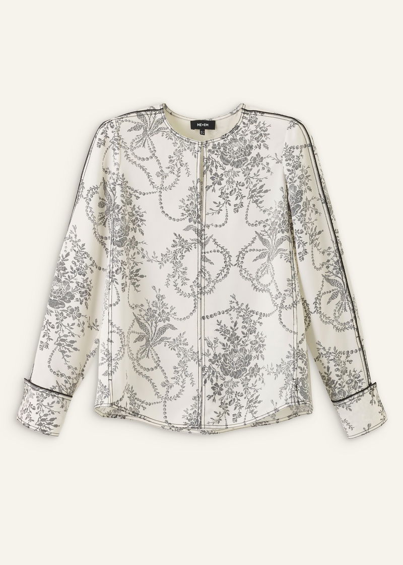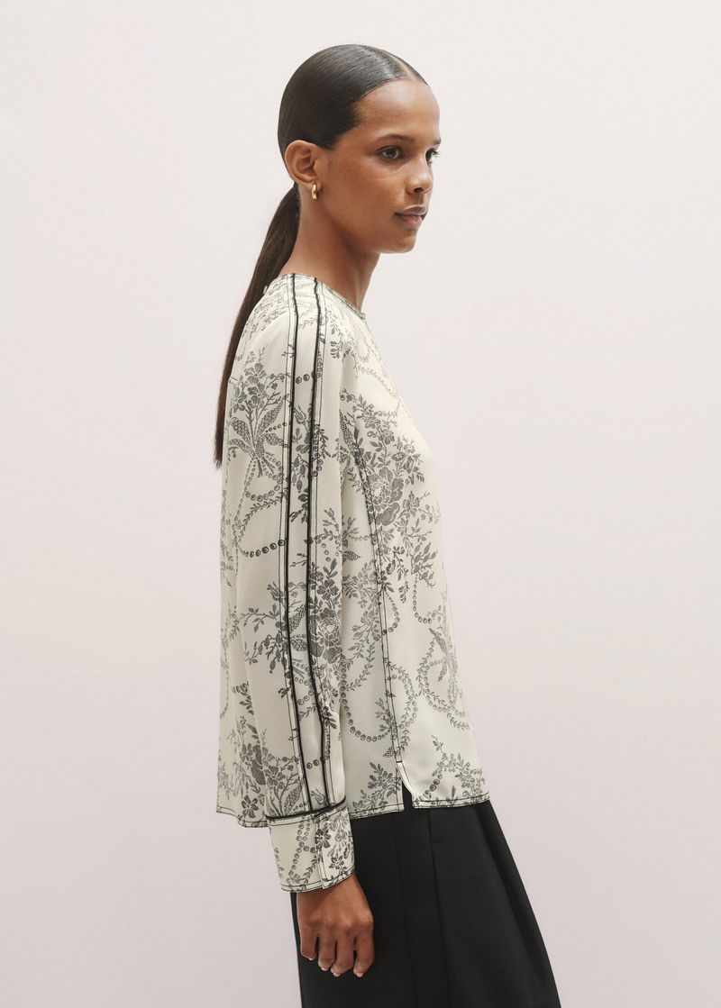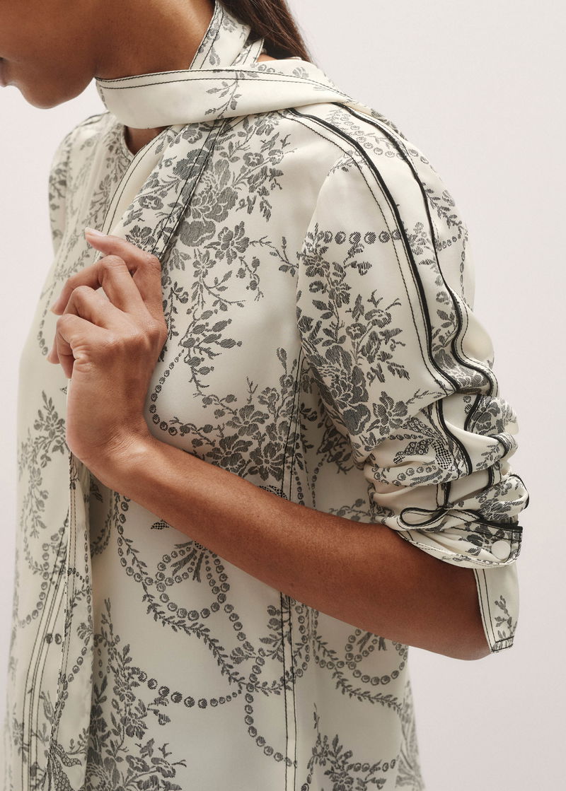 Silk Straight Blouse + Tie Light Cream/Black