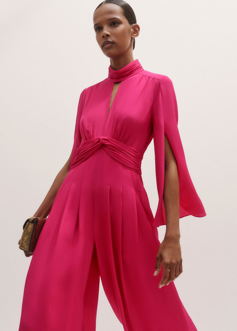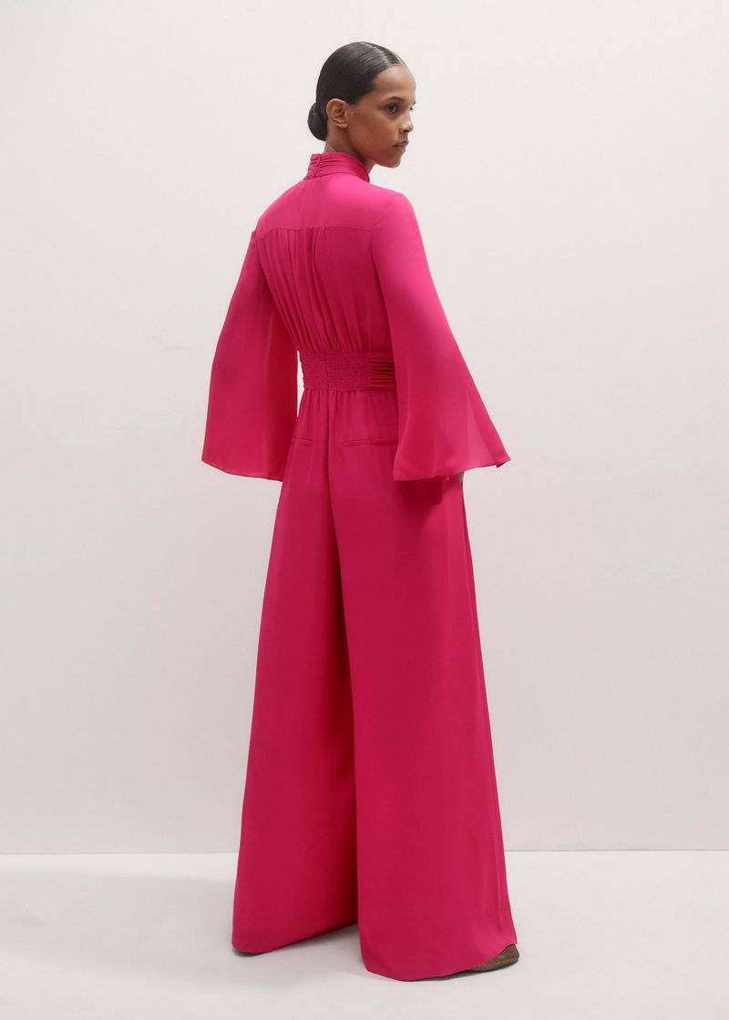 Silk Wide-Leg Jumpsuit Hibiscus Pink