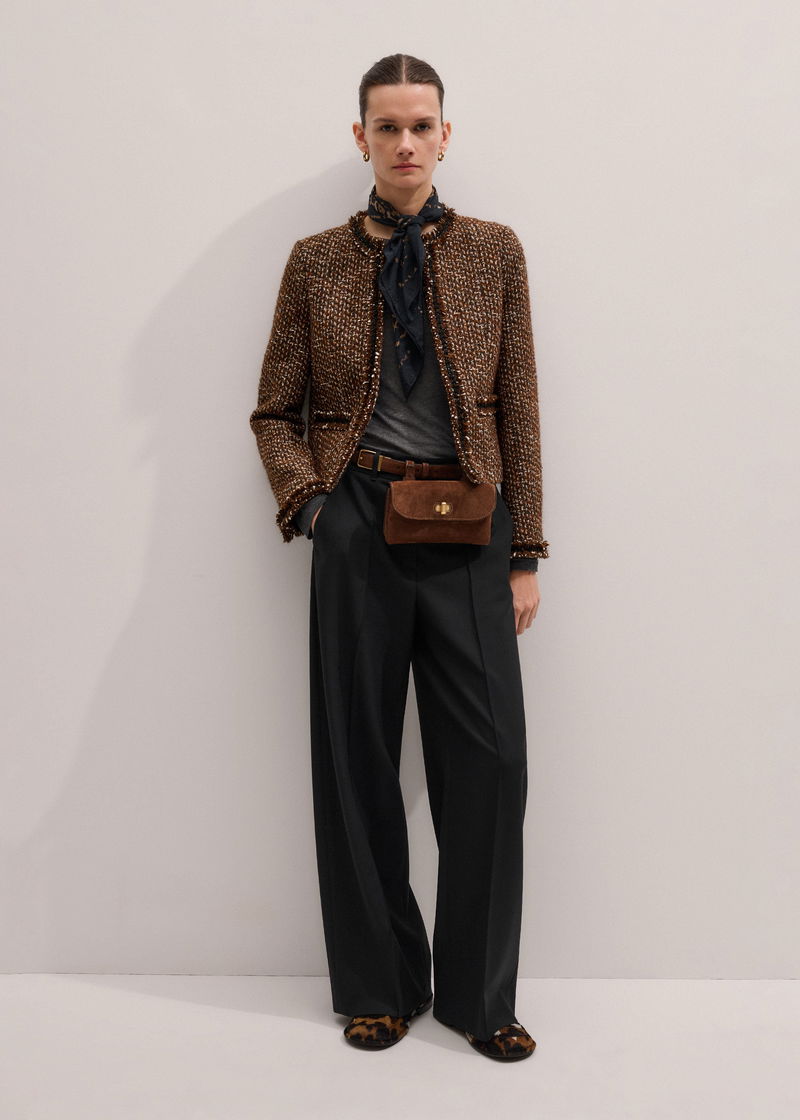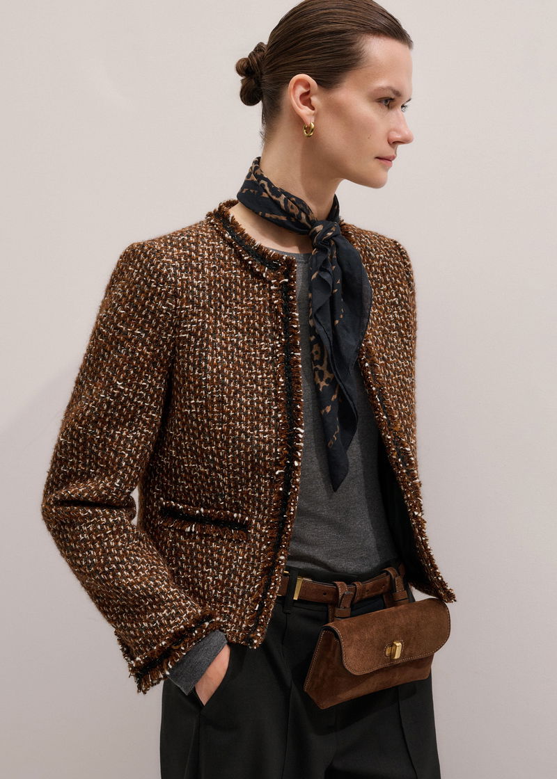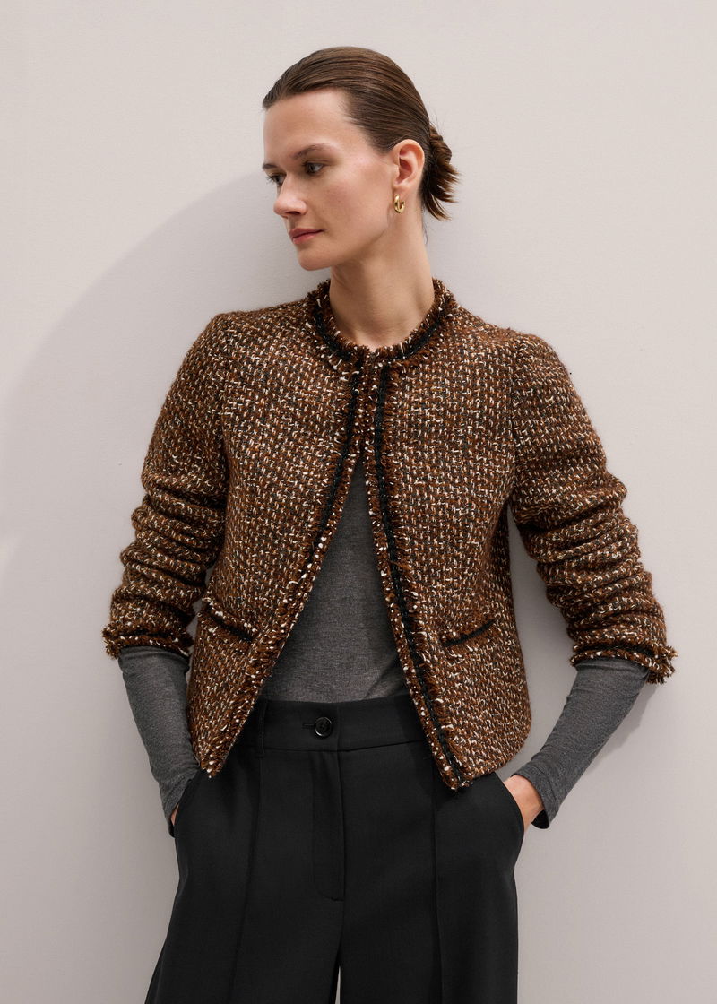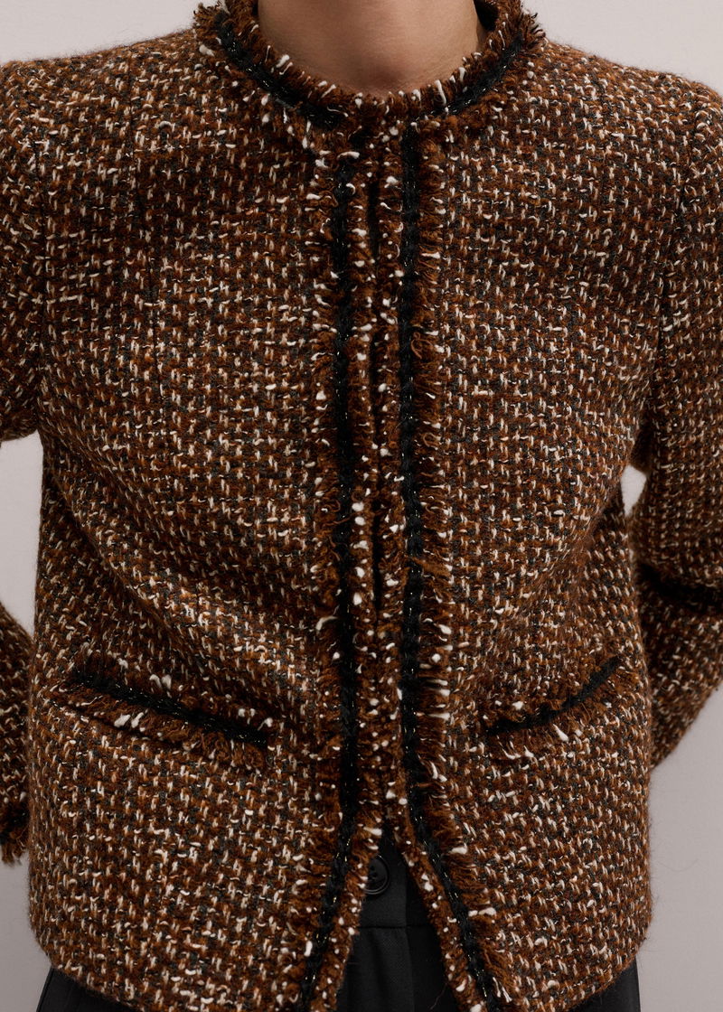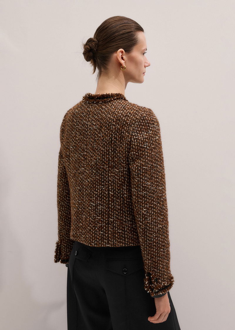 ME+EM's Brown Slim Tweed Fringed Jacket is made from an Italian wool-blend with fringe trims.