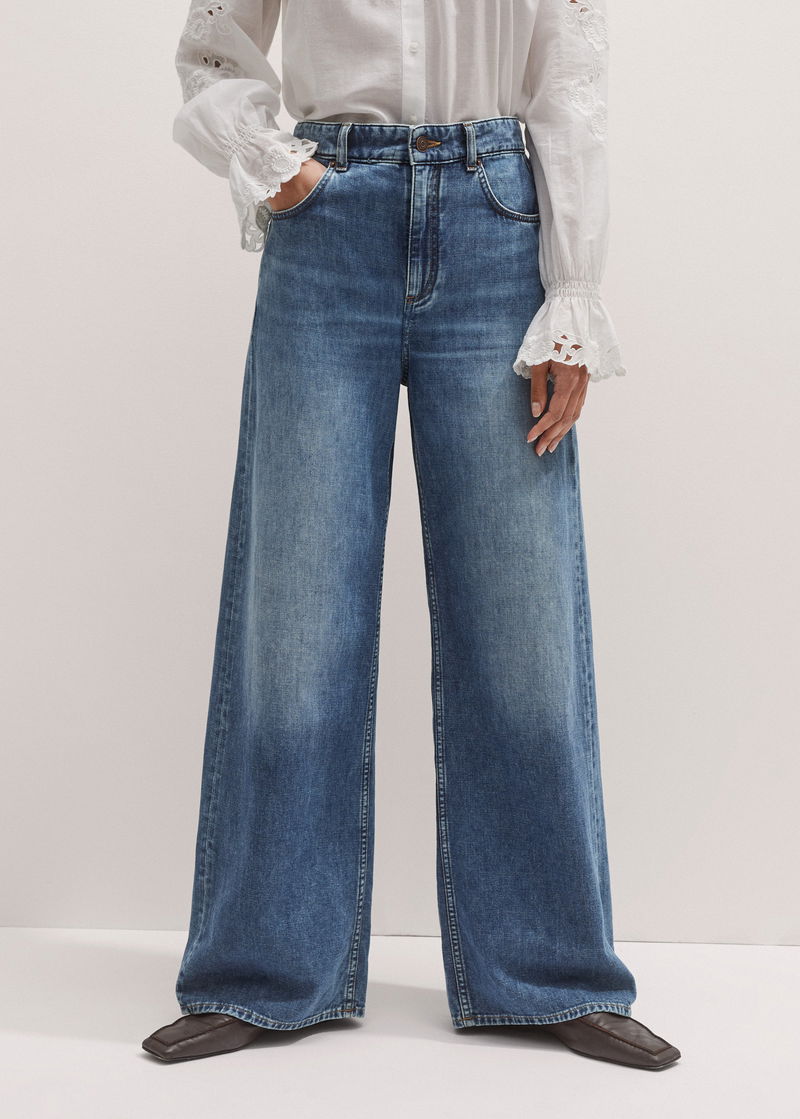 ME+EM's Blue Relaxed Baggy Wide-Leg Jean is made from lightweight non-stretch Italian cotton denim for comfort from AM-PM.