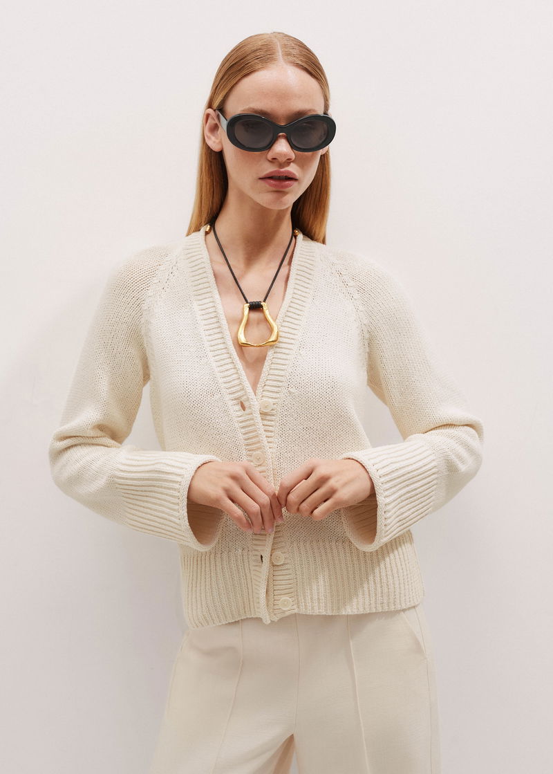 Slouchy V-Neck Cardigan Cream