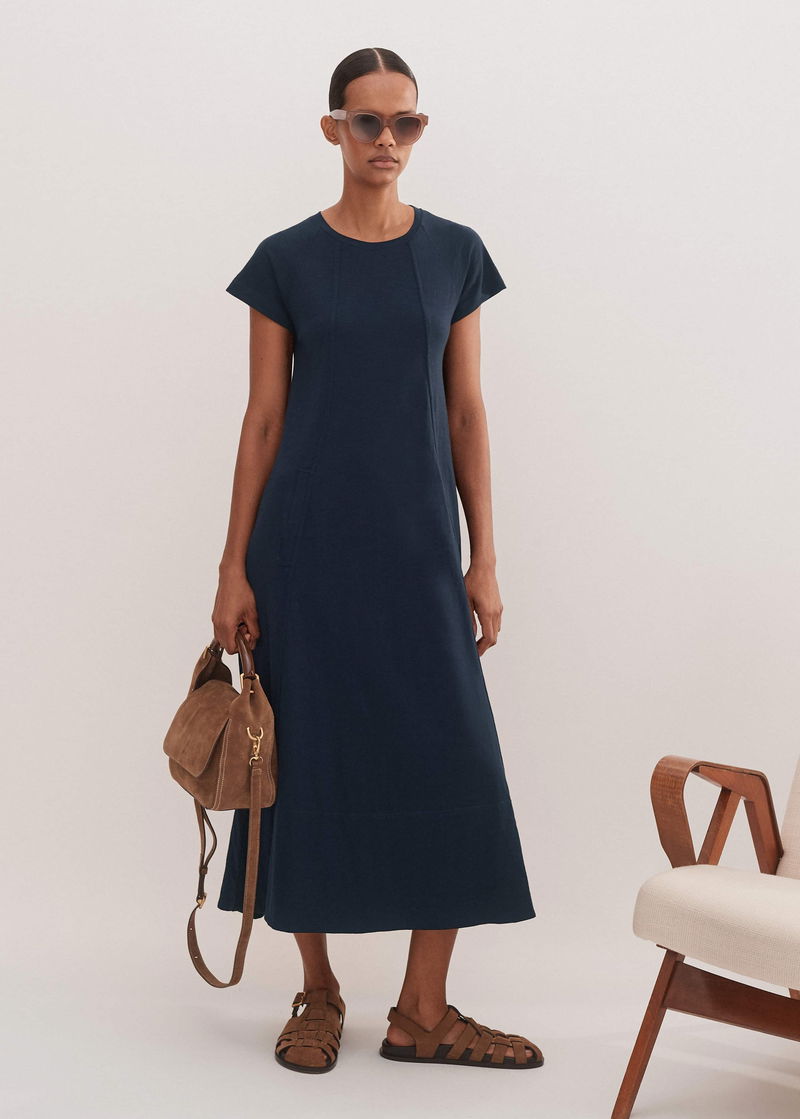 Slub Jersey Midi Swing Dress Navy
