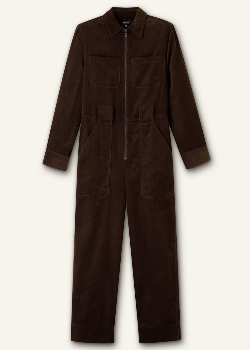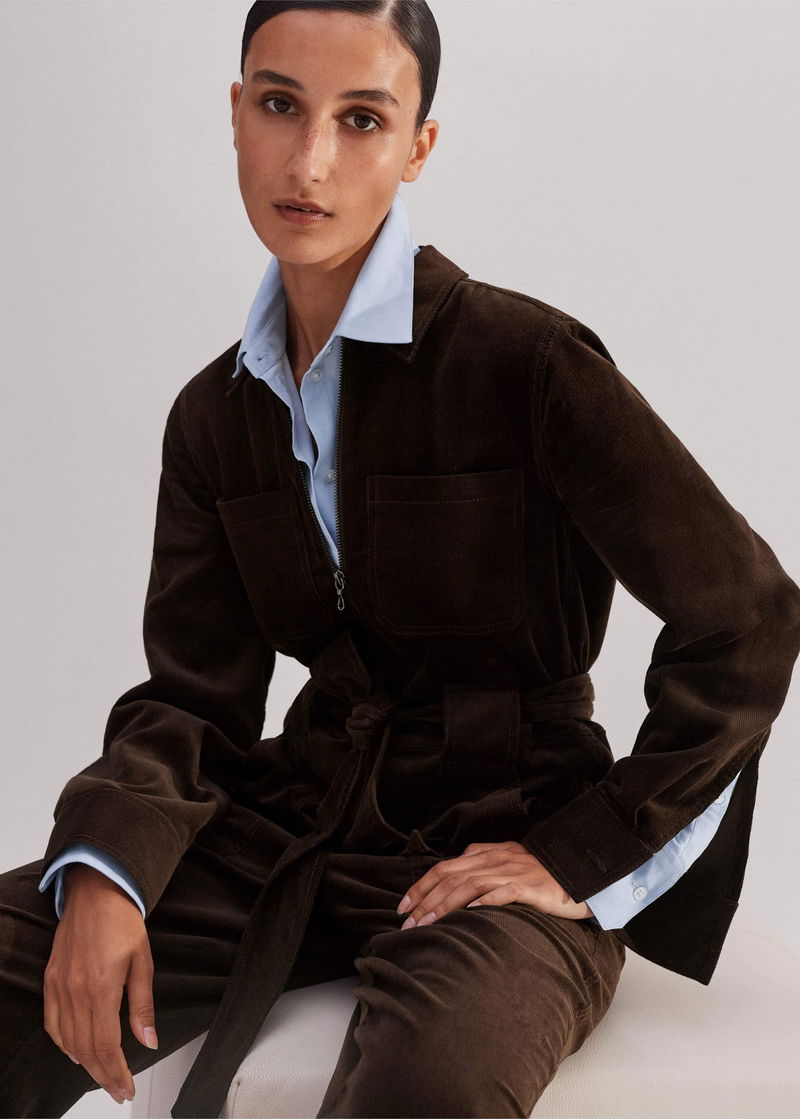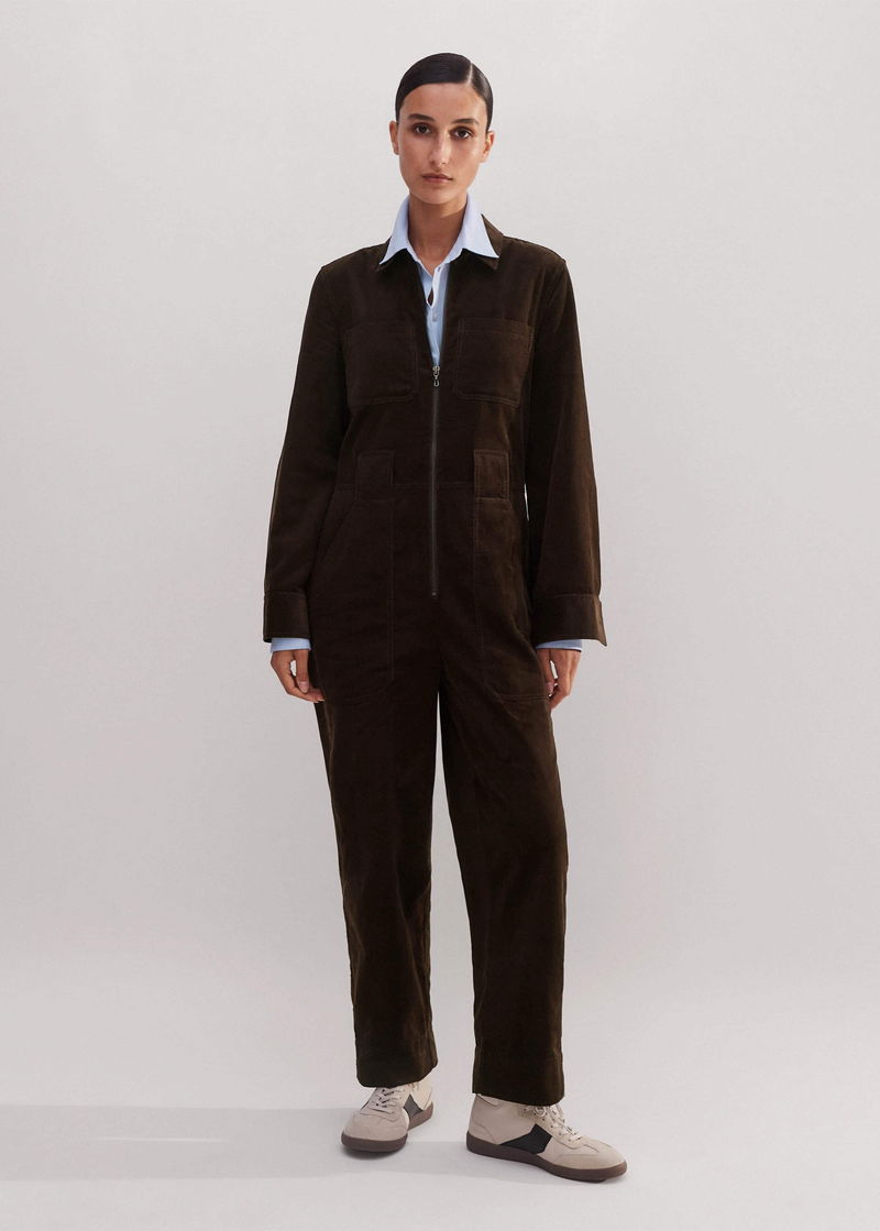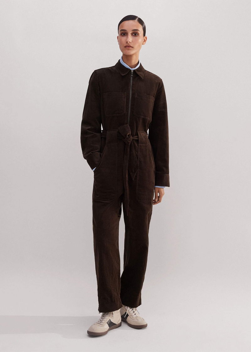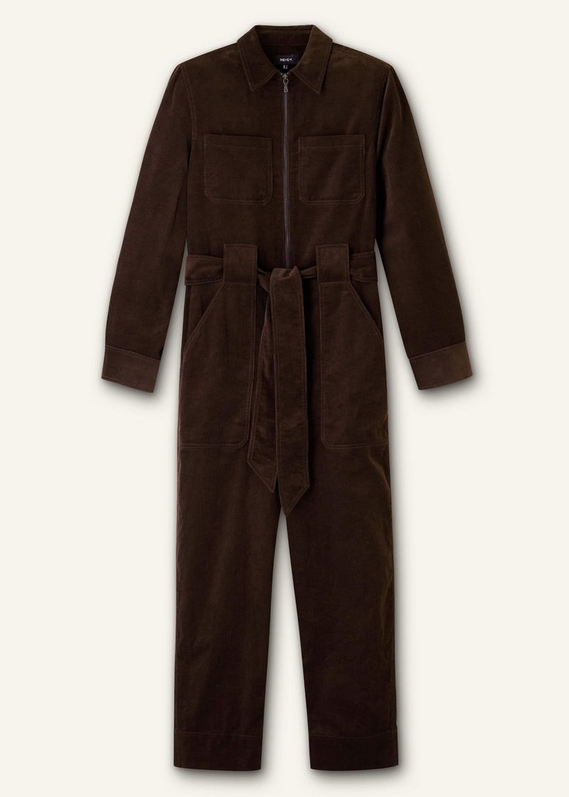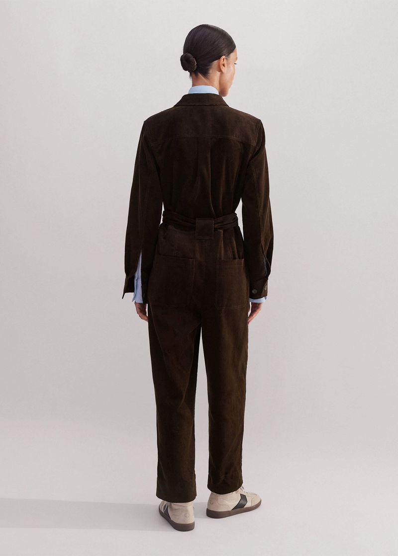 Soft Cord Jumpsuit + Belt Warm Chocolate