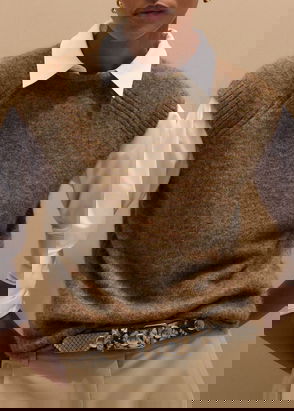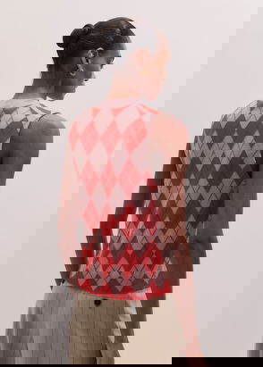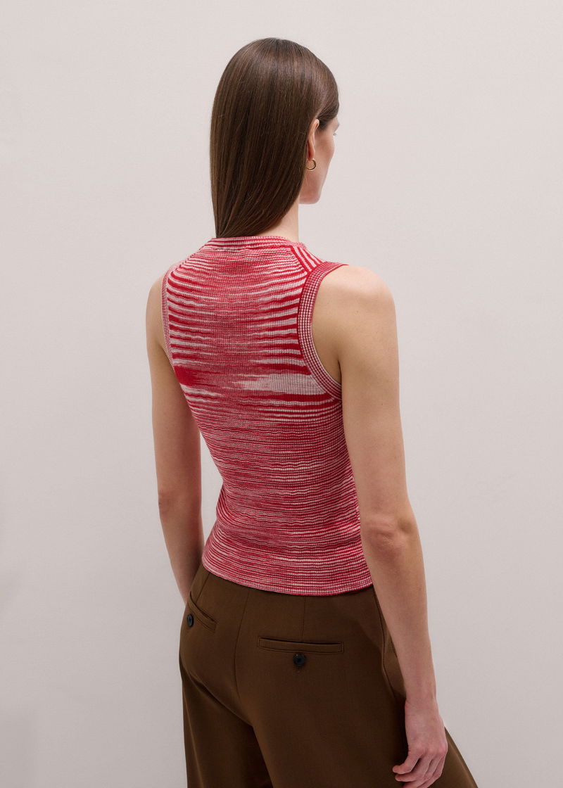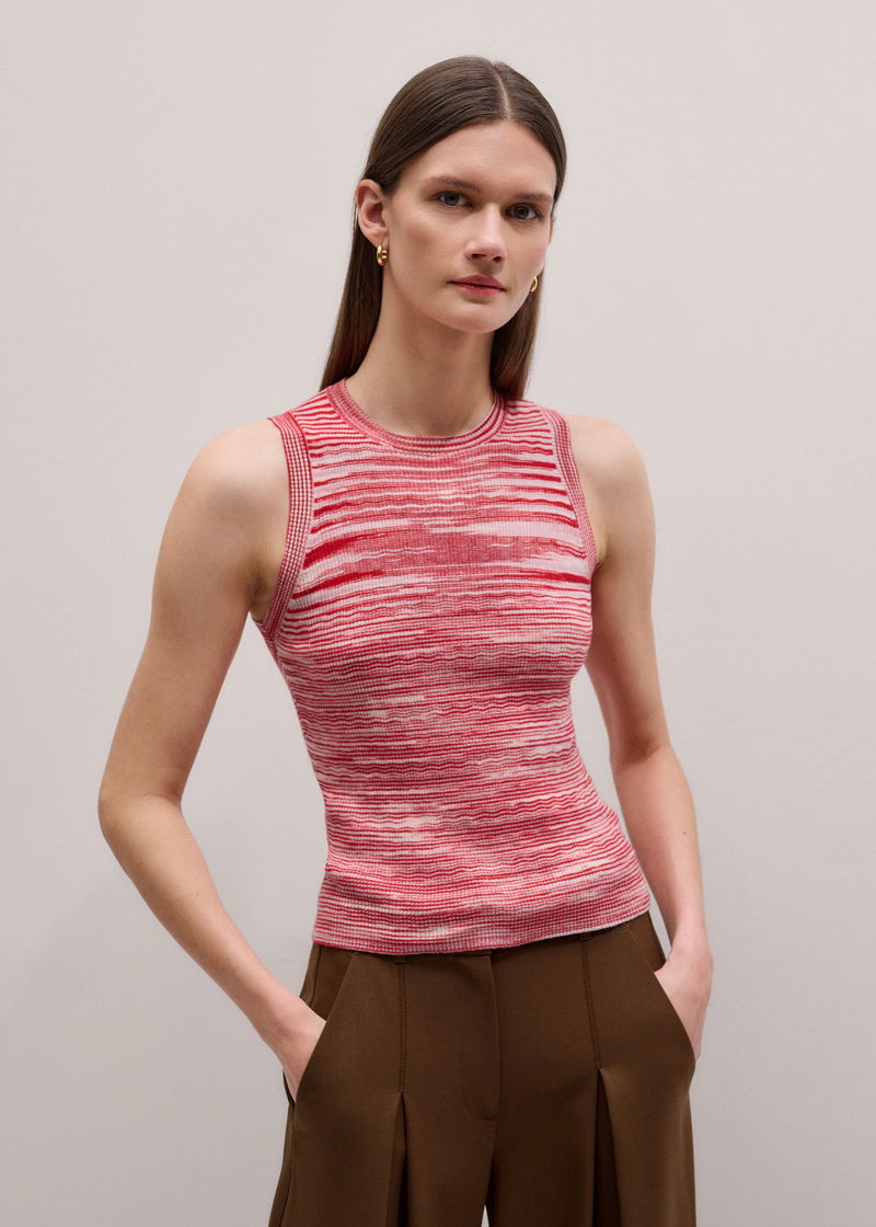ME+EM's Red Spacedye Slim Rib Knit Vest is made from organic cotton, blended with cashmere for a super soft handfeel.
