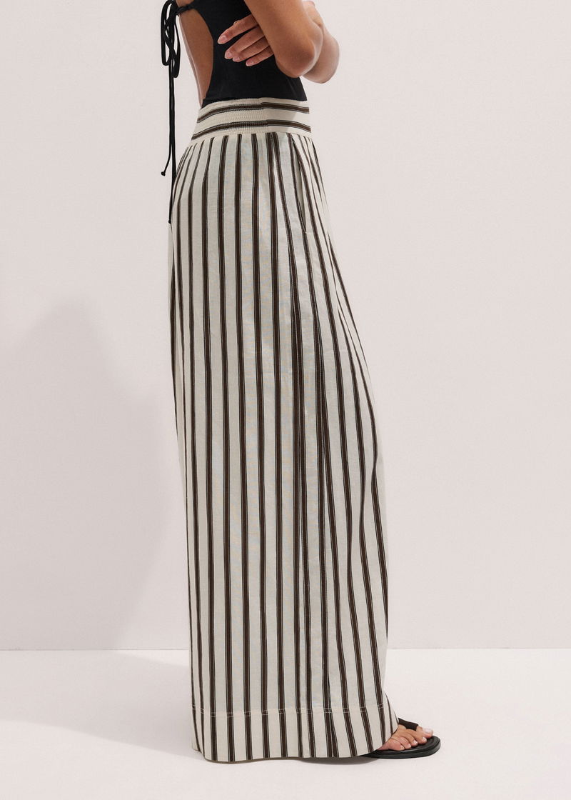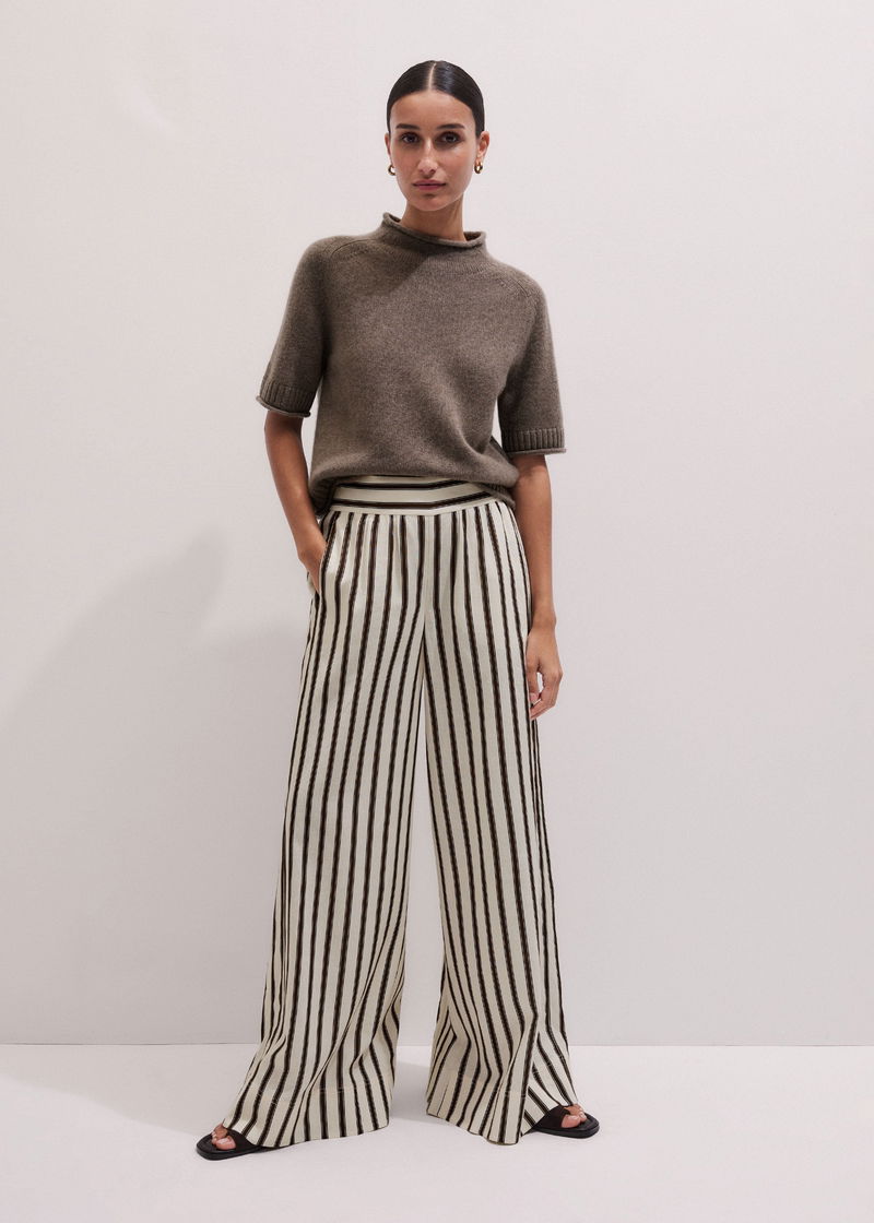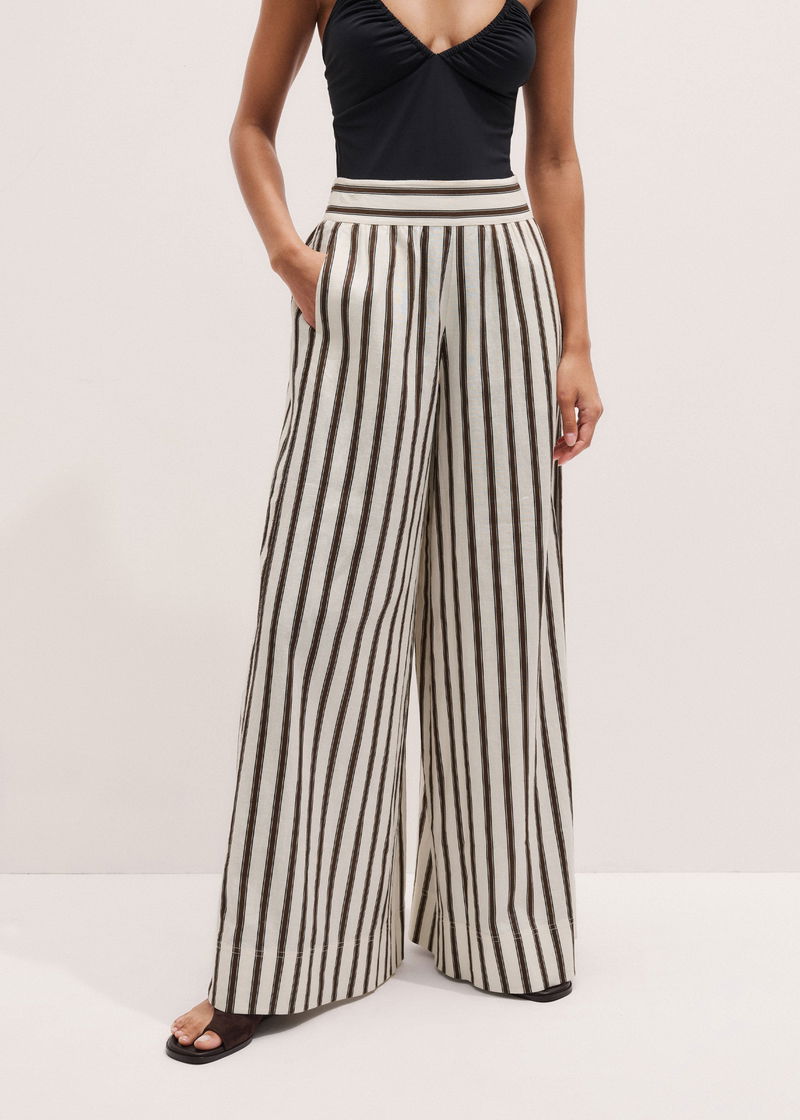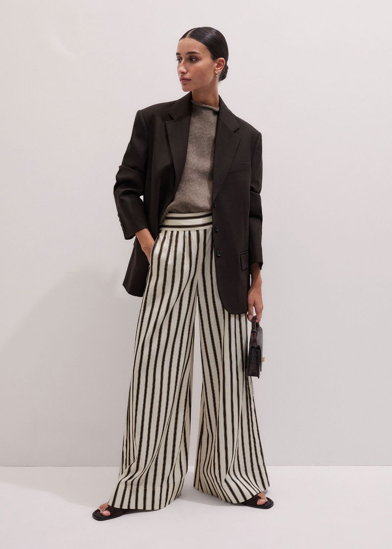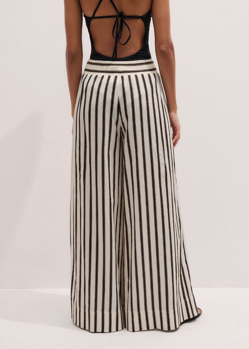 ME+EM's Cream Linen-Blend Spring Stripe Wide-Leg Trouser is imbued with viscose for minimal creasing and a soft, smooth finish.