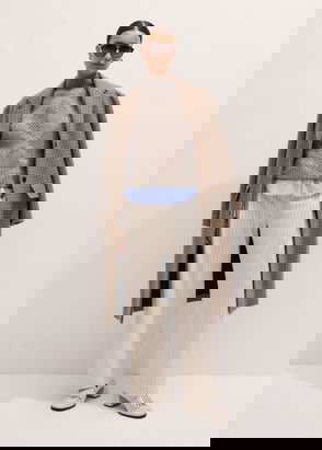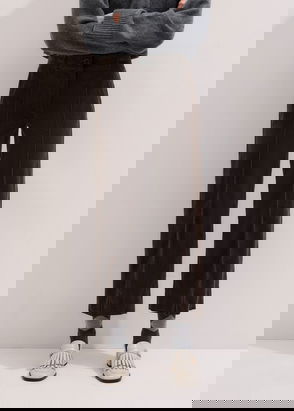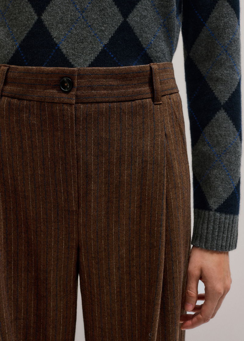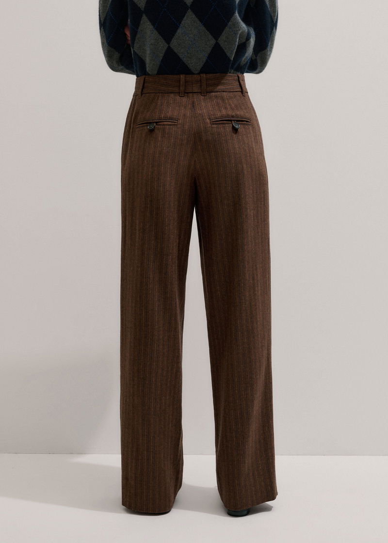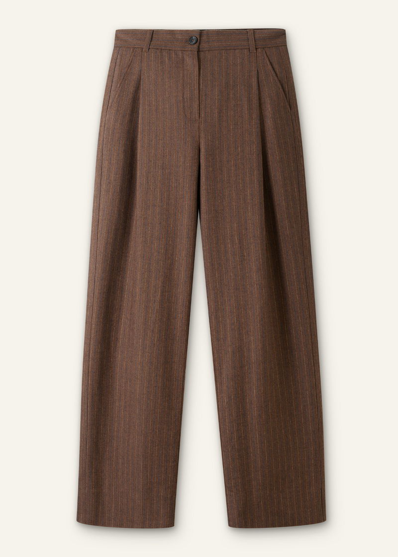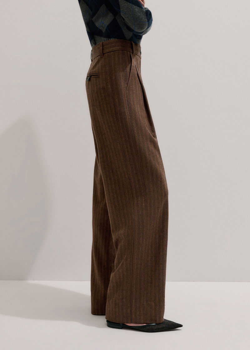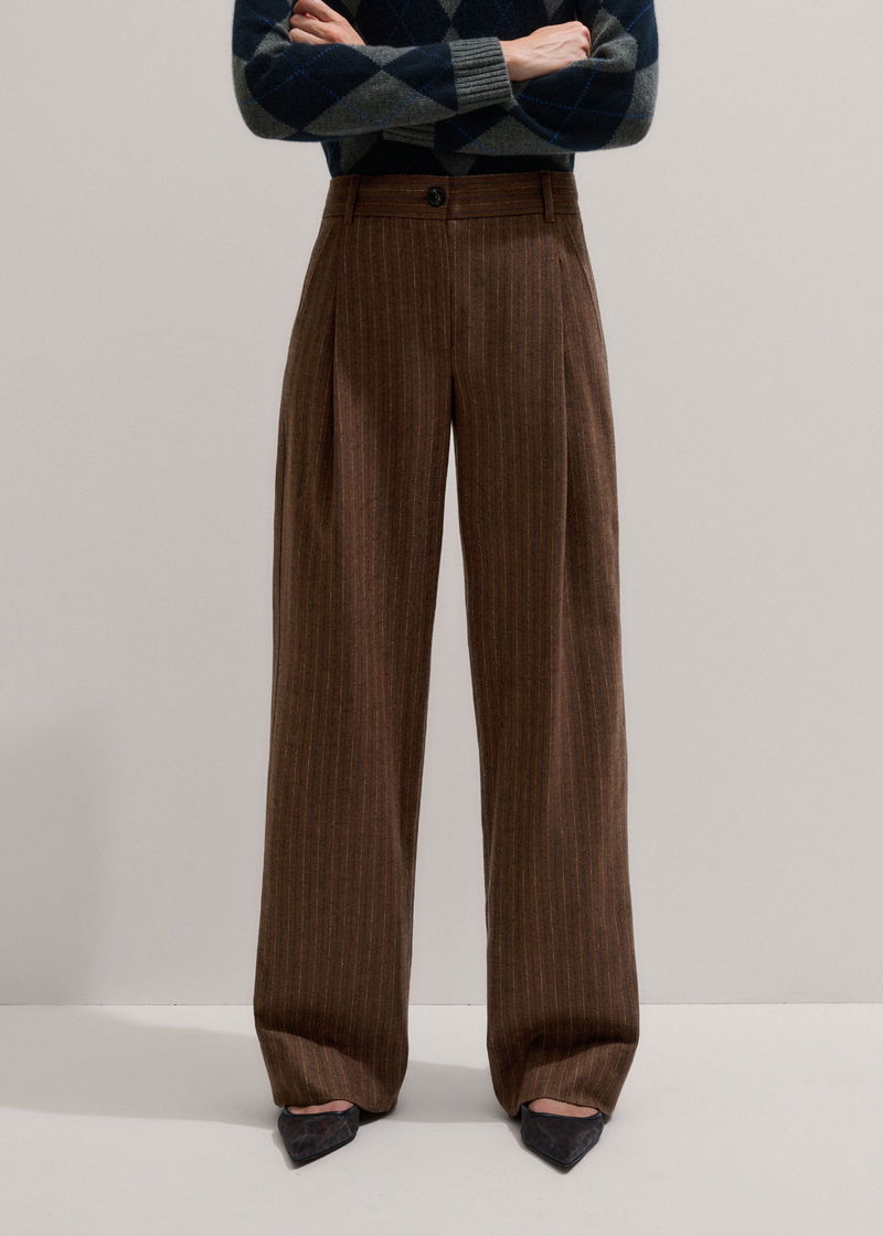 ME+EM's Brown Wool Tapered Pinstripe Pleat Front Pant makes the ultimate partner to oversized and fitted top silhouettes alike.