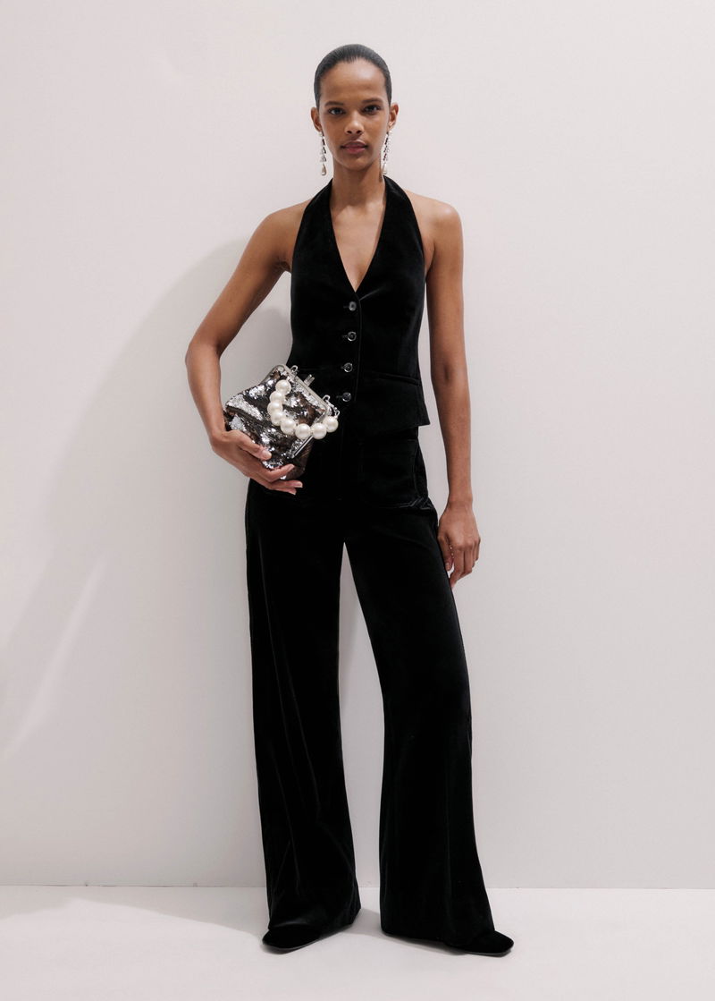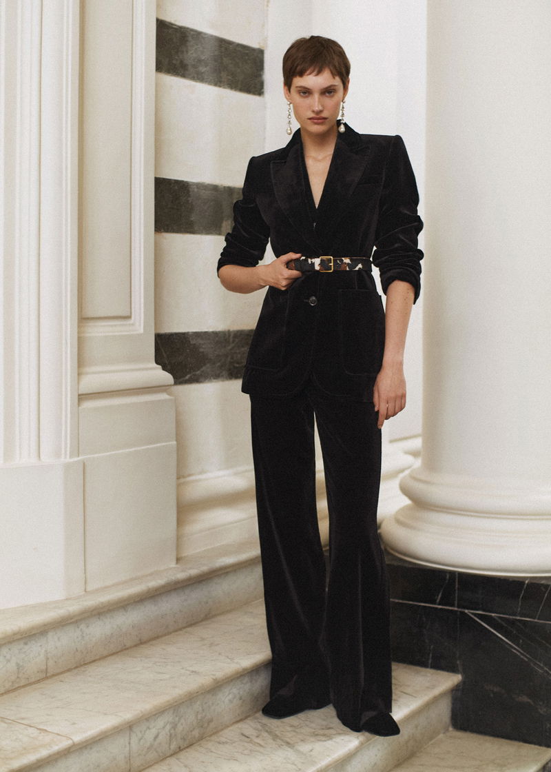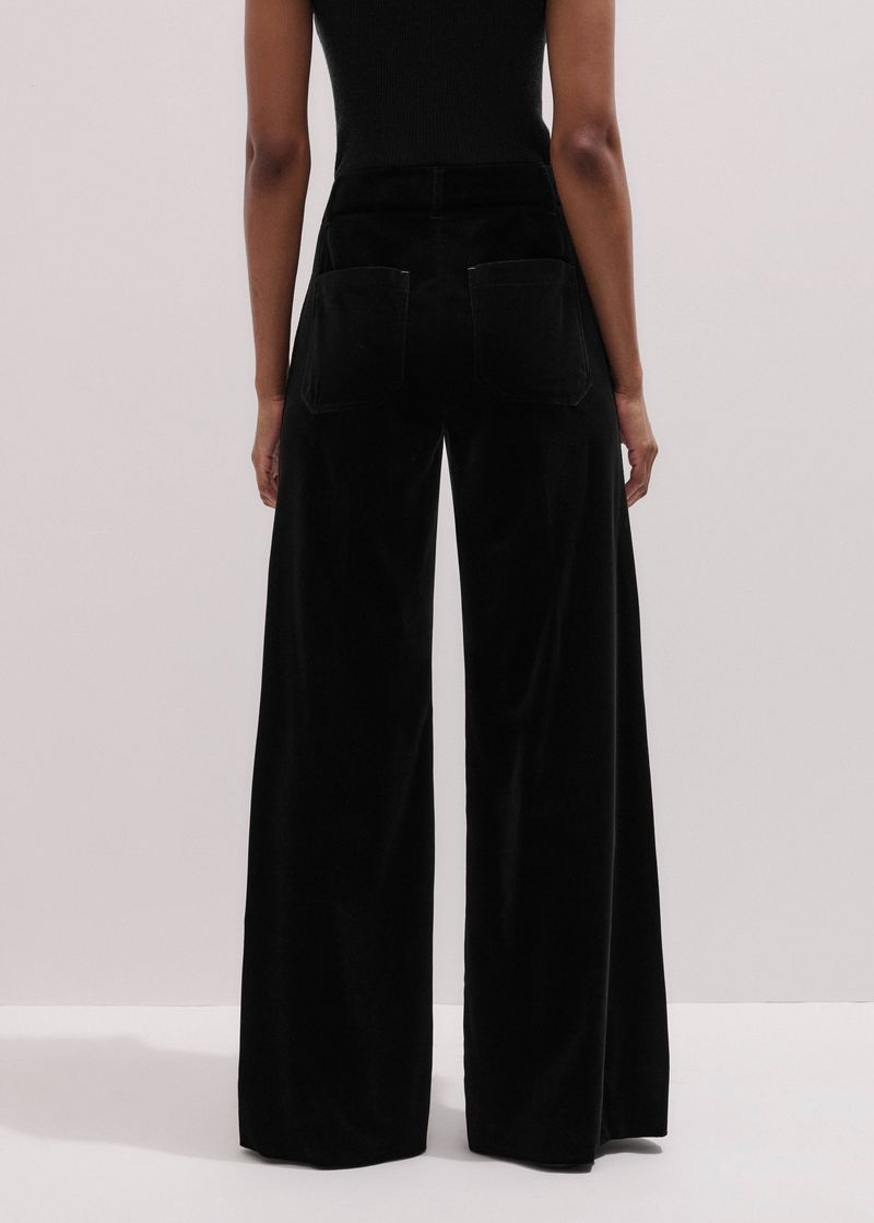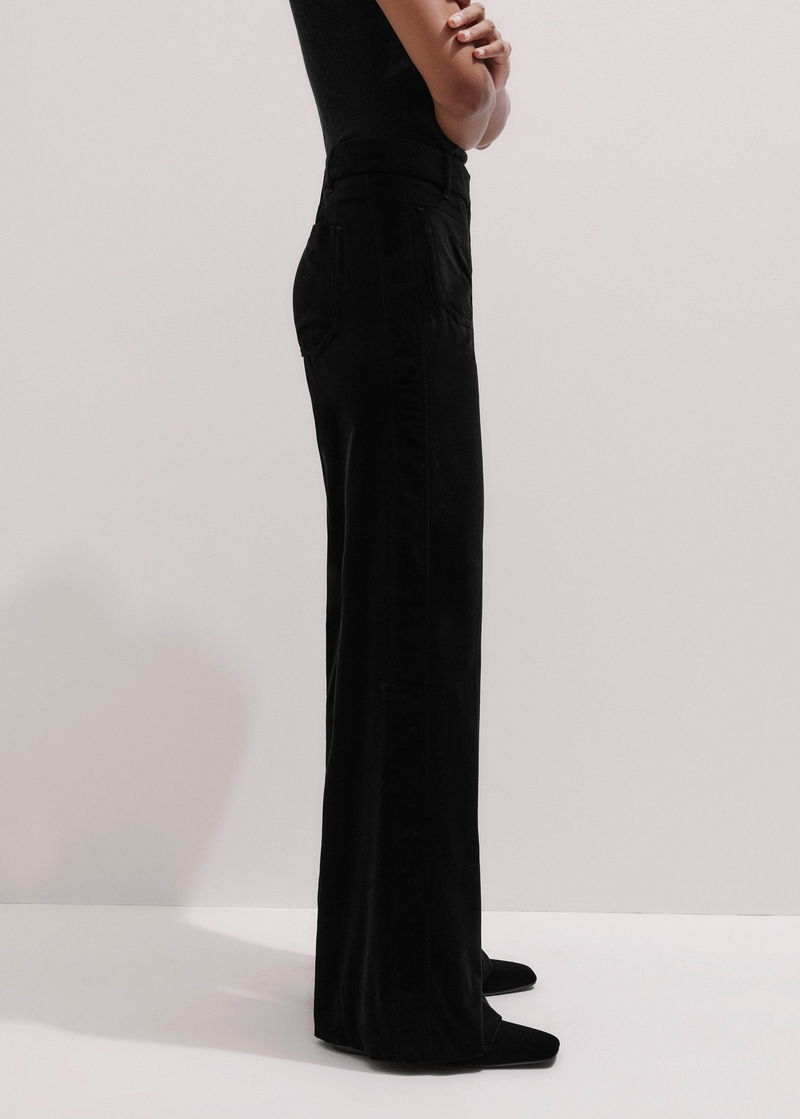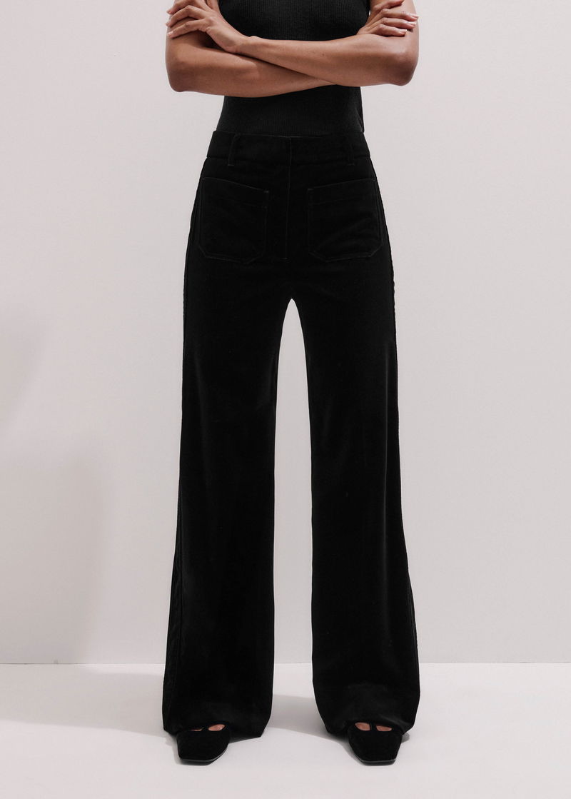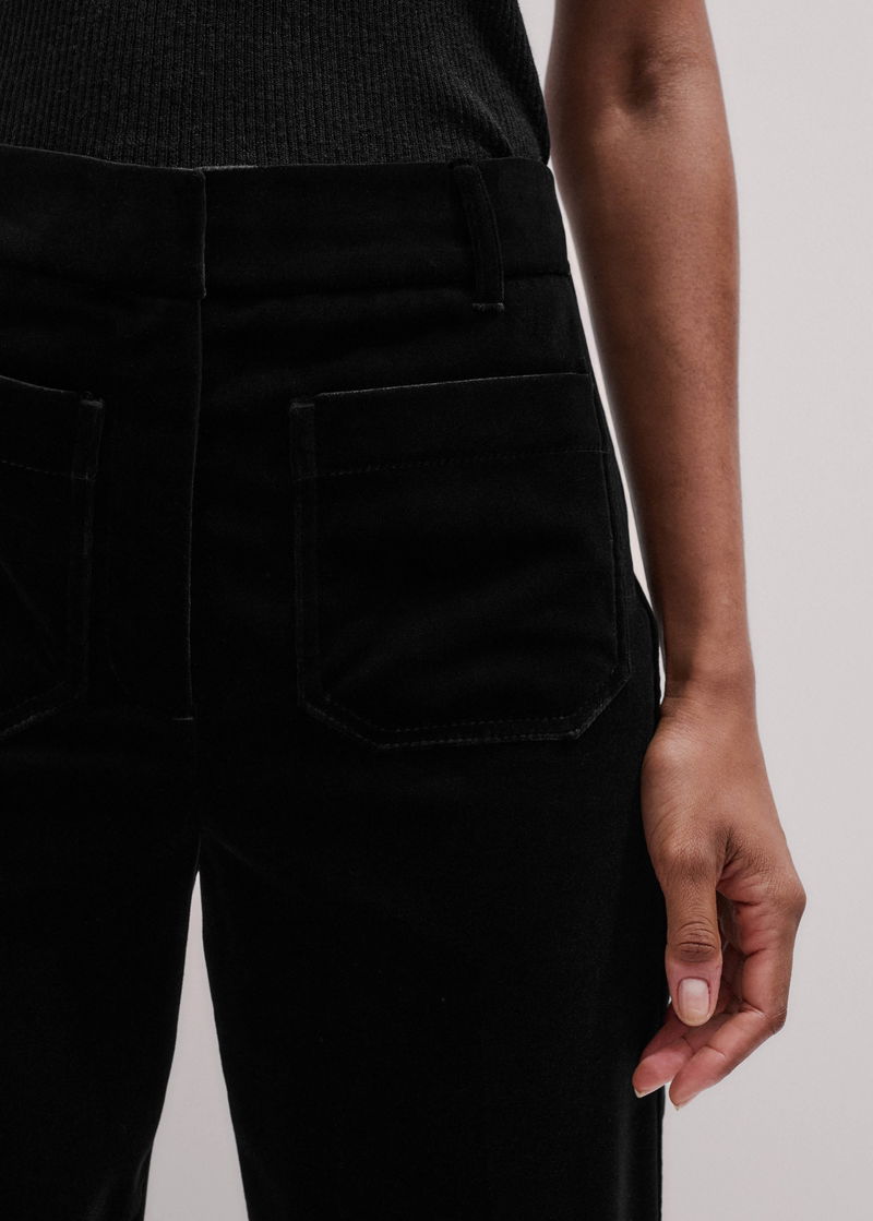 ME+EM's Black Stretch Velvet Kick Flare Trouser is crafted from Italian velvet that contains a blend of viscose and silk fibres for an ultra-soft fluid feel.