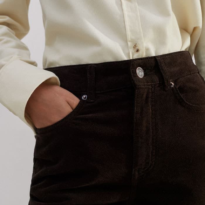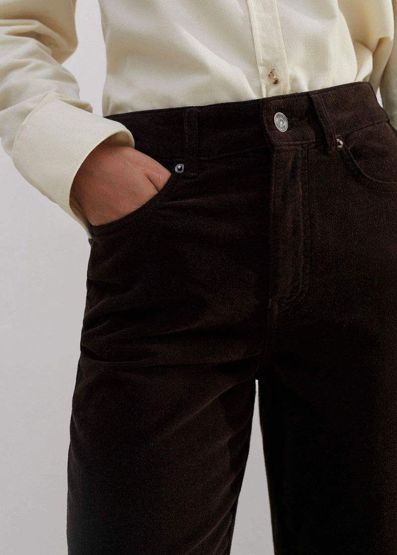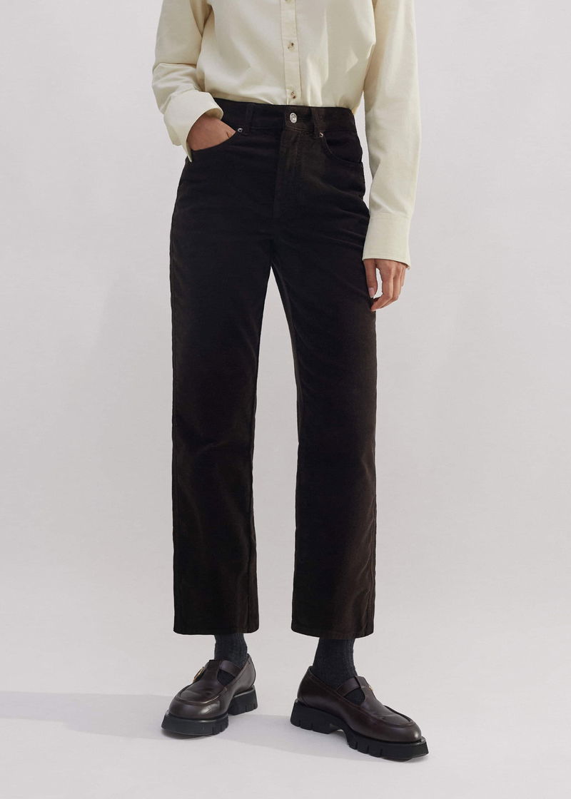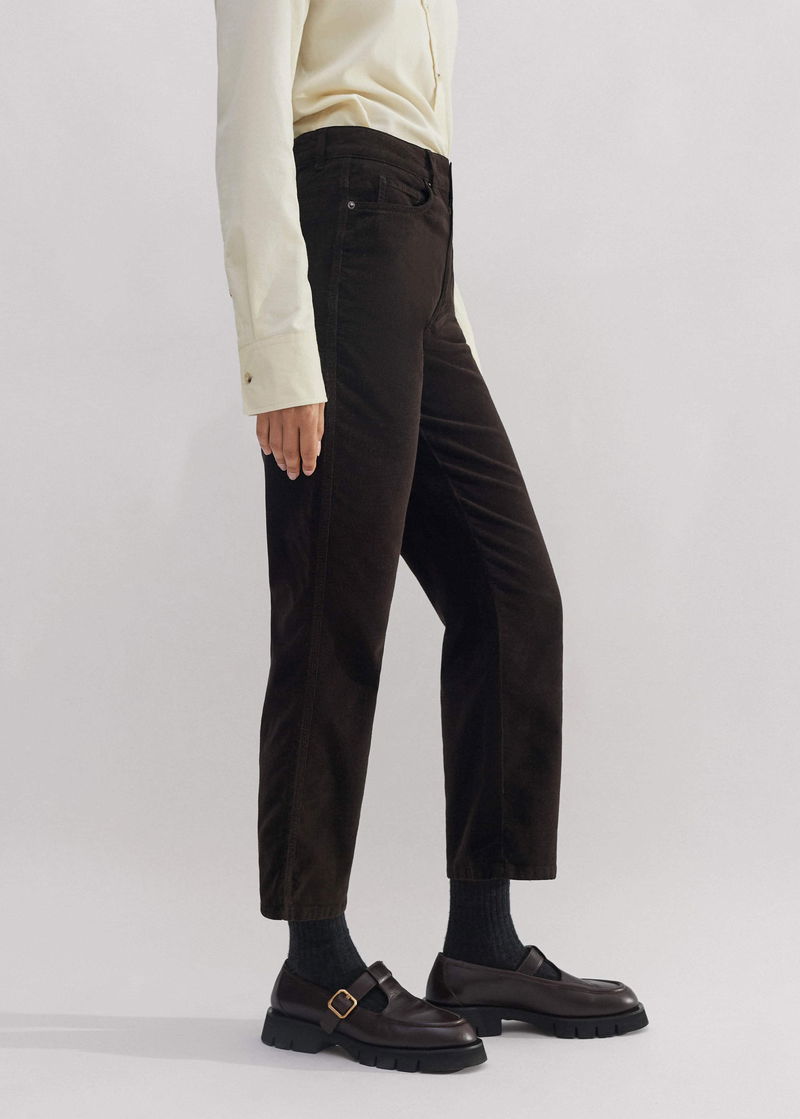 ME+EM's Brown Stretch Velvet Straight Crop Jean falls to a straight, cropped silhouette to highlight the narrowest point of your ankle.