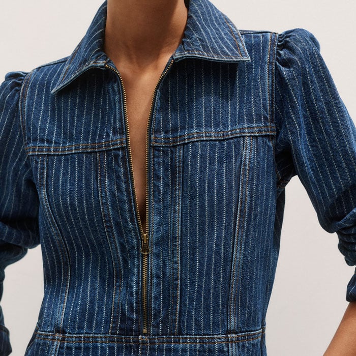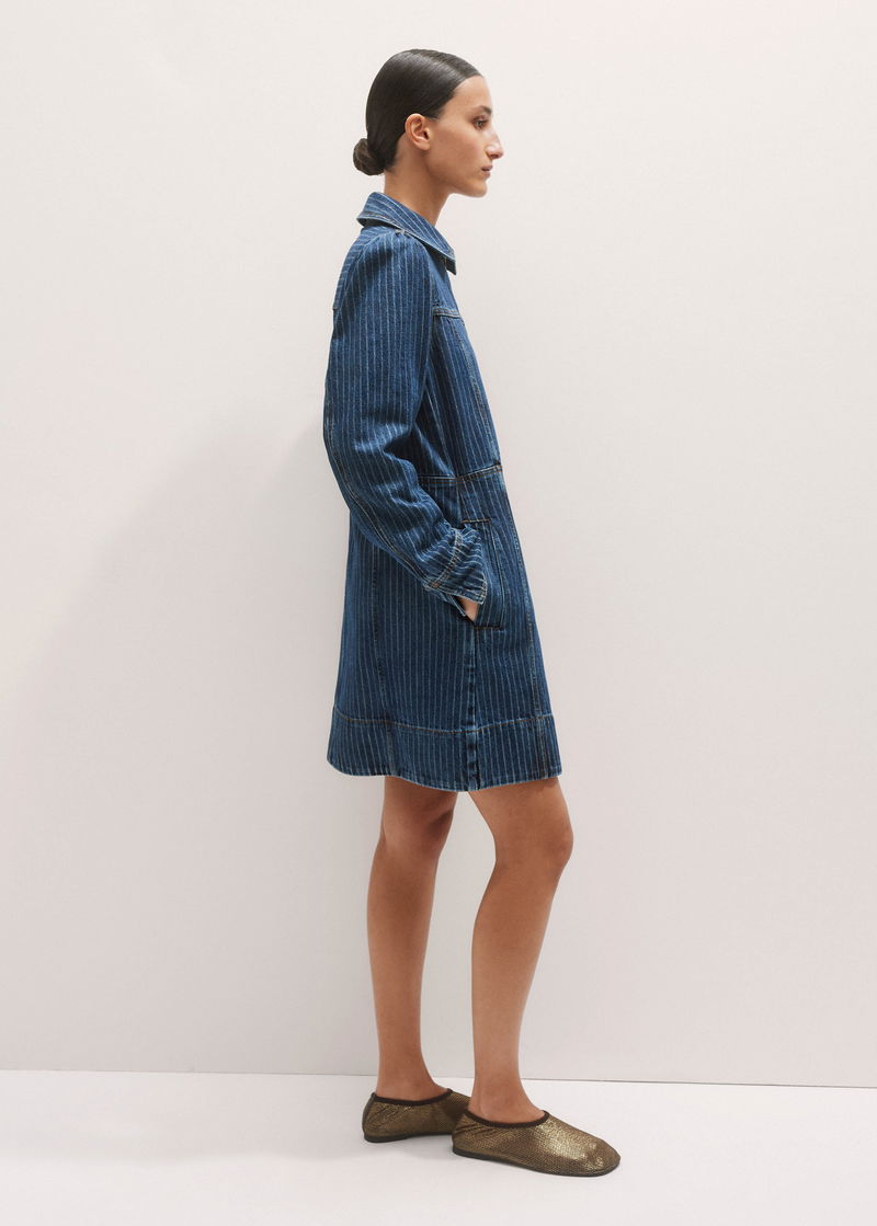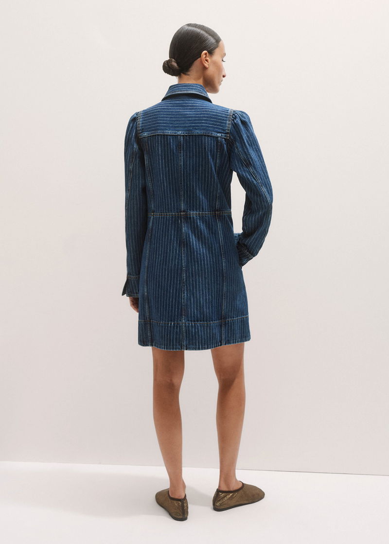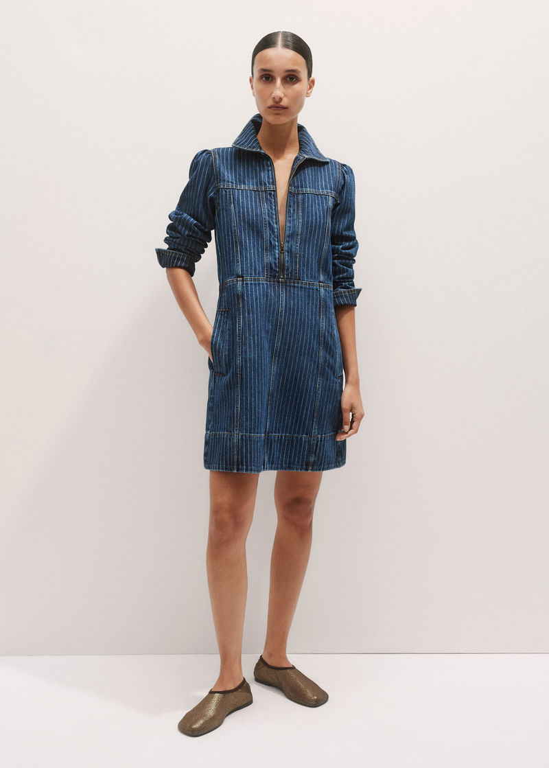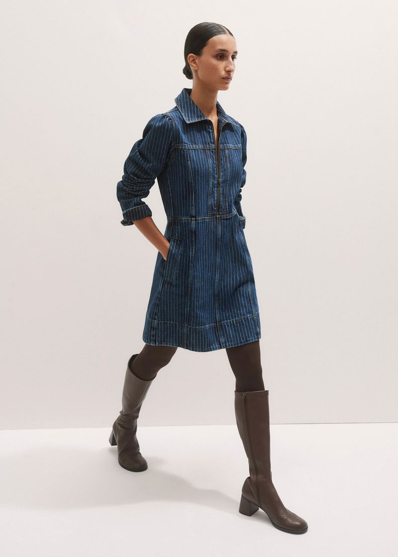 Stripe Denim Mini Dress With Zip Front Mid Blue Wash